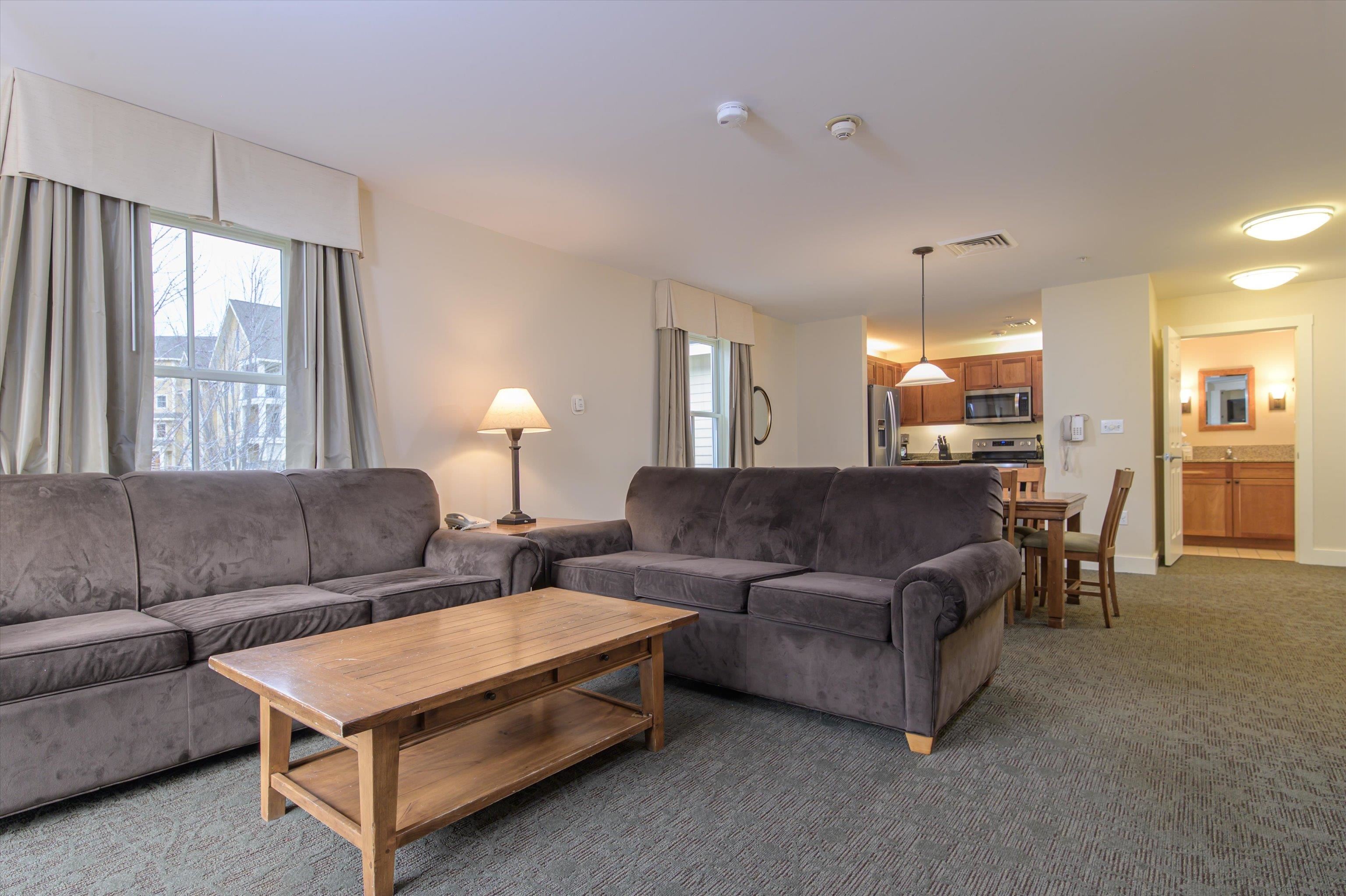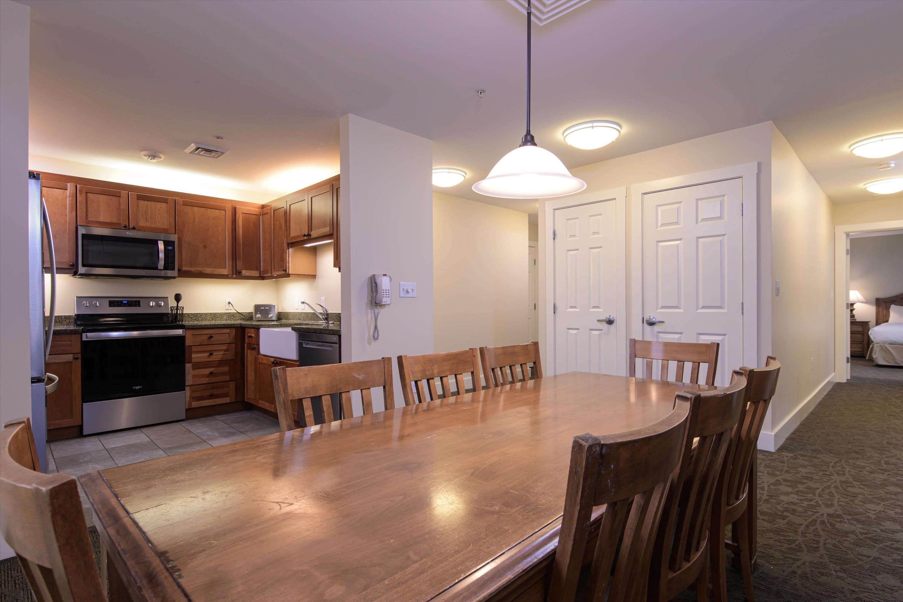 Great location on the top floor of Adams House! This three-bedroom residence sleeps 10 and has a deck and windows on all three sides, giving you not only super slope views but also panoramic views! Features include: Updated kitchen with stainless steel appliances, granite countertops and farm-style sink, spacious living room with queen sleeper sofa and fireplace, primary bedroom suite with king-sized bed, bathroom with jetted tub, fireplace, bedroom with two queen beds, extra large foyer, and the lockout side has a bedroom suite with a king-sized bed and washer/dryer. Soak in the outside hot tubs after skiing or snow tubing. It’s a short walk to the Spring House to enjoy the spa or added exercise of swimming, a yoga class, or the weight room. Amenities include: indoor/outdoor pools, underground heated garage, use of the Spring House, Adventure Zone, and Mountain Coaster. Enjoy the comforts of true ski on/ski off lifestyle! Qtr. III offers 2 weeks ownership over Christmas/New Years in 2025-26 season.