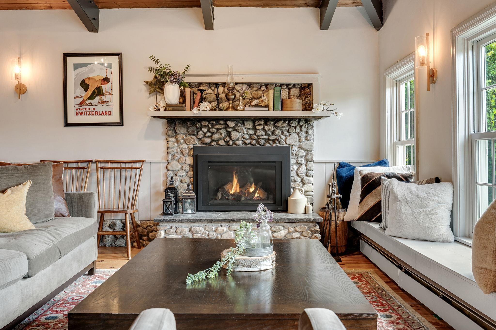 - Gas Fireplace, 3+ Fireplaces, Furnished, Natural Light, Natural Woodwork
