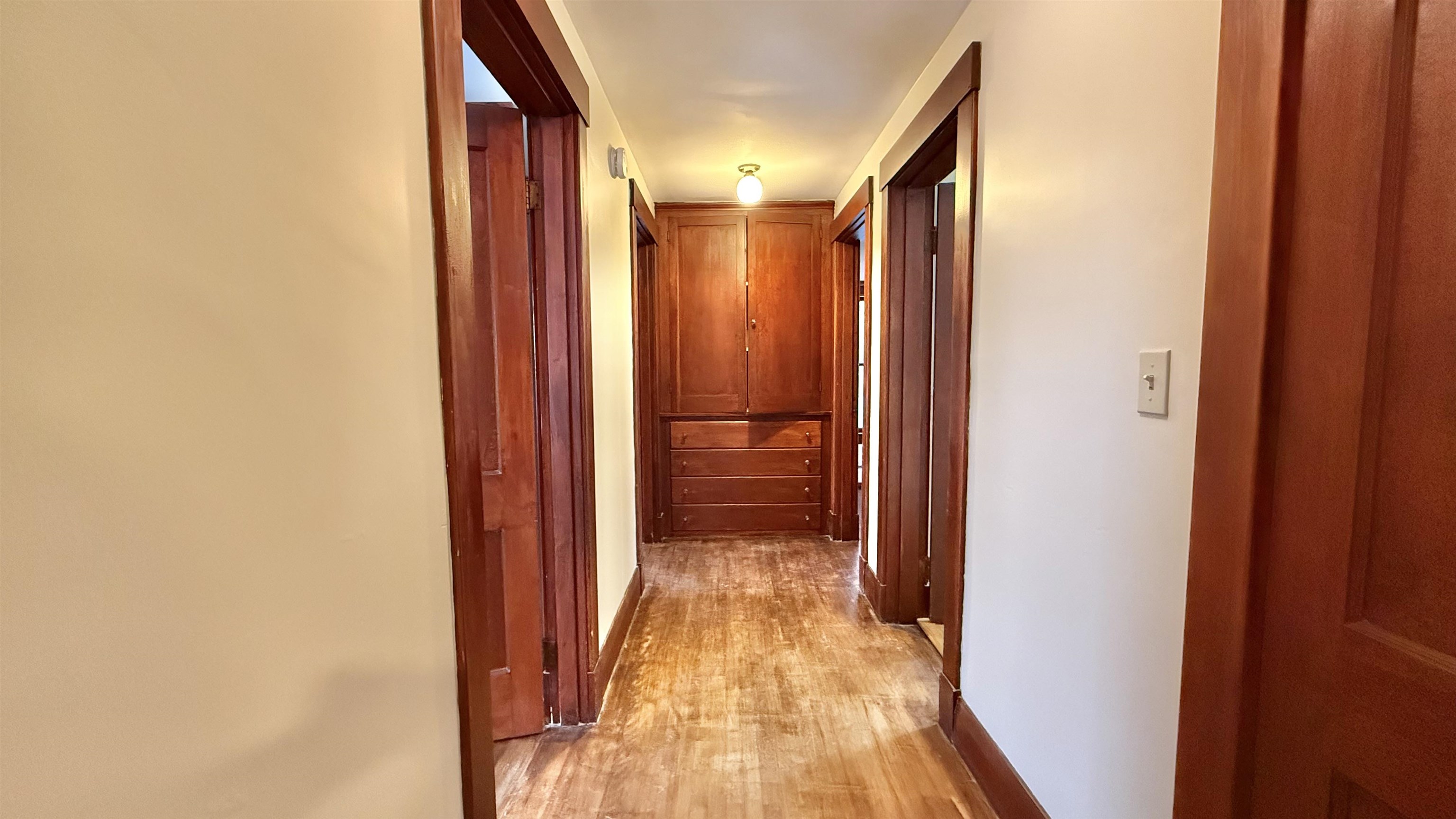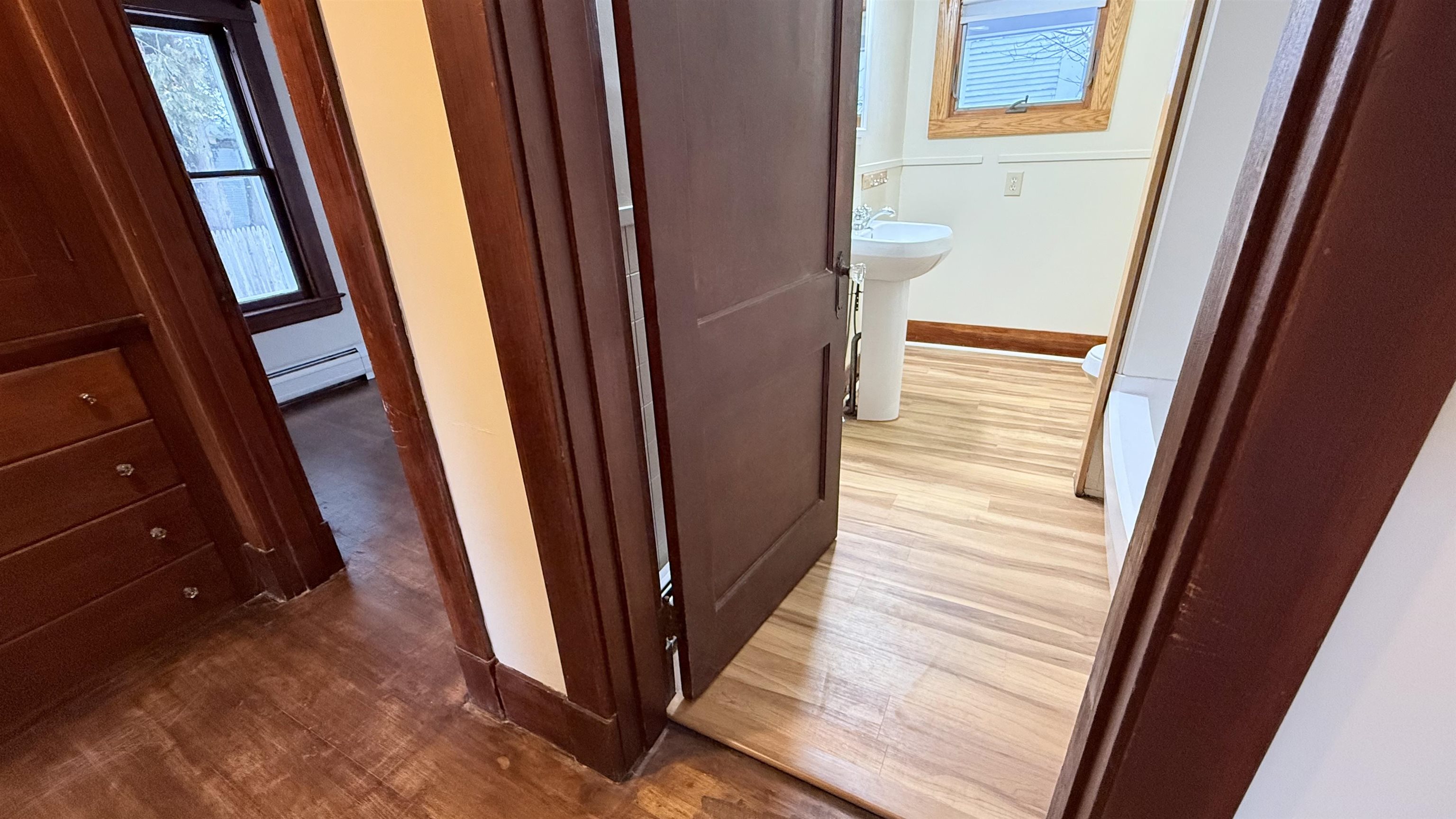 This red-shingle sided cottage is a charm! Updated everywhere! But first; original, rich grained wood trim surrounds doorways, walls and closets, a vintage built-in hall cabinet anchors the wide center hall. Glass-handled doorknobs, vintage lights and wood floors all nod to a warm history. An efficient kitchen with original cabinets and dedicated dining room invite your special traditions. A large living room hugs the front. Three bedrooms and a full modern bath complete the main floor in 1, 100 sq. ft upstairs. This has many hallmarks of a 1930's era Sears 'Honor Bilt' mail order kit home including factory stencils under basement stairs. Below, a modern height, concrete basement has big, useful spaces and laundry. First, it has nicely modern appliances and a sink around the corner. Between the large, heated bonus room with walk-up entrance and the huge utility room, this property is ready to store hobbies and off-season gear of every kind. Solid garage and small yard, partially fenced ideal for those who dislike mowing. Updated everywhere! It has a 2023 oil-fired boiler, 2022 roof, fresh 2025 exterior and interior paint, new kitchen/bath LVP flooring. Call for a showing!