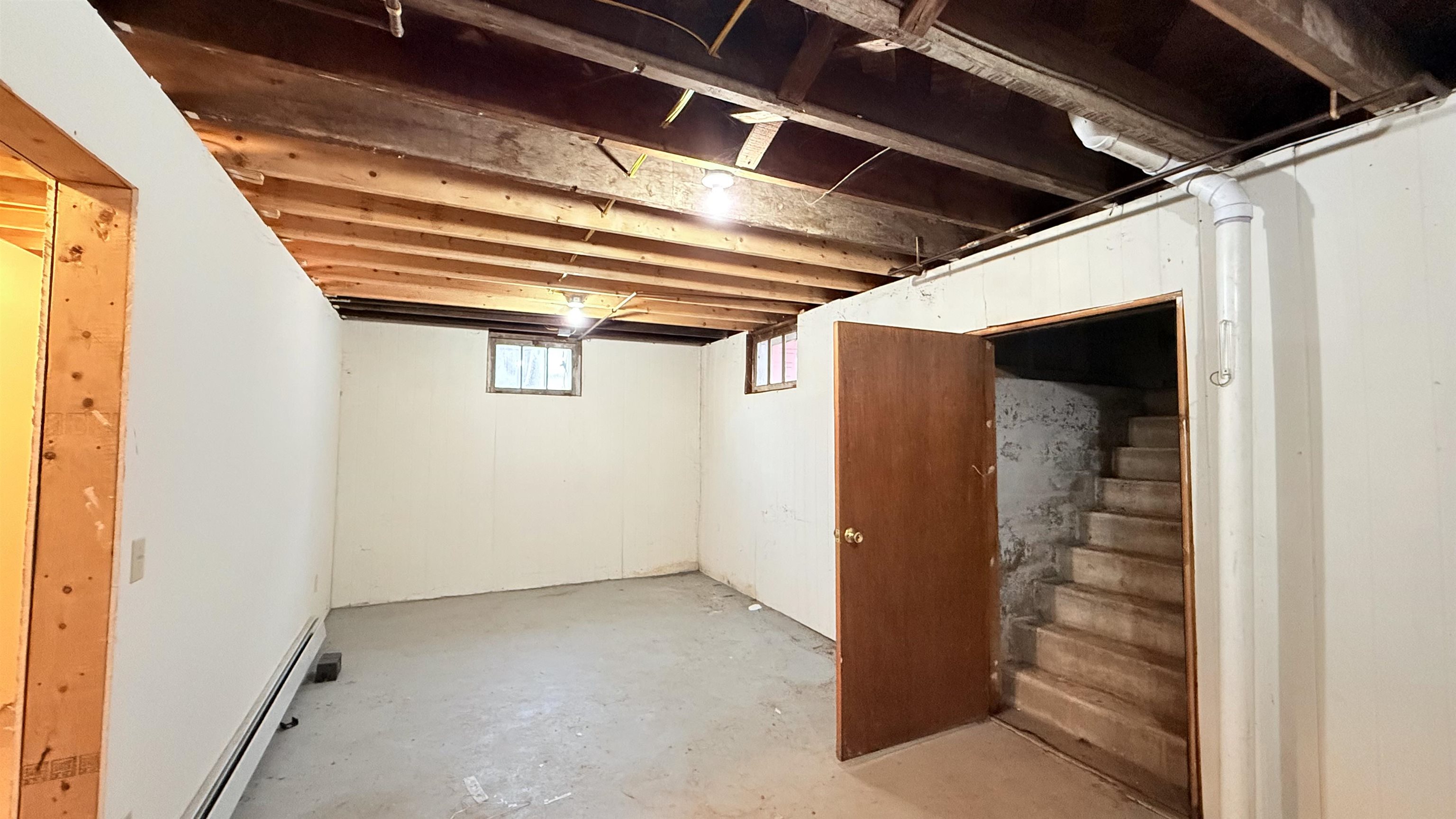 - Bulkhead, Concrete, Concrete Floor, Full, Storage Space, Unfinished, Exterior Access, Basement Stairs