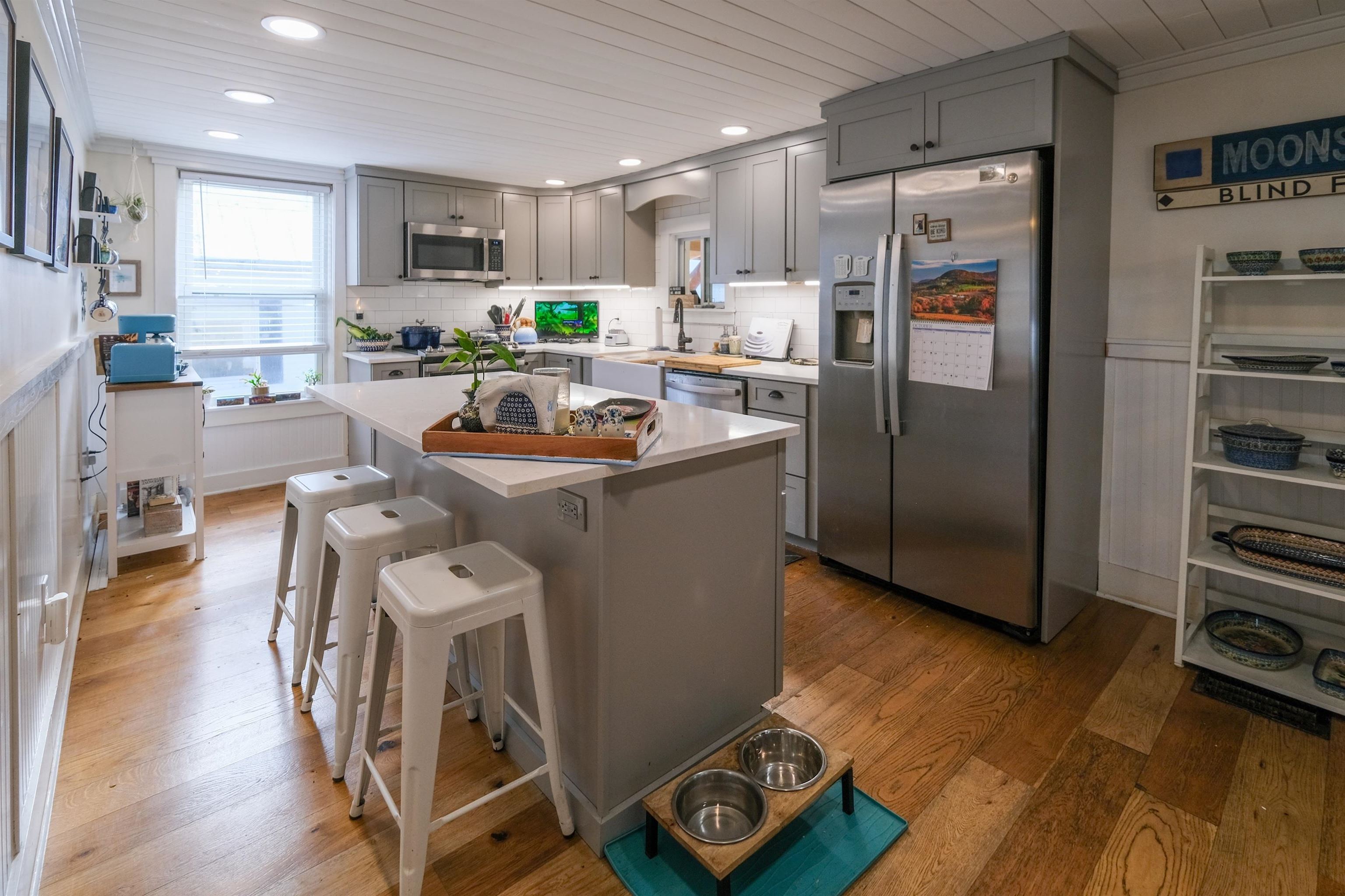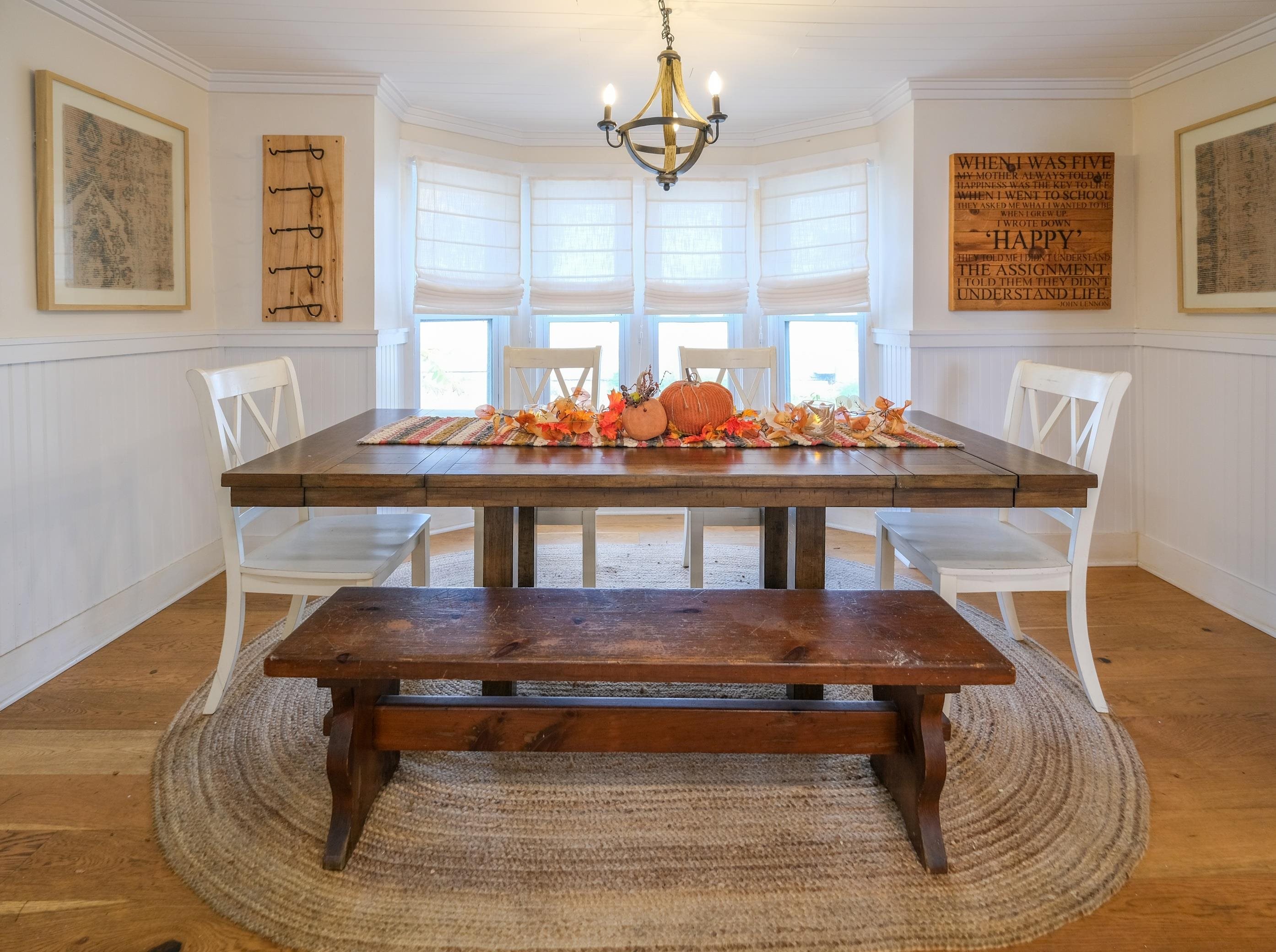 - Blinds, Dining Area, Furnished, Kitchen Island, Kitchen/Dining, Natural Light, Skylight, 1st Floor Laundry