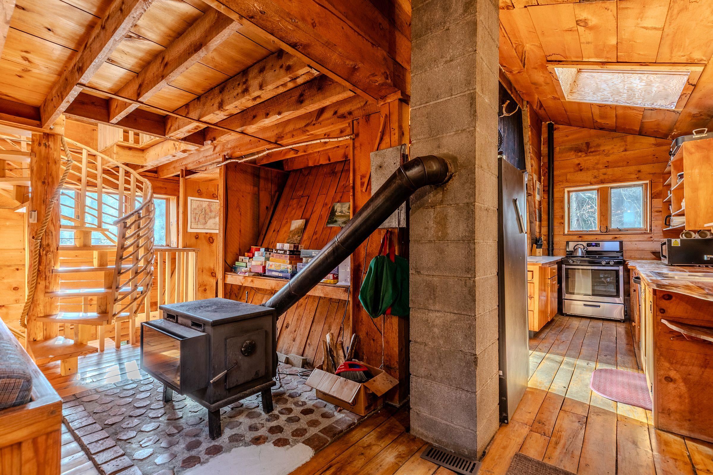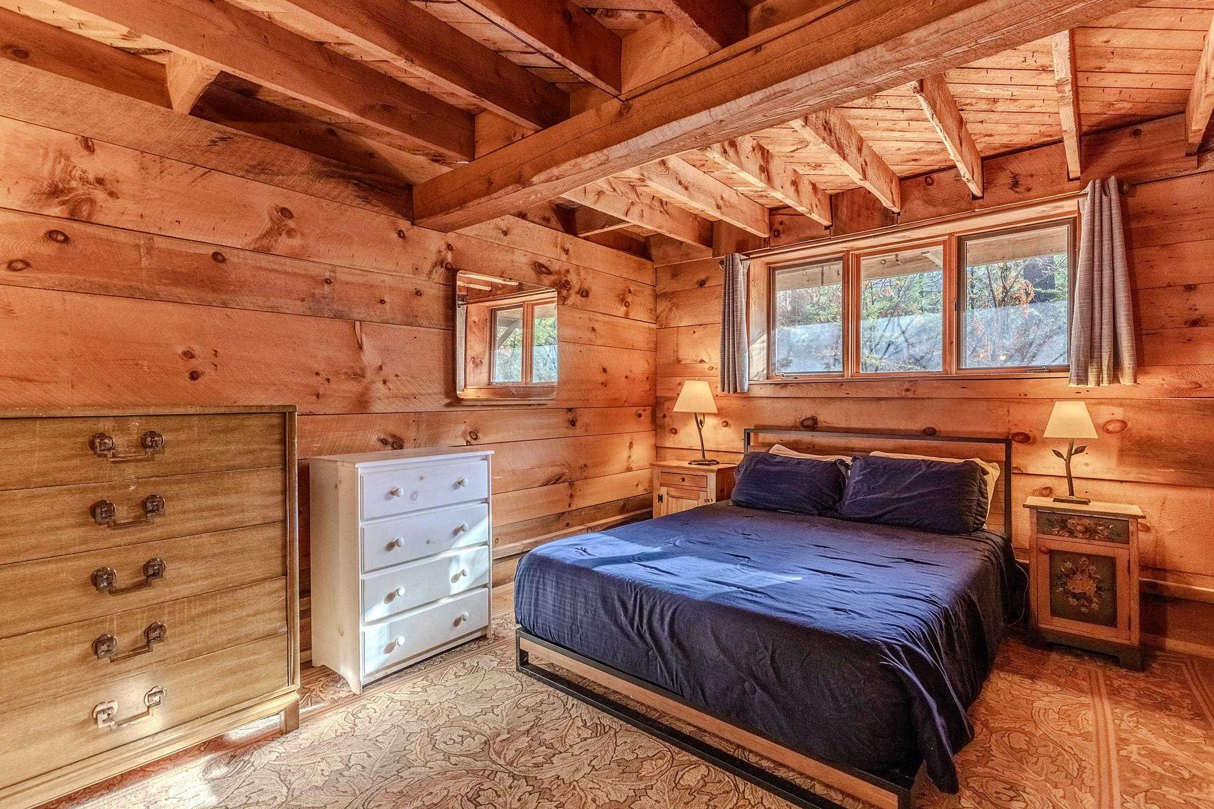 This charming cabin in the woods is the perfect retreat for those seeking adventure and tranquility alike. Surrounded by 10.7 acres of forest, it offers a cozy haven just a short walk from the breathtaking Pikes Falls and is 5 minutes to Stratton Mountain, ideal for skiing enthusiasts during the winter months. In warmer weather, the nearby trails beckon hikers and mountain bikers to explore the stunning landscapes and vibrant wildlife. With three spacious bedrooms and two baths this home comfortably accommodates multiple friends and guests. The rich history of the area, formerly enjoyed by many who moved from the Cities in the 40's to come to Vermont and live off the land, adds an intriguing layer making it not just a getaway but a connection to the past. Whether you're passionate about outdoor activities like maple sugaring or simply wish to unwind with a book by the woodstove or roaring firepit out back, this special offering is a delightful escape into nature's embrace. Deed, tax map and lister card are for 48.4 acres. This 10.7 acres is being subdivided off of the larger piece. Road frontage is approximate. Original Aframe was built in 1962 by earlier family and addition in 1976 with some upgrades C.2020 . Furnished and sold "AS IS". Some protective covenants and restrictions will be added soon.