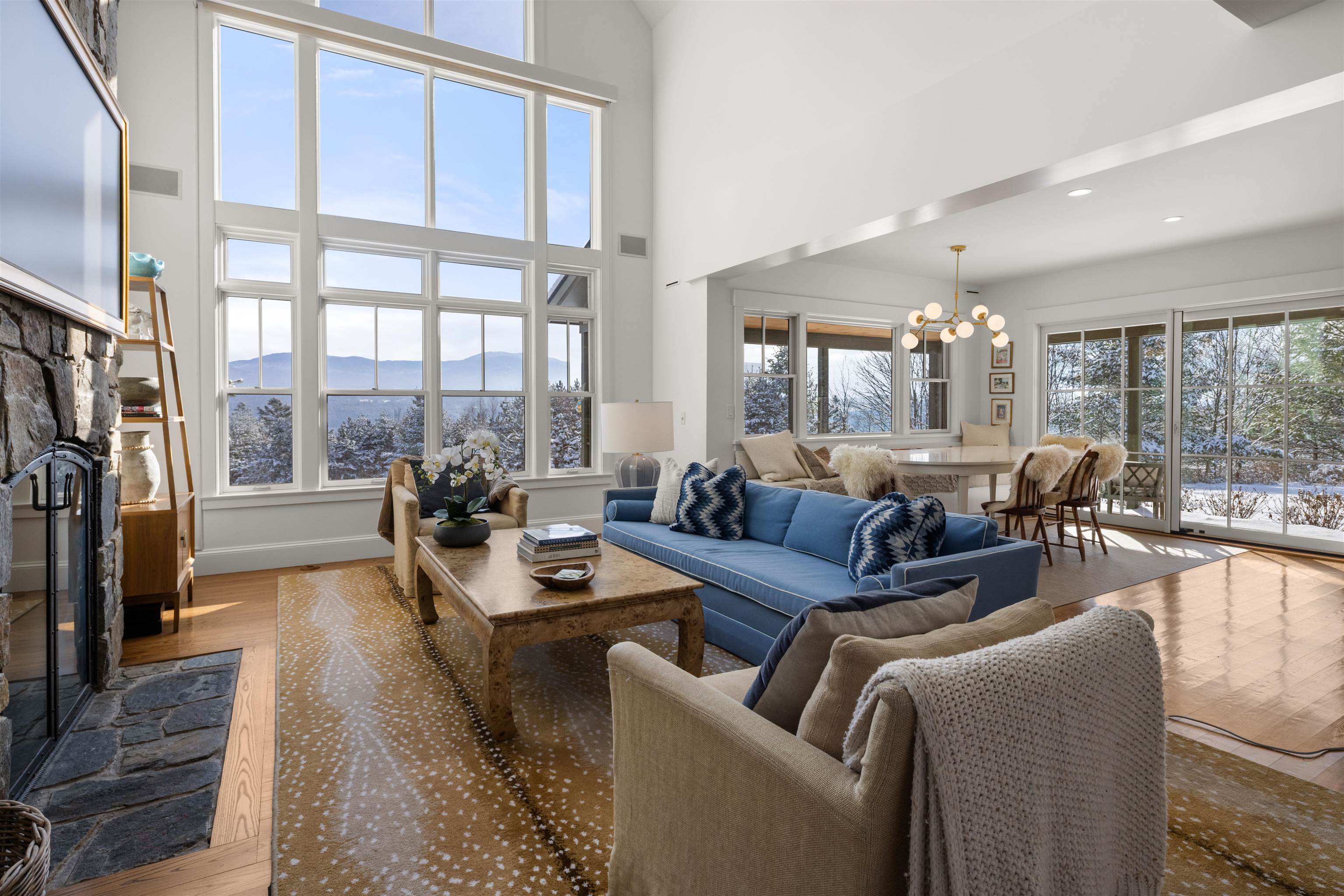 Perched in the sought-after Stowe Club community, this exceptional turn-key residence captures the essence of effortless mountain living. Located just minutes from the village, the Mountain Road and Stowe Mountain Resort and set on a private, low maintenance ½ acre, this home enjoys stunning unobstructed views of the Worcester Mountain Range. Built in 2004 and meticulously renovated, it blends modern luxury with timeless design. A soaring great room anchors the main level, where cathedral ceilings and floor-to-ceiling windows create a dramatic backdrop of mountain scenery and natural light. The newly designed chef’s kitchen is a showpiece, featuring state-of-the-art appliances and custom cabinetry; providing an elegant flow that's ideal for gathering and entertaining. A built-in sound system enhances the experience throughout the main living spaces. With 4 bedrooms, 4.5 baths, a home office and a fully finished walkout lower level with a kids’ zone and built-in rock climbing wall. The property's outdoor area also includes a well maintained flat yard with dedicated entertaining space and a newly installed flagstone patio and wrap around deck; inviting seamless indoor/outdoor living. Additional features include a heated garage, renovated primary bedroom and bathroom and thoughtful upgrades throughout. Whether you’re looking for a full-time residence or a relaxing getaway, this property offers the best of both worlds in one of Stowe's most desirable communities.