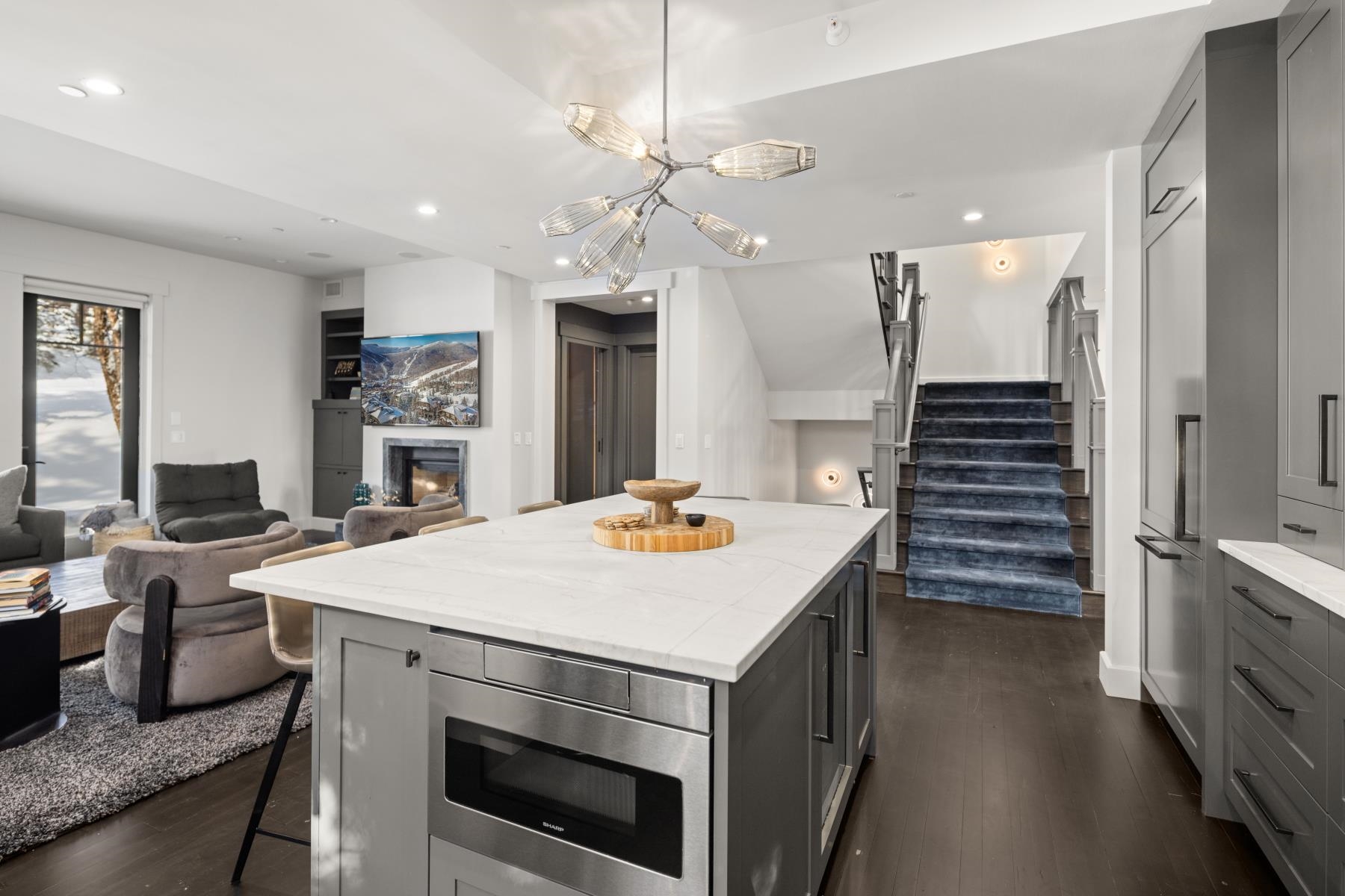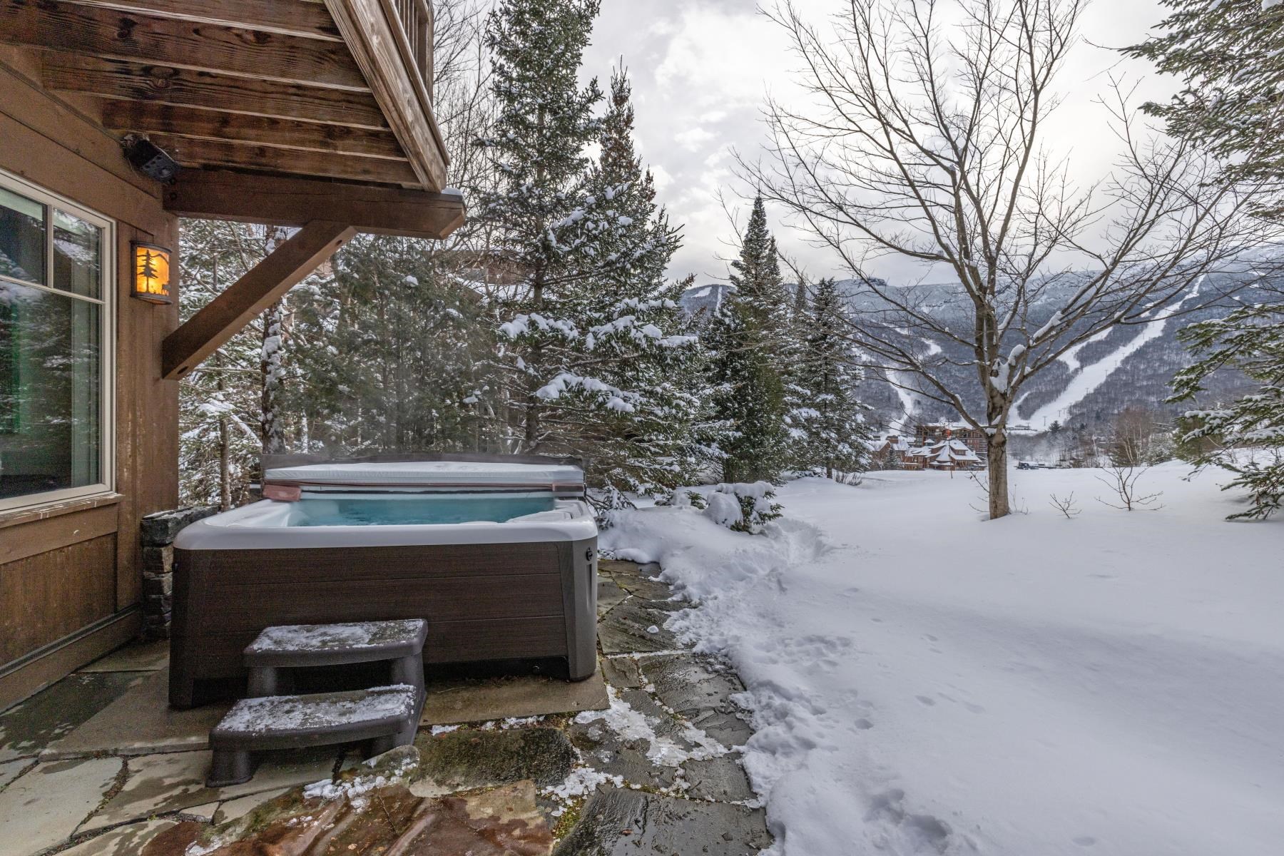 Luxury Slopeside Living at Stowe Mountain Resort. This beautifully renovated 4-bedroom, 5-bath TRUE ski-in/ski-out Mountain Cabin offers the pinnacle of slopeside living at Stowe. Highlights of this stunning cabin include a mountain-view primary ensuite with propane fireplace, private guest ensuite, two additional bedrooms with a shared bath, and a flexible bonus room ideal for an office, gym, or kids hideout space. The open floor plan on the main level features high-end appliances, refined finishes, a fireplace in the great room and one in the living room, and a finished lower walk out level with a spacious recreation room for additional living and entertaining. Step out the back door to your private hot tub and watch skiers glide by, or enjoy the view fireside from indoors. With effortless access to skiing, village dining, the spa, golf, pool, pickle ball, ice skating, concerts, and more, this home is a year-round basecamp for mountain adventure and alpine luxury.