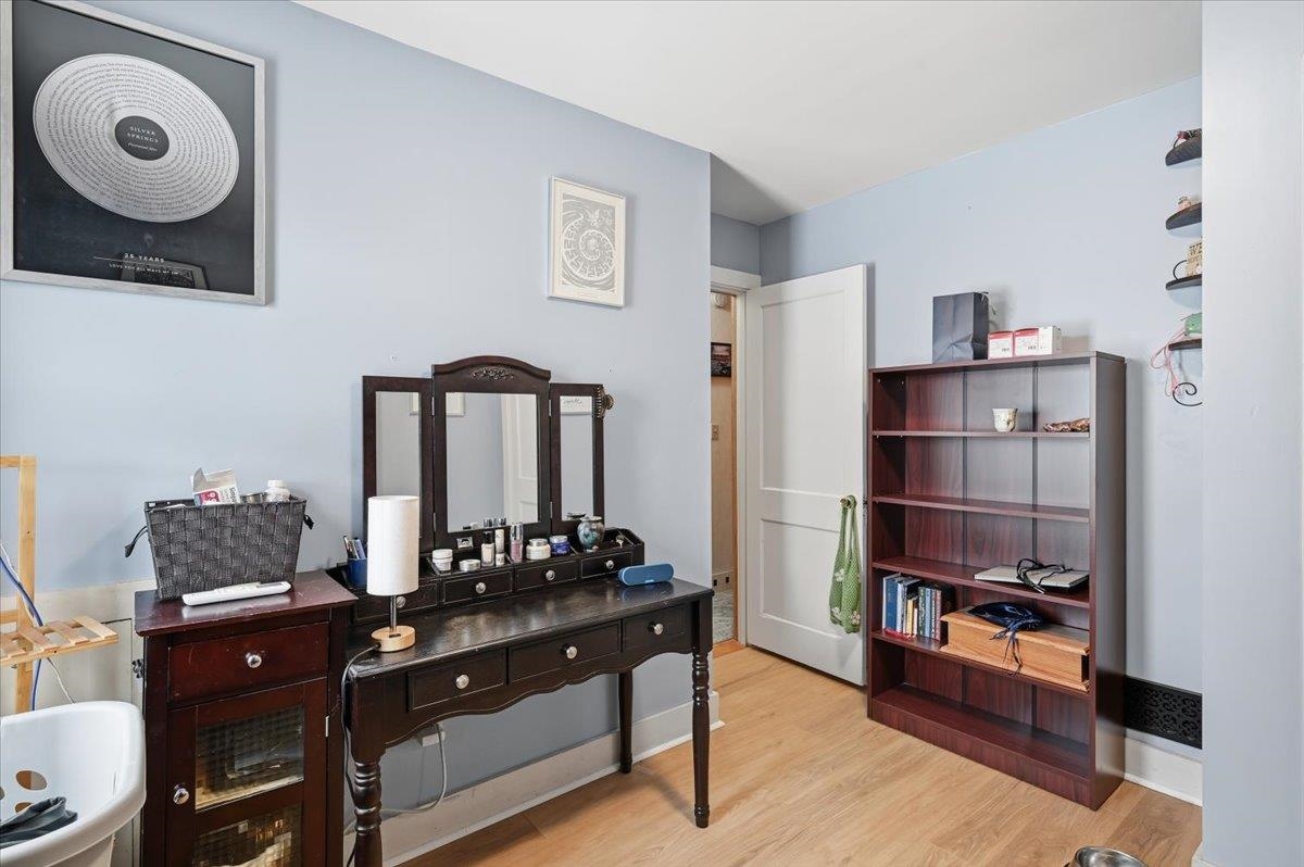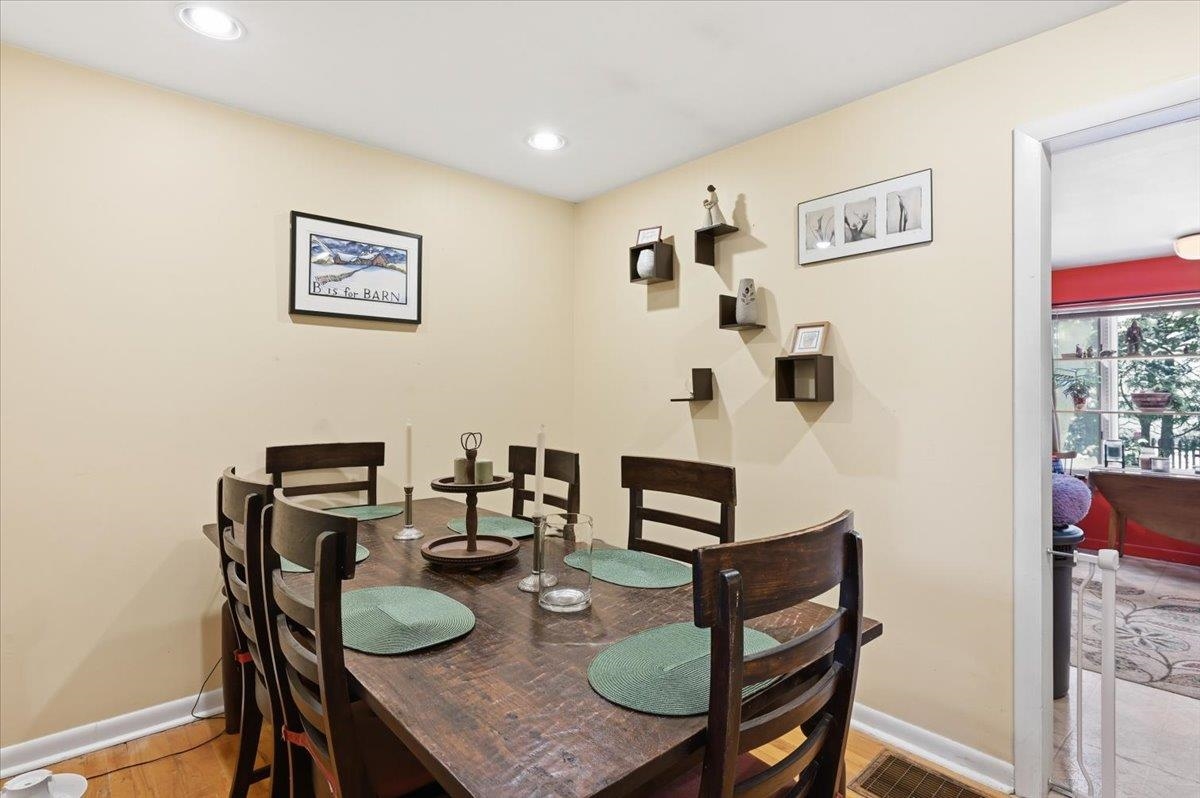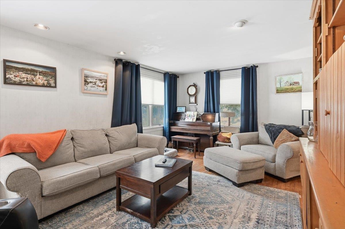 Welcome home to this charming ranch-style property set on a spacious lot in the heart of Essex Junction. This inviting 2-bedroom, 1-bath home offers comfortable one-level living with an easy, open layout and thoughtful features throughout. The bright living room is filled with natural light and highlighted by a built-in entertainment center and warm hardwood flooring that carries through the main living areas. The open eat-in kitchen features sleek appliances and plenty of room for everyday dining, while the adjoining dining area offers flexibility as a cozy den or home office if desired. Two well-sized bedrooms and a full bath complete the main level. The full basement adds valuable additional space with a partially finished area ideal for a family room, playroom, office, or workout zone, along with laundry hookups and great storage options. Outside, the large fenced-in yard is perfect for gardening, pets, and play. The detached garage doubles as an excellent workshop space. Ideally located close to shopping, restaurants, grocery stores, the popular Five Corners, and more, this home offers comfort, convenience, and the chance to enjoy the best of Essex Junction living. Easy commute to Winooski, Colchester & Willston!
