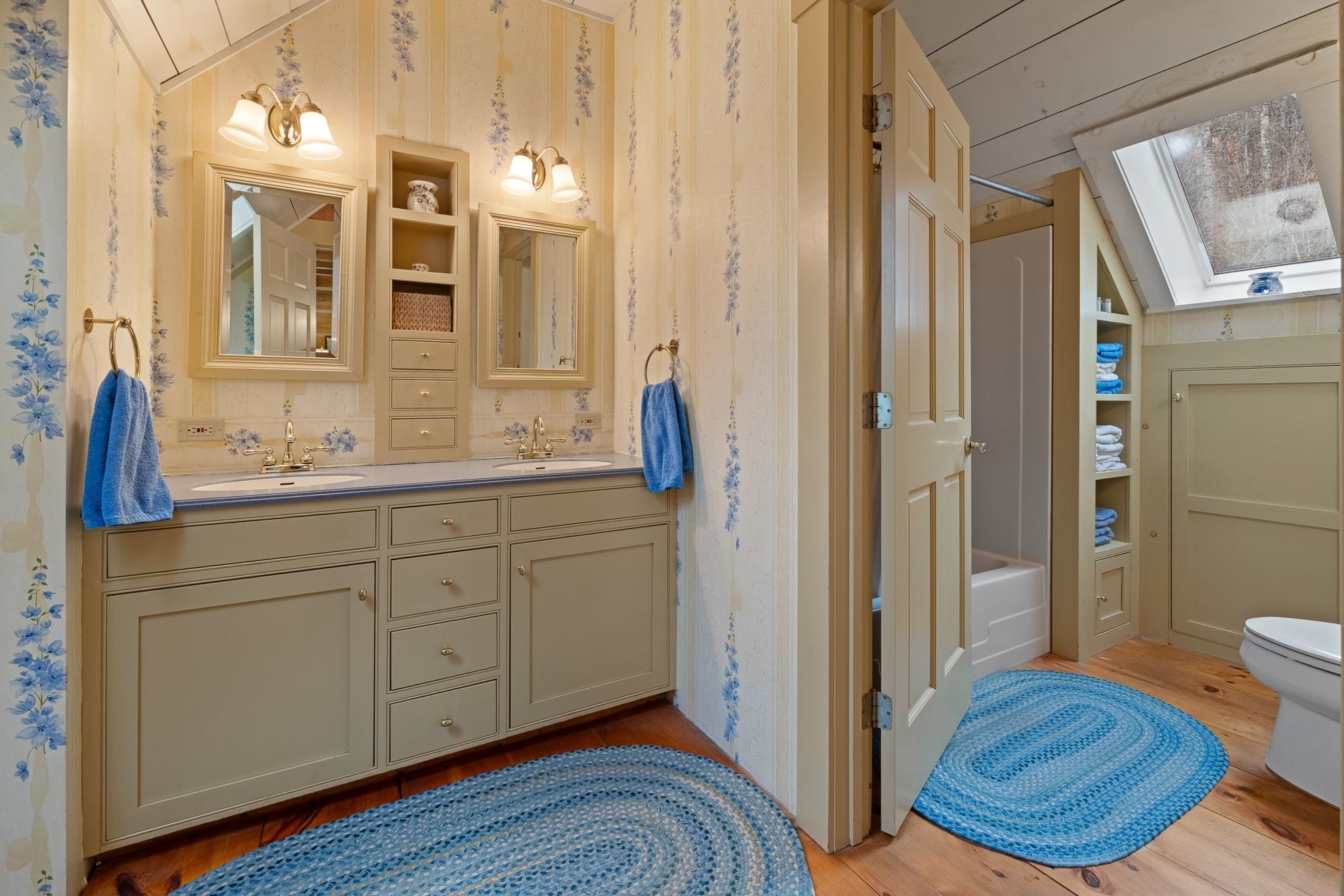 Welcome to Starry Hill, a fully furnished Airbnb rental, handcrafted, solid-timber Colonial privately nestled on 18.9 tranquil acres just 5 miles North of Woodstock, built over 4 years by a family of loggers and master craftsmen. This exceptional home features Eastern white pine walls, hemlock structural beams, and pine ceilings/flooring sourced from the property. Warm, inviting living spaces include a vaulted kitchen/dining area with skylights, custom cabinetry, farm sink, and Hearthstone brand gas stove; French doors open to an expansive 8’x32’ screened porch perfect for gathering. A cozy living room offers a three-sided view and a Waterford woodstove from Ireland. The main level primary bedroom includes a sitting area, gas fireplace, & double closets; two additional bedrooms upstairs each feature small gas stoves & custom closets. Bathrooms include a main-level shower, full upstairs bath with privacy door, and a lower-level bath with laundry. Enjoy multiple porches, patio with built-in fire pit, marked woodland hiking trails, and berry-picking. Additional features include drilled well, two woodstoves, four propane corners, high speed internet, and a full basement with ample workshop storage space. There is a Tesla Powerwall for efficiency and back-up power. Home is Green Built and treated with a non-toxic water based stain. The home is painted inside with Fine Paints of Europe oil based paints. A rare sanctuary offering privacy, craftsmanship, and timeless Vermont charm.