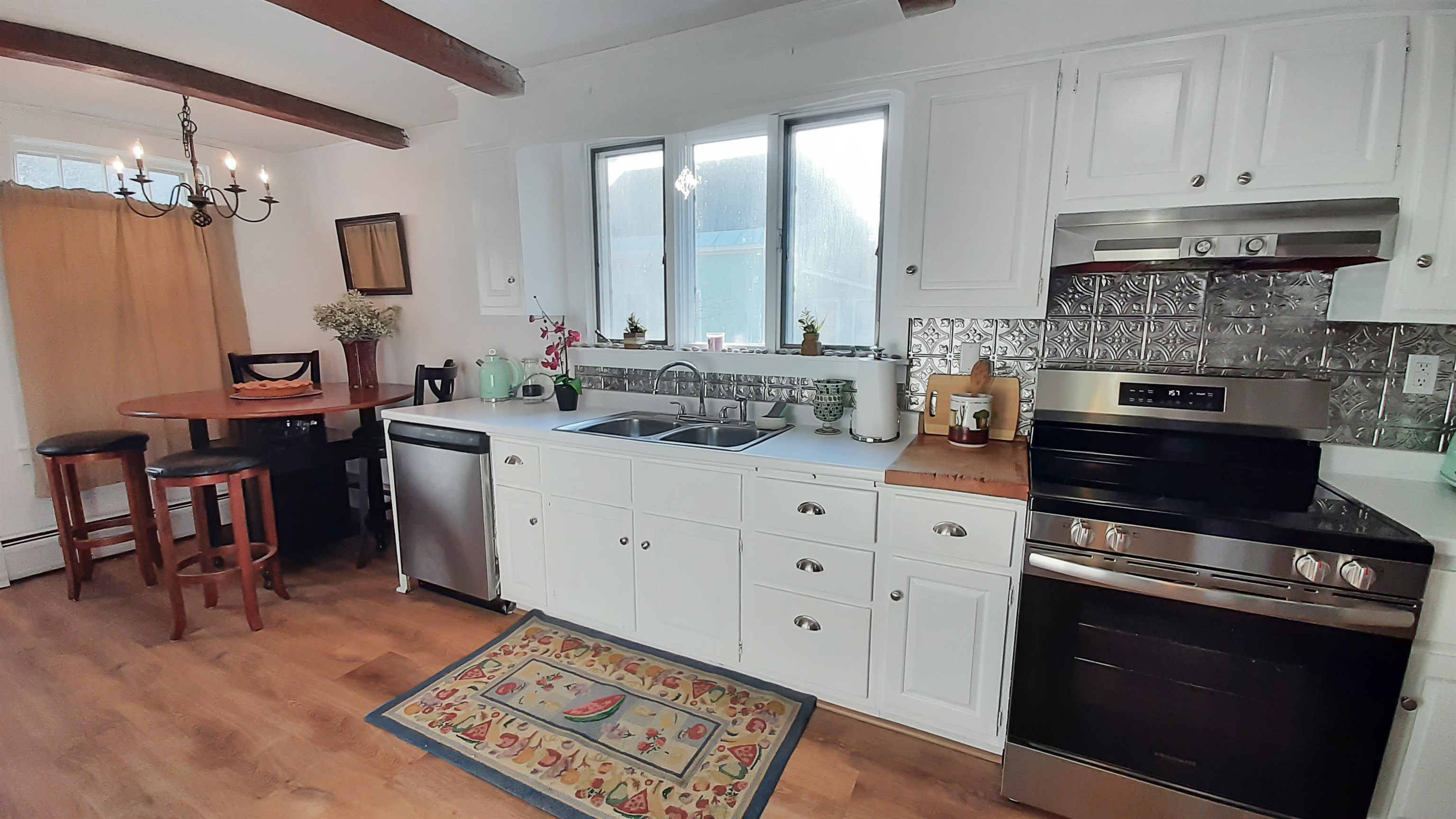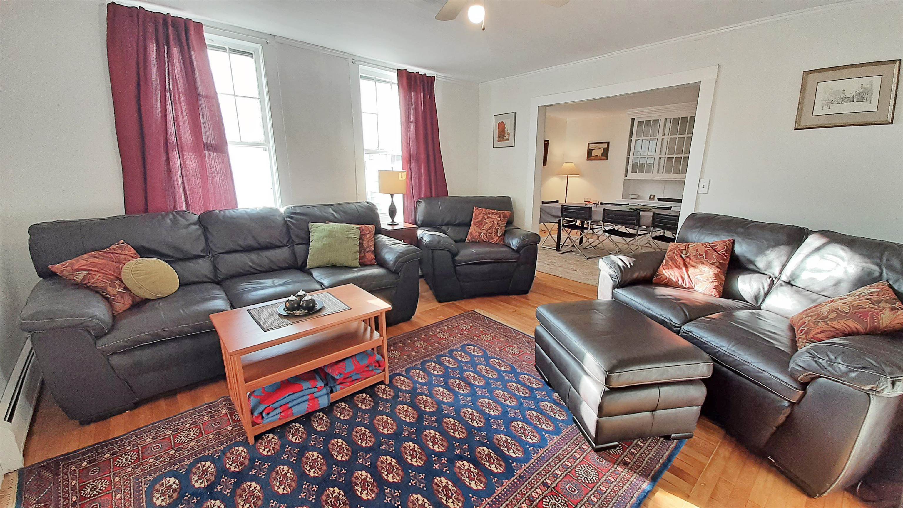 Antique home with space for friends & family to join you for some special Vermont time. Currently set up as a single-family home with five bedrooms & bathrooms, the flow of this house allows for privacy and socializing with the upstairs family room & lower living room. There is an attached barn with potential for finishing too as well as an attached garage for toys or cars. The back entry leads to the laundry room & the bright kitchen with a breakfast nook & into a dining room with a large built-in & a table to seat many, & then into a cozy living area with comfy furniture. Two of the bedrooms with en suite bathrooms are on the main level. The sparkling wood floors are both on the 1st and 2nd levels & have detailed patterns used long ago. There is potential to transition to a multi-family property with the house having multiple entrances, two staircases, & a kitchenette upstairs & being on public water and sewer. There is even potential to subdivide the property with the frontage on High Street & have a second lot accessed from above. There is a large back yard, plenty of parking, & access to the ski shuttle up the road. Sold mostly furnished, you can begin enjoying the rest of the ski season right away. Being minutes to Okemo & less than an hour to other great skiing, plus swimming and fishing in the nearby lakes, might just make this the right place for you!
