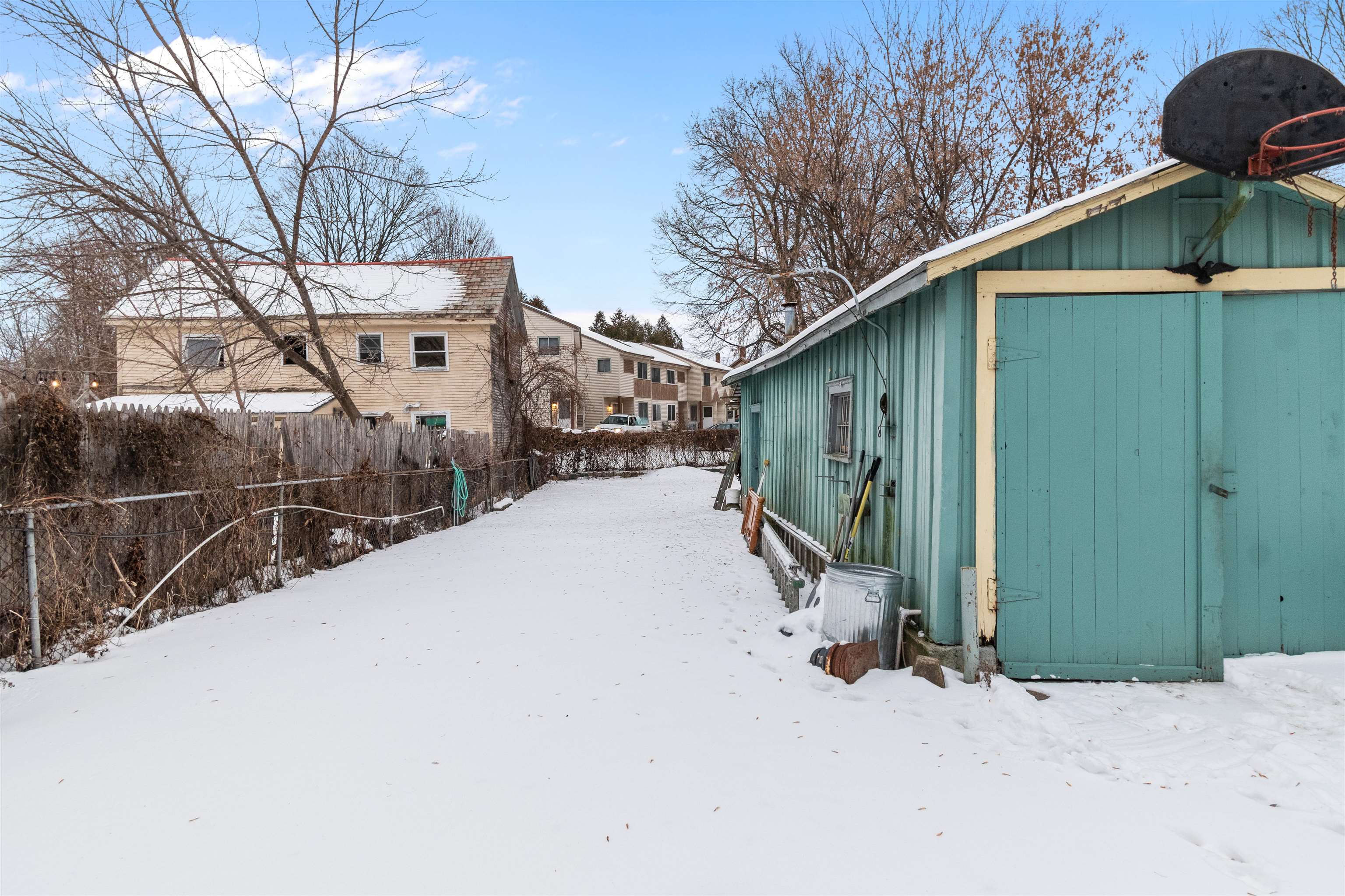 Set on a prime, flat 0.14-acre lot in the heart of Burlington, this centrally located property presents a rare opportunity for homeowners, investors, or developers alike. Burlington zoning allows the potential for up to 6 units within the existing structure, with the possibility of additional development on the lot. Just minutes to the Church Street Marketplace, Burlington Waterfront, Bike Path, and a nearby bus line, the location delivers exceptional convenience. With close proximity to UVMMC, UVM, and Champlain College, it is an ideal setting for rental use. The existing home offers 4 bedrooms, 2 bathrooms, and 1, 470 square feet of finished living space. The first floor features a spacious living room, eat-in kitchen, a bedroom, and a convenient half bath with first-floor laundry. Upstairs, you will find three additional bedrooms and a ¾ bathroom. Both levels enjoy access to enclosed three-season porches at the rear of the home, providing flexible additional space. Recent updates include fresh interior paint throughout (2025) and a newer hot water tank (2024). Outside, the deep, level lot includes a fully fenced backyard, while an oversized detached one-car garage provides ample storage or utility space. With its prime residential location and development potential, this property invites exploration of the many possibilities it holds- whether updating, expanding, or planning for future use. Don’t let this Burlington investment opportunity escape!