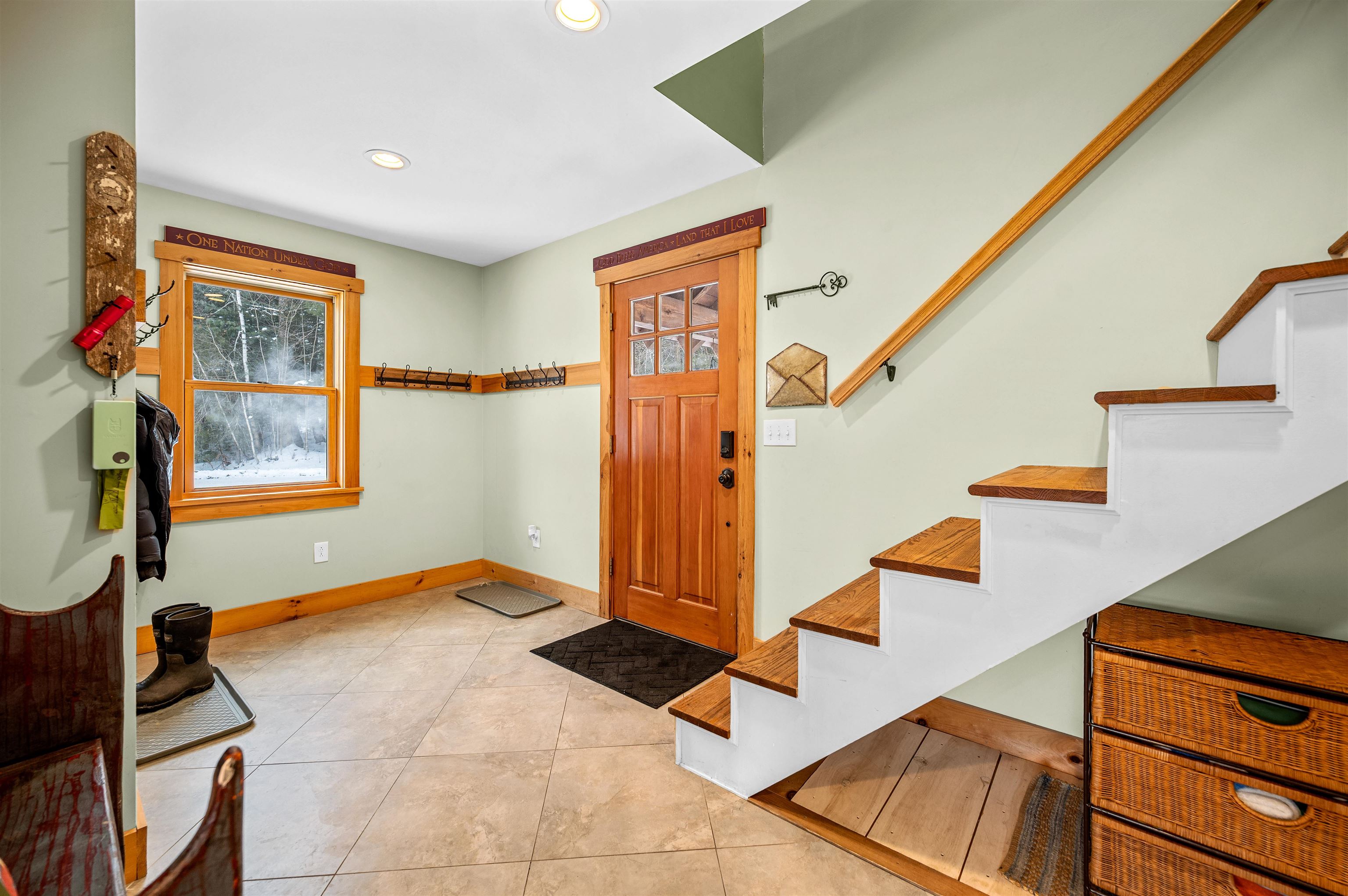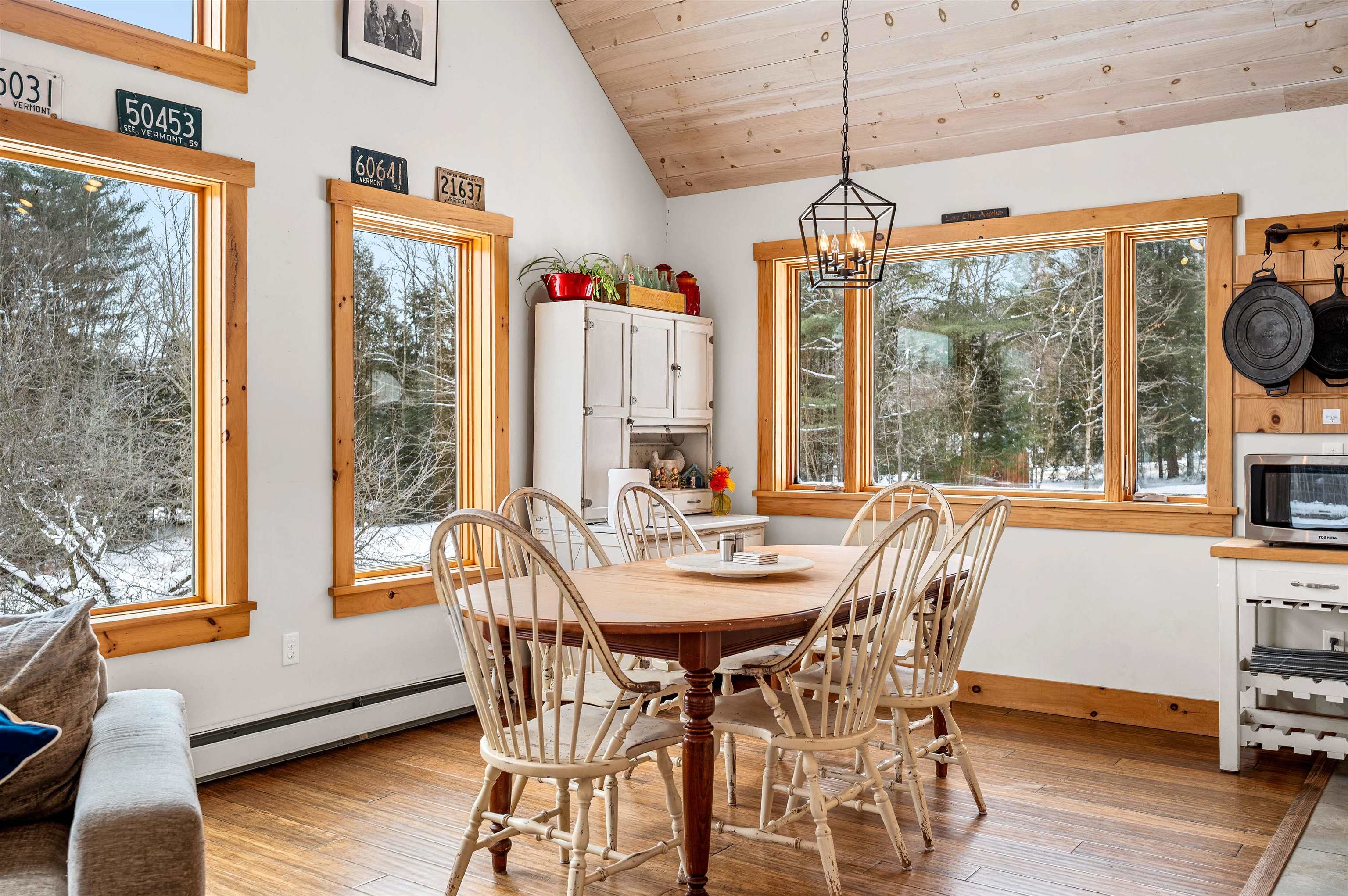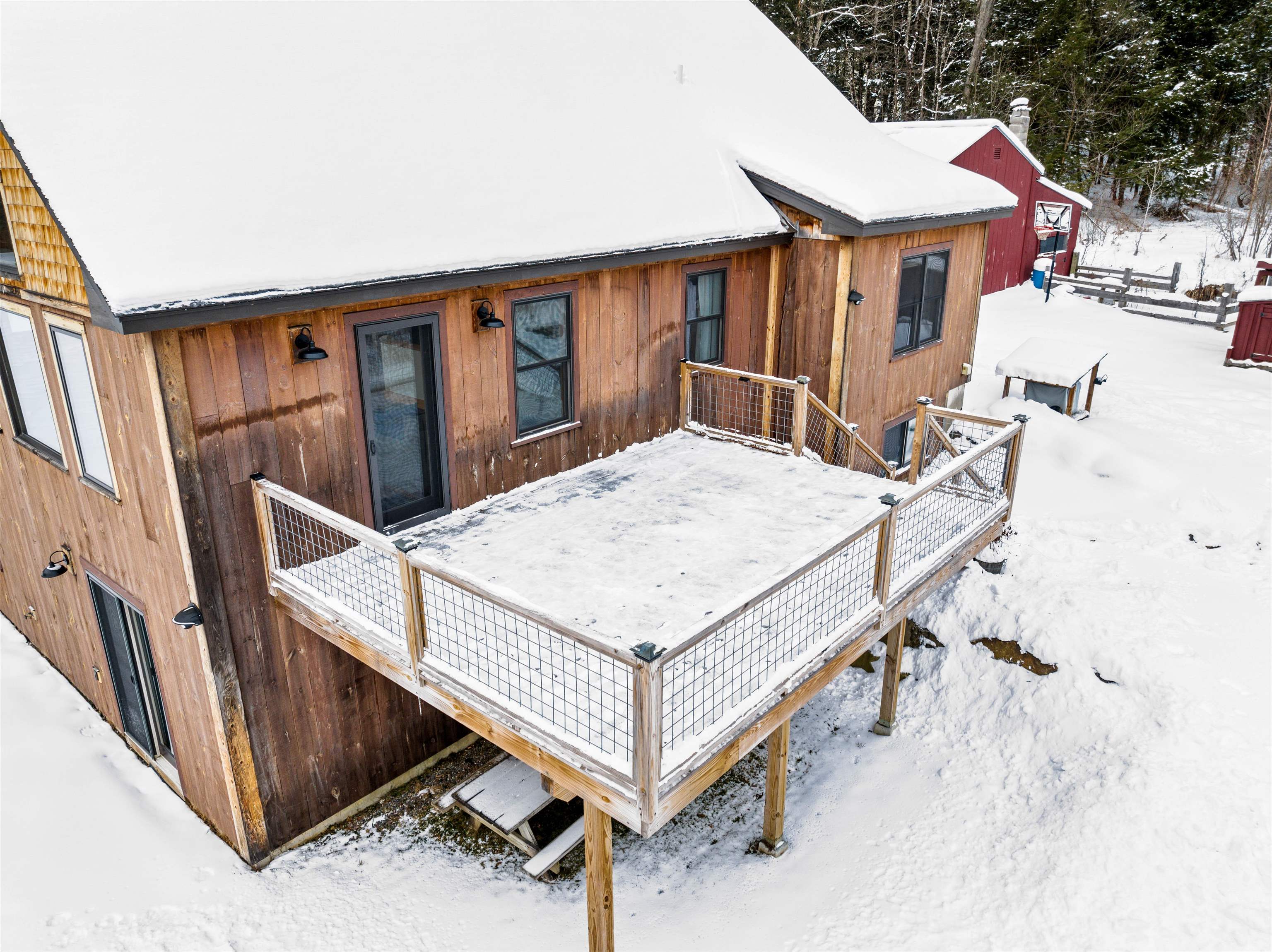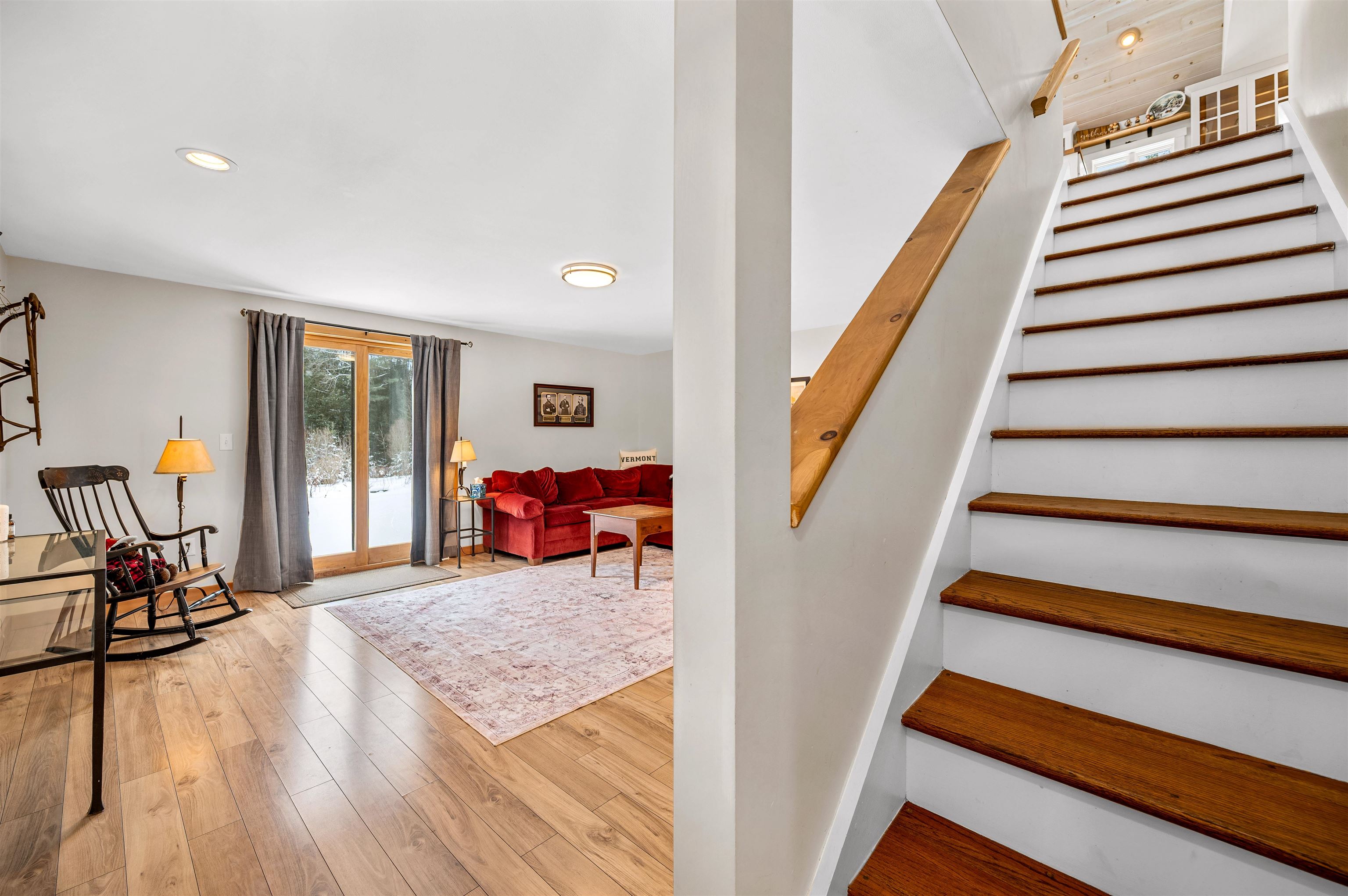 Welcome to this light & bright home on 5.7 acres! This 3-BR, 2.5 -BA property has been thoughtfully designed to take advantage of both the indoor and outdoor space. The main level features an open living/kitchen/dining area with 20' vaulted ceilings- perfect for gathering. The oversized windows are plentiful and invite in an abundance of natural light that welcomes the outside in, allowing you to feel connected with the gorgeous surroundings in all seasons. The chef's kitchen is a dream, with plenty of cabinet & counter space and a work island. Open to the living area, it allows you to feel connected to everyone in the house while still whipping up culinary magic. Rounding out the main level is a large primary with en suite that features double sinks and a soaking tub, and a spacious mudroom with radiant heat- the perfect area for all of your outdoor gear! A main level laundry adds to the convenient layout of this home. The lower levels boasts two generously sized bedrooms and a second living space, which could be used for a home office, family room, crafting area, or whatever suits your needs. The second level loft is a fantastic space for relaxing. It's a great bonus area that has so many possibilities: A reading nook, a gathering spot to play games, or extra sleeping space. This area is only limited by your imagination! Take in views of the property and nearby mountains on the large deck- just the right place to begin and end your days, and to entertain in warm months. The large detached barn/garage leaves plenty of room for storage of your outdoor equipment and toys. In addition, a chicken coop is a fun surprise on this property. This home comes fully furnished minus a few personal items. This makes it truly ready to settle right in on day one, or rent the property for income. Close to Morrisville & Stowe, this is a wonderful location that is an easy distance to ski resorts, walking trails, the VAST trail and swimming holes. It's time to call this gem home!