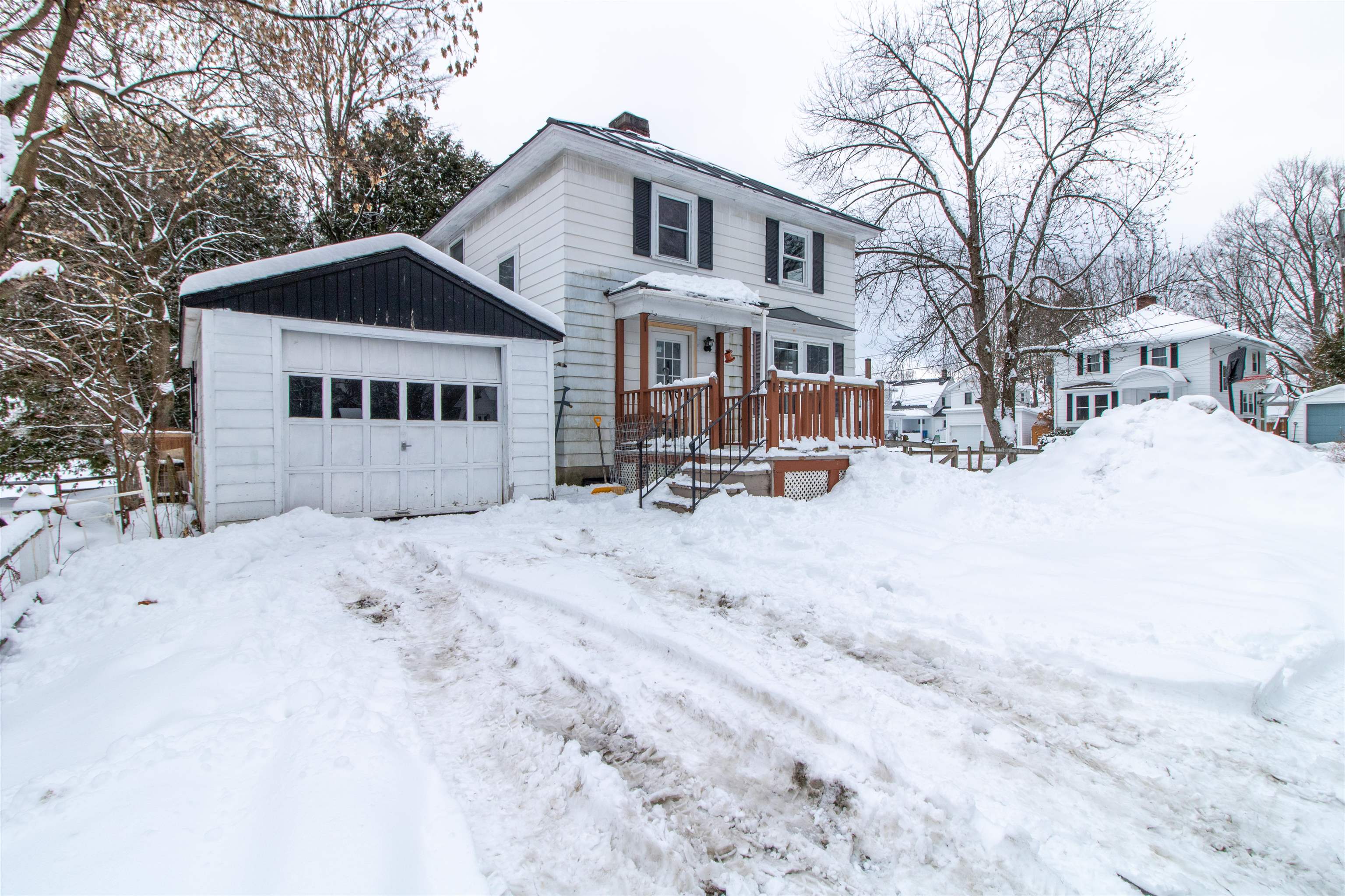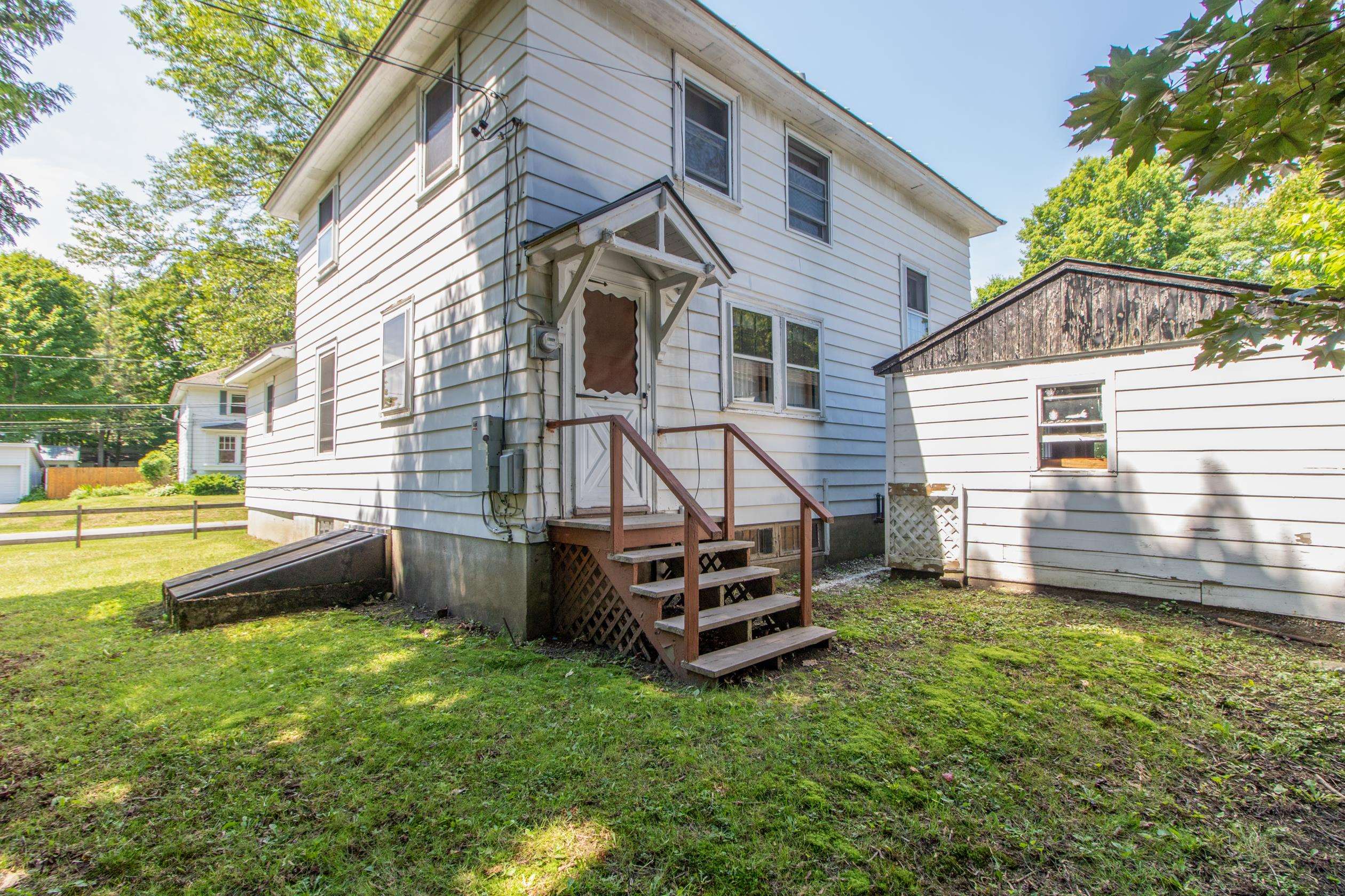 This charming 1920s home has many thoughtful updates and is full of character. Set on a corner lot in an established neighborhood in the village of Derby Line, the property is just minutes from schools, Baxter Park, and the iconic Haskell Free Library and Opera House on the Canadian border. The main level includes an updated and inviting eat-in kitchen with new cupboards and layout, a bright living room with built-in shelving, and a primary suite with a updated ¾ bath, and a large walk-through dressing room or sitting room, offering flexible space to suit your needs. The second level features a full bath, two bedrooms, plus two bonus rooms, ideal for a playroom, hobby room, office, or adaptable living space. The spacious basement adds even more functionality with a quarter bath and plenty of room for storage and a workshop. Recent improvements include double window in the primary bedroom, primary bathroom with new flooring and vanity and new front door. Standing seam metal roof on the house is approximately 10 years old and newer shingle roof on the garage. A paved driveway and newly added privacy fence create a functional and enjoyable backyard space, perfect for relaxing, entertaining or your furry friends. A detached one-car garage provides added storage and convenience. With many updates already completed, there is still room for you to bring your ideas and personal touches to make this home your own. Don't miss this chance to own a welcoming home with space to create your own story in Vermont’s Northeast Kingdom.