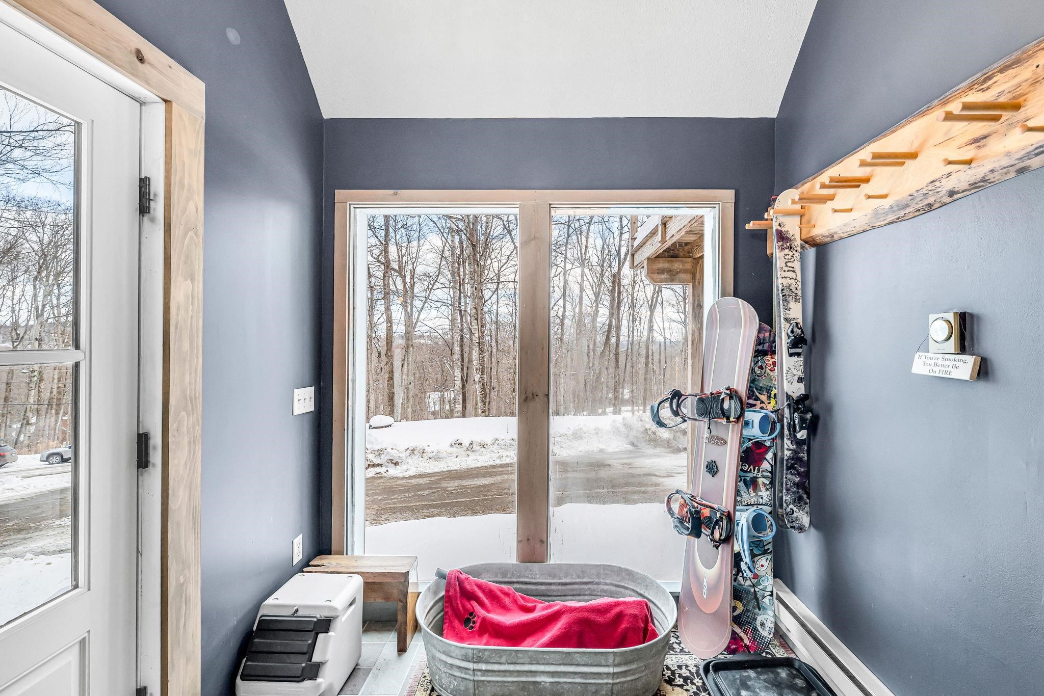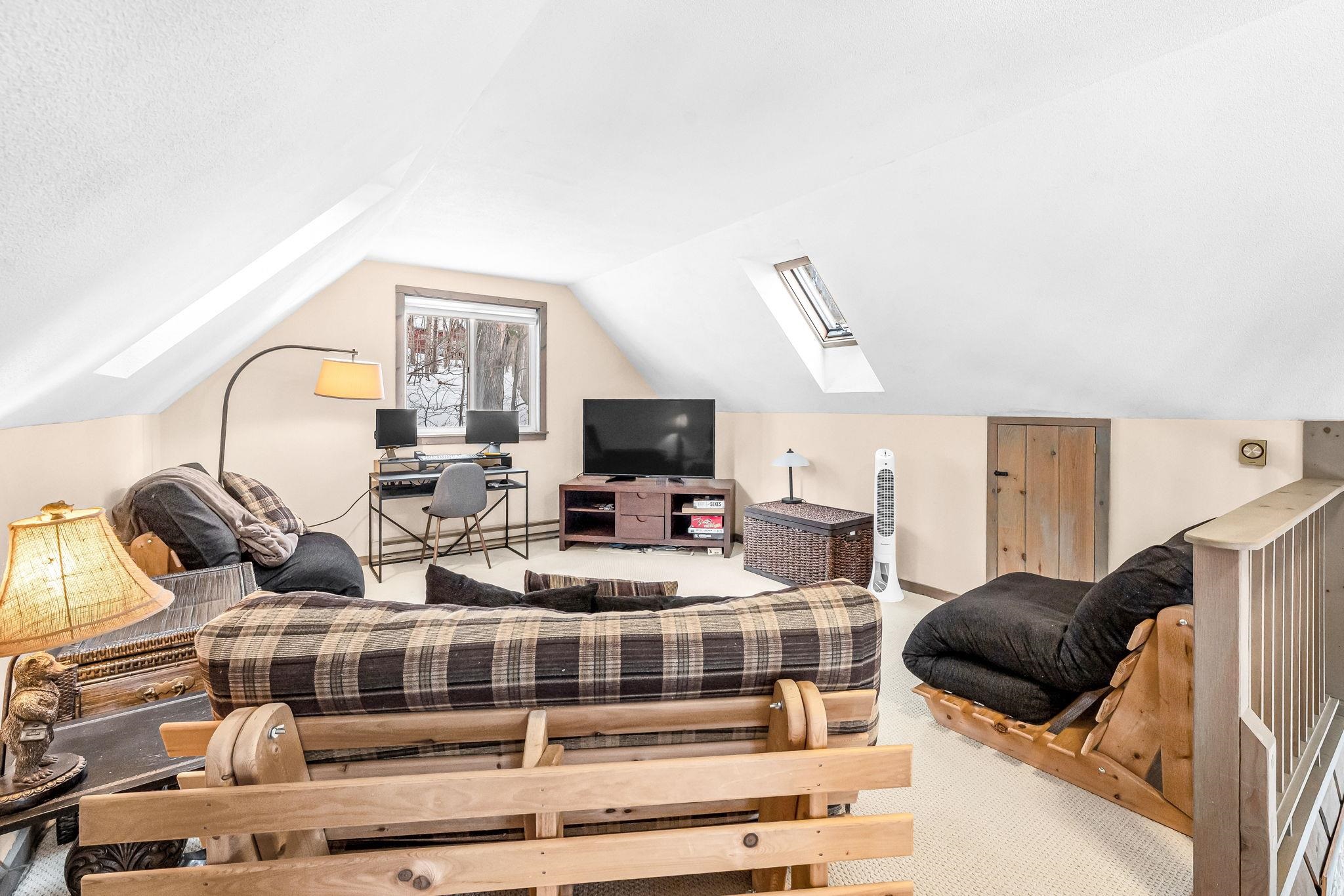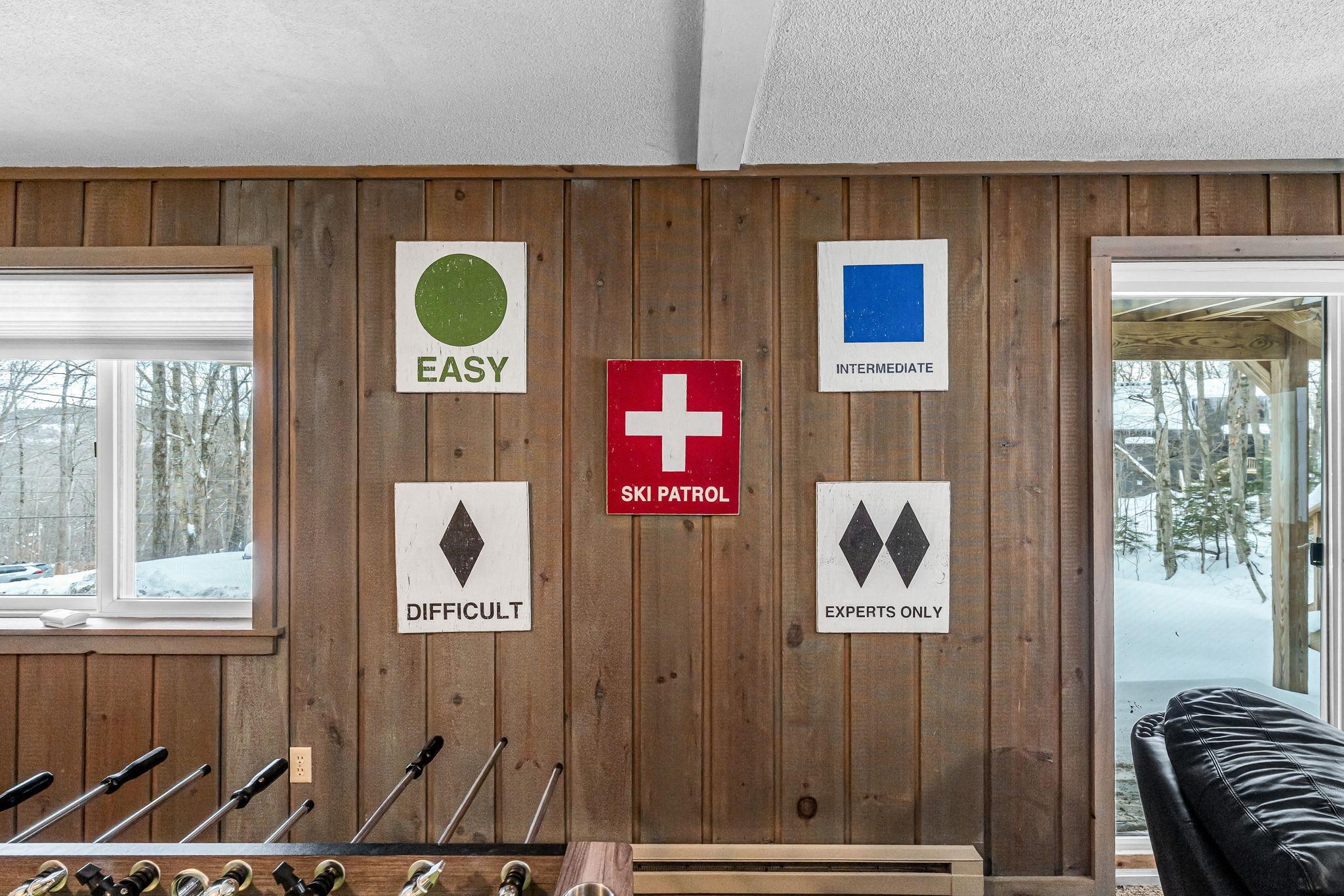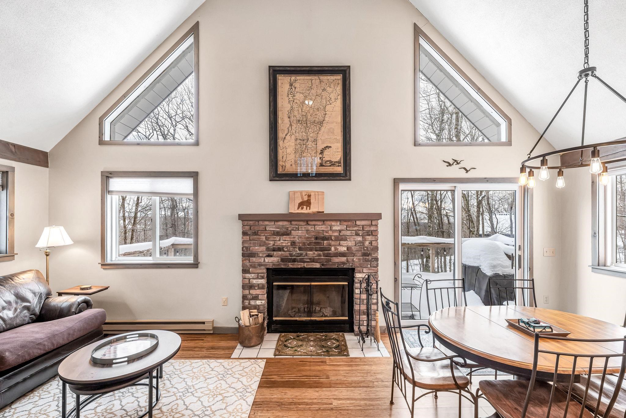 Set at the end of the road and lower on the hill, this chalet-style home offers many of the features buyers consistently look for in Chimney Hill. The thoughtfully designed mudroom entry includes a custom live-edge wood bench by Vermont Live Edge, along with ski, coat, and storage racks—ideal for Vermont’s four-season lifestyle. The home features three levels of living space. The ground level includes an extra living space room, laundry area, bunk room, full bath, and access to the outdoor fire pit. The main level offers two bedrooms, a full bath, and an open-concept living, dining, and kitchen area with cathedral ceilings, an island, and sliders leading to the view rail deck. A loft provides additional flexible space for guests or entertaining totaling 3 different hangout spots! Ownership includes access to Chimney Hill’s 1, 200-acre, all-season resort campus and clubhouse. Amenities include indoor and outdoor heated pools, a hot tub, arcade room, children’s playroom, members’ lounge, community room, reading nook, fully equipped kitchen for HOA member use, outdoor grill area, playground, basketball and tennis courts, and an extensive multi-use trail system supporting hiking, biking, snowmobiling, cross-country skiing, seasonal pickleball, and ice skating. Additional shared amenities include a fishing pond, lookout areas, and trail access toward Haystack Mountain.The surrounding Deerfield Valley and Southern Vermont region offer year-round recreational opportunities including skiing, golf, boating, hiking, paddleboarding, access to the Green Mountain National Forest, along with local music, festivals, breweries, distilleries, shopping, and a wide range of dining options.