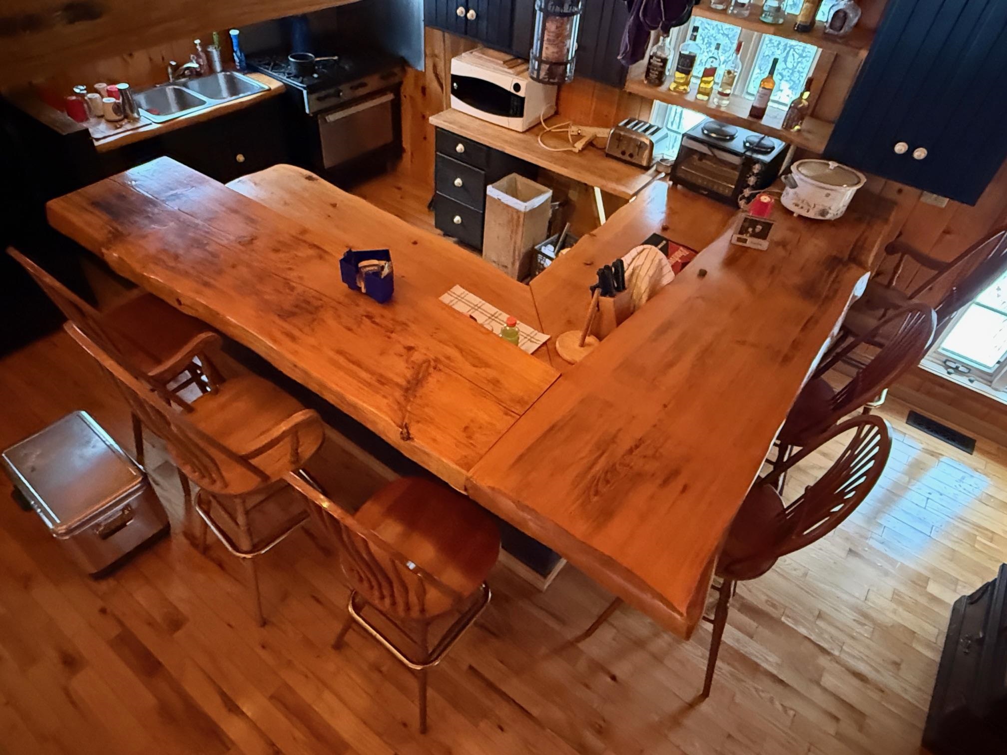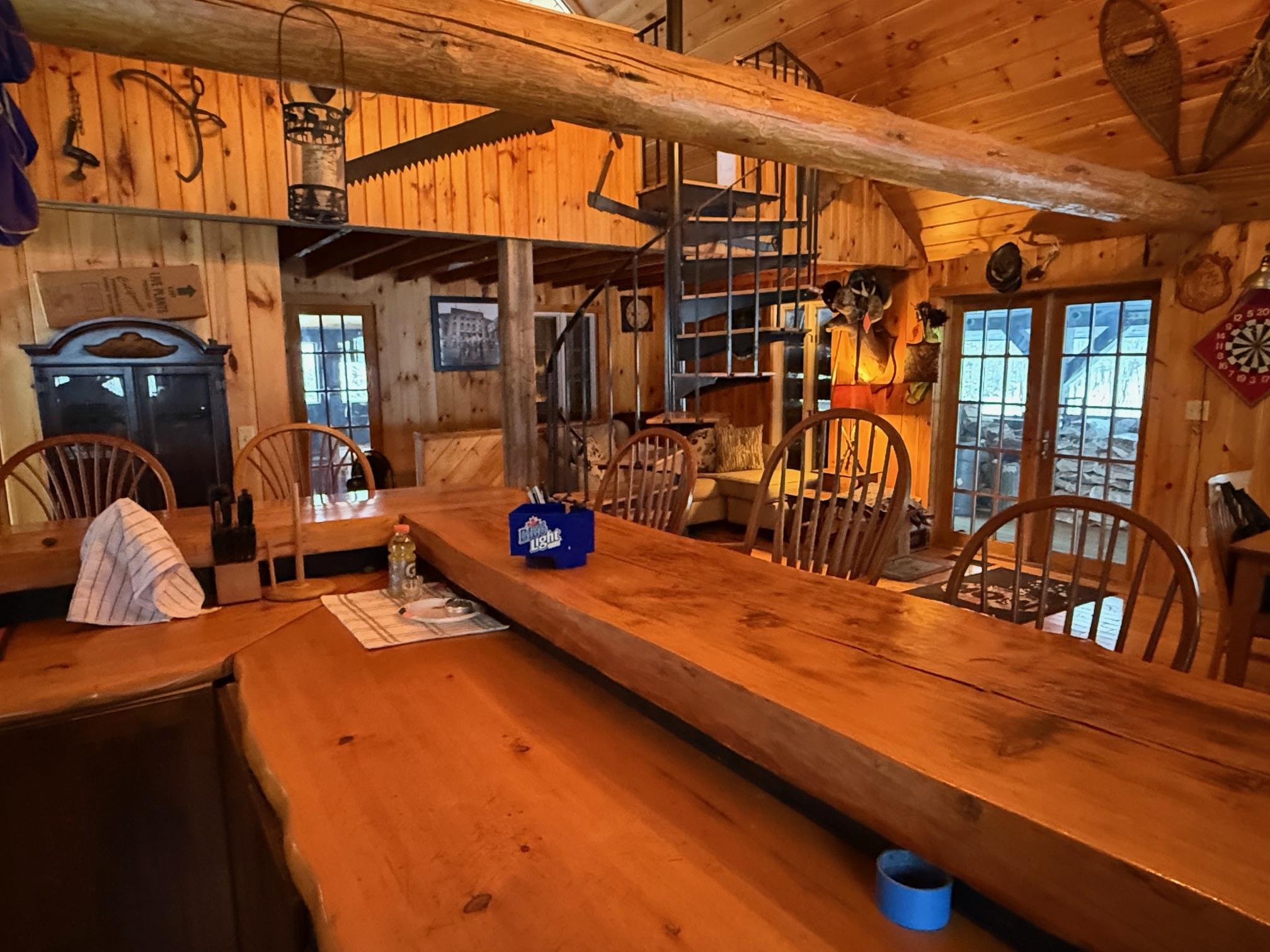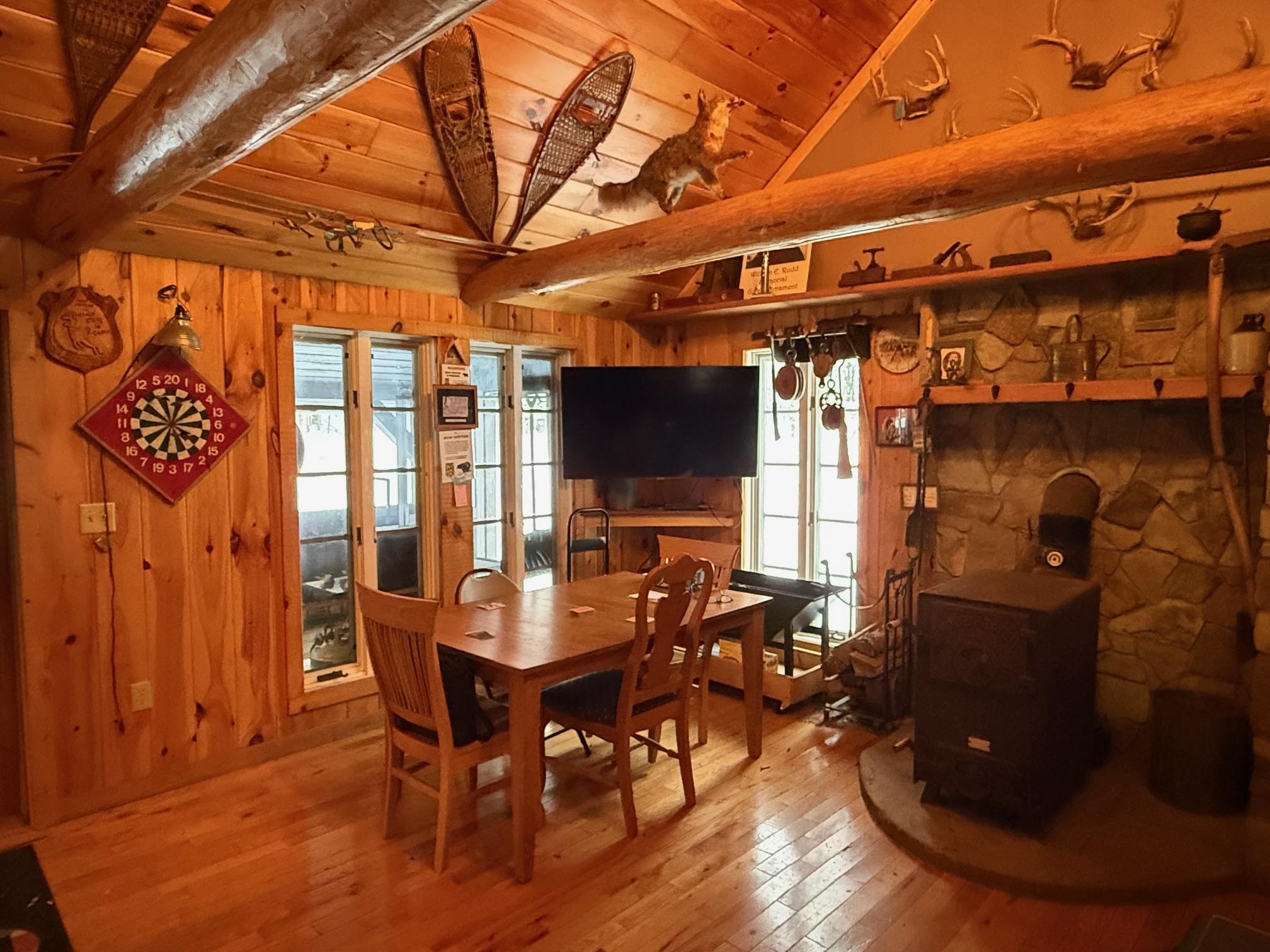 - Bar, Cathedral Ceiling, Dining Area, Hearth, Kitchen/Dining, Living/Dining, Natural Light, Wood Stove Hook-up