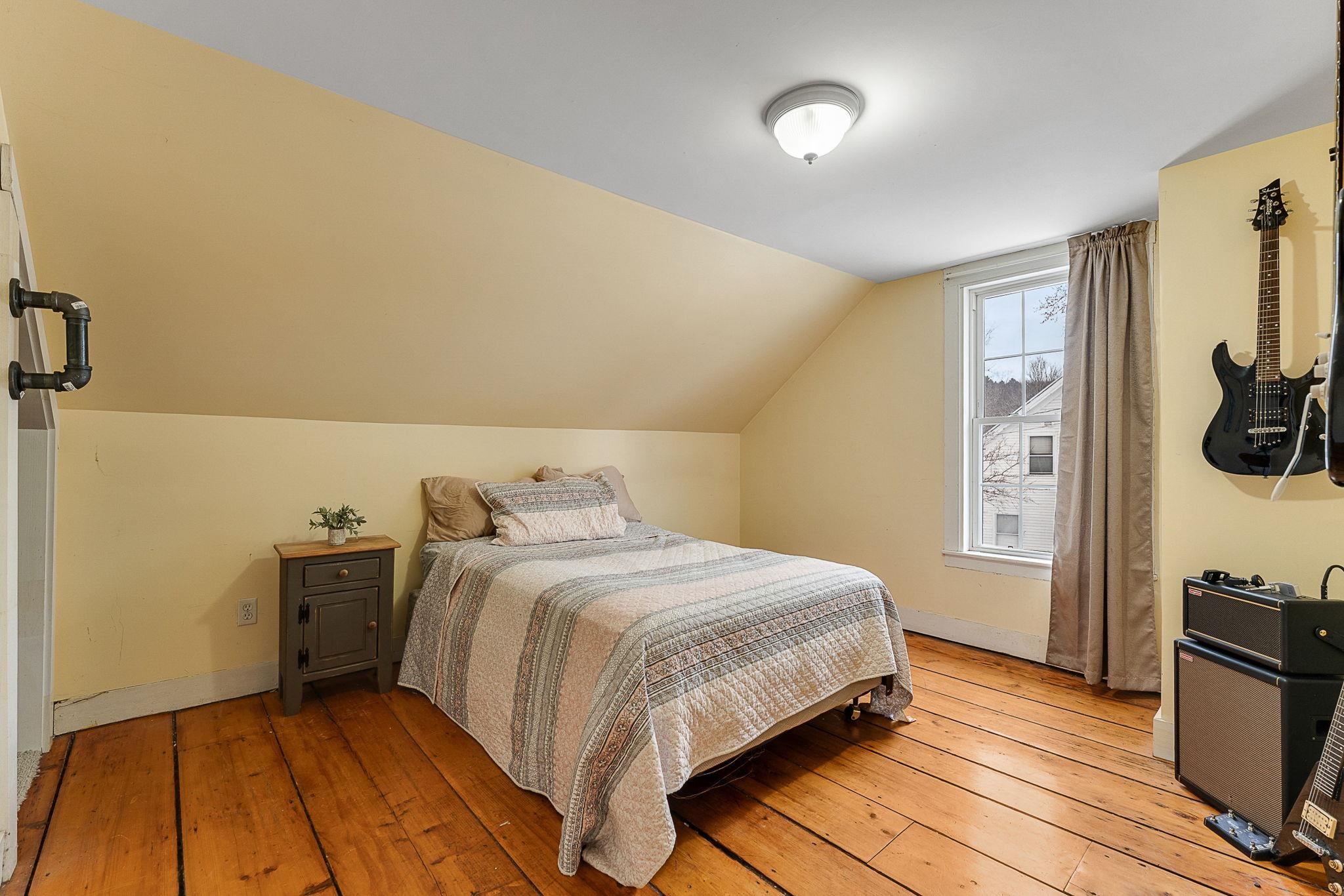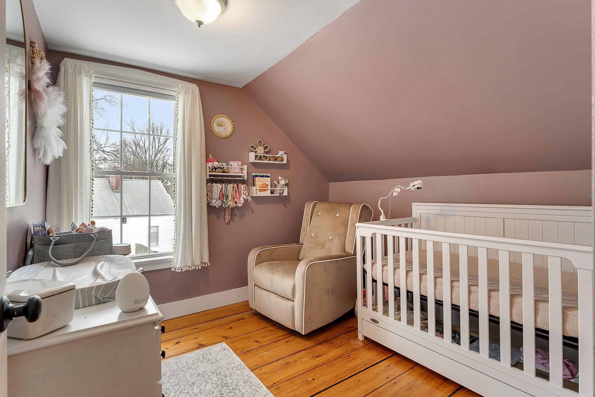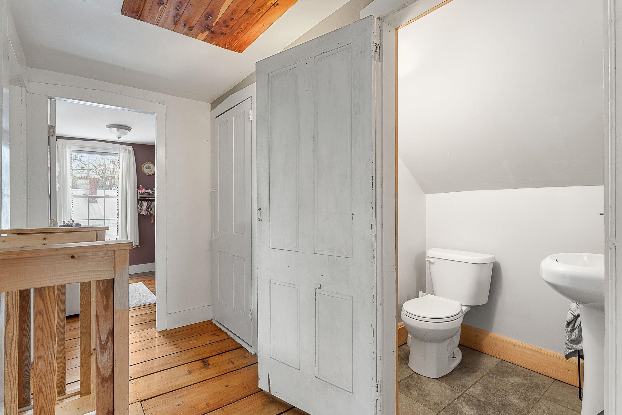 Welcome home! This cozy and classic cape with a huge fenced in yard is ready for its next chapter. Inside you'll find hardwood floors, a comfortable living room, a beautiful country kitchen, first floor laundry and full bath, and a super cozy dining nook with custom bar seating and a beautiful stone hearth. Upstairs are two bedrooms with original pine floors, and the 3rd primary bedroom is super spacious with a great closet to match. The current owners have made many thoughtful updates to the house, including: heat pump on the first floor for heating and cooling, adding a half-bath upstairs for the nighttime, paint, flooring, updated kitchen, updated downstairs bathroom, custom live edge bar, fencing the yard, shed, and more! This property has been well-maintained, convenient to amenities, and is completely move-in ready. Come check it out today!
