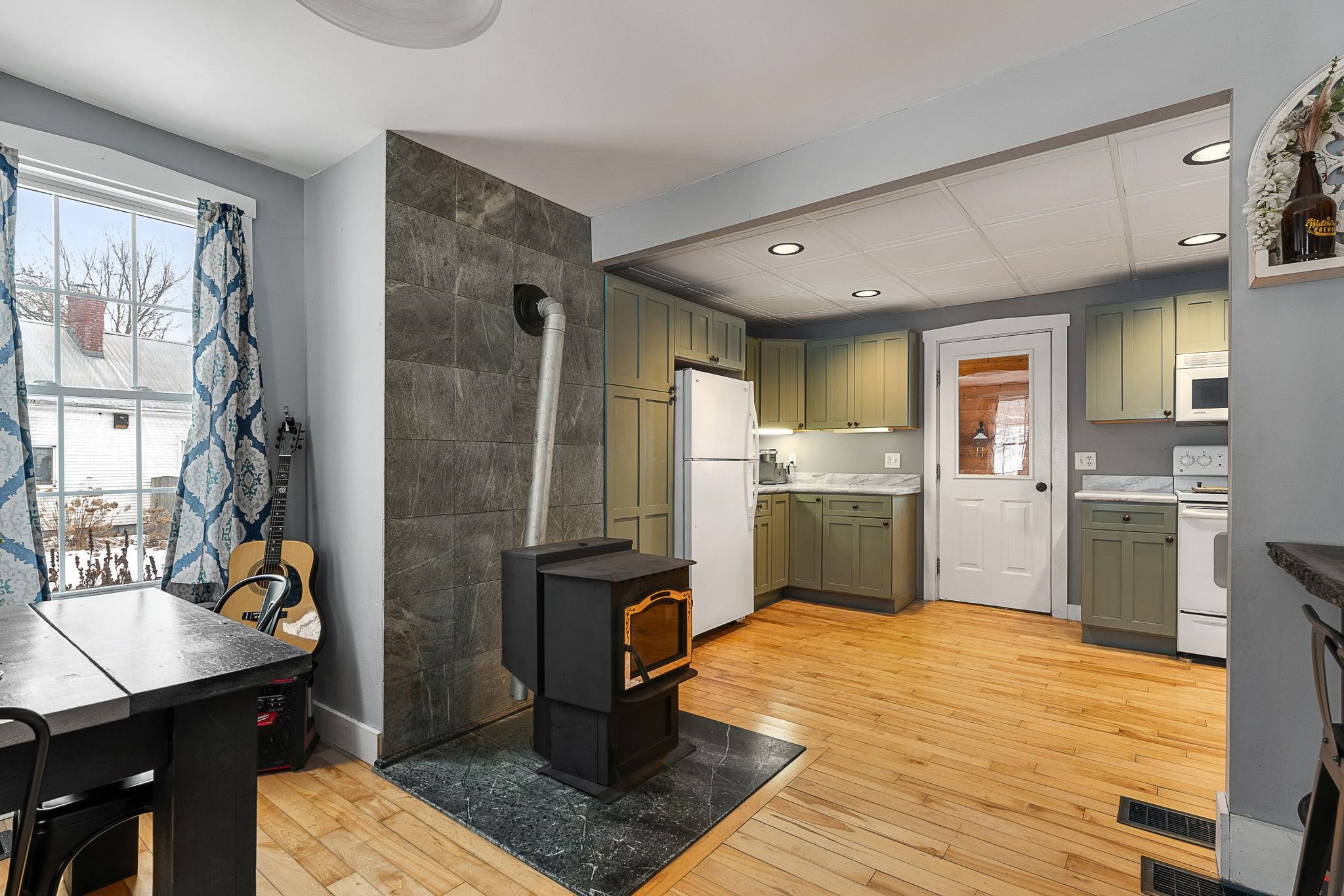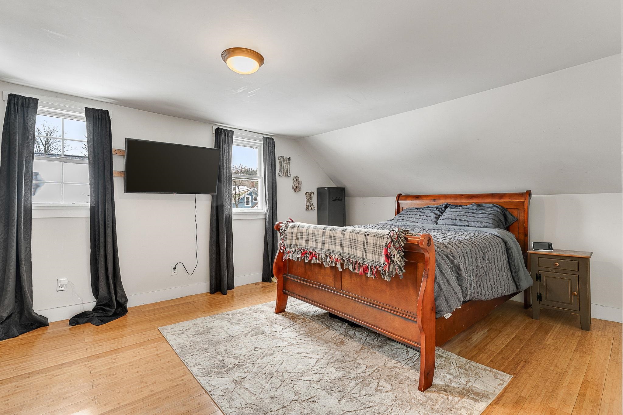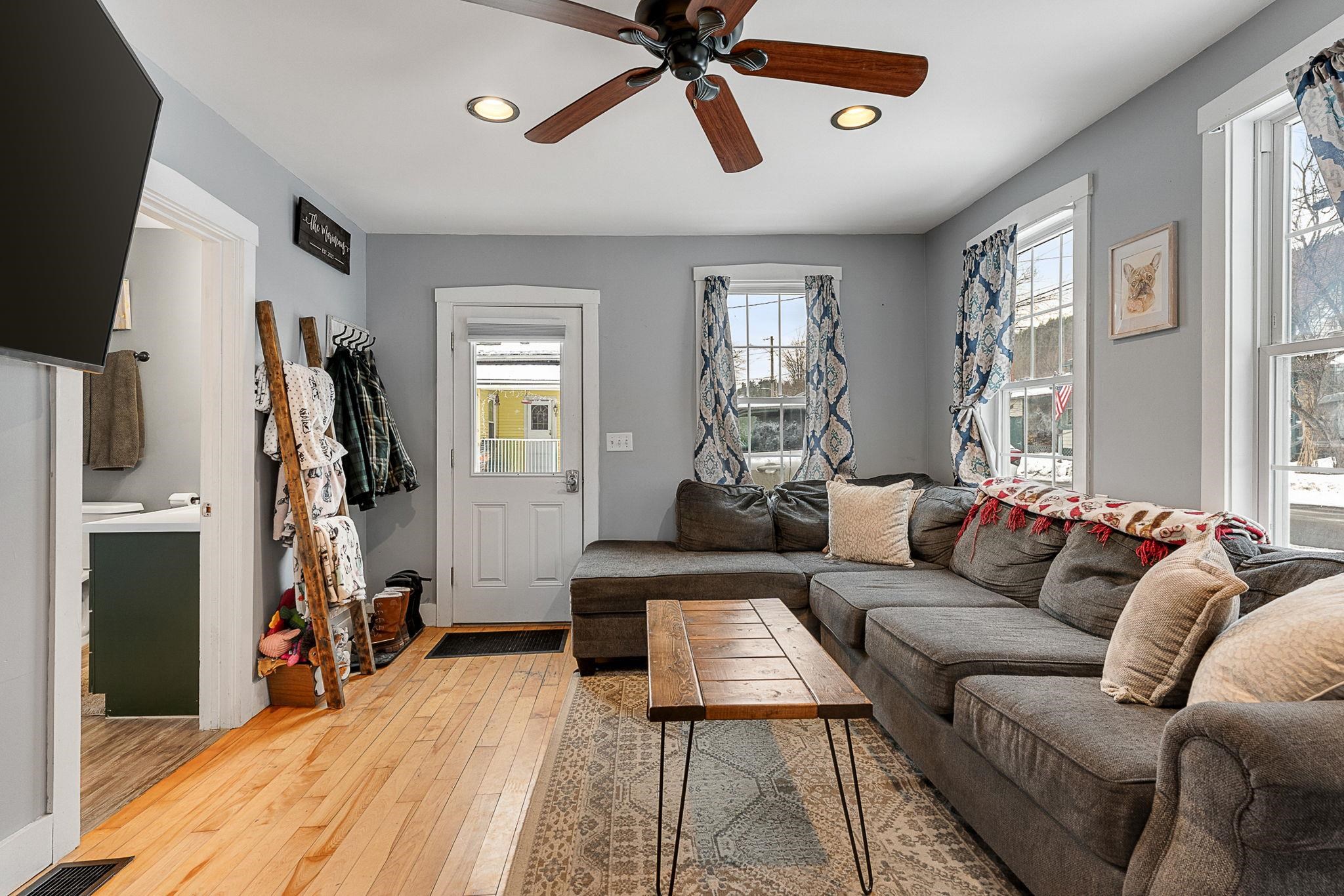 Welcome home! This cozy and classic cape with a huge fenced in yard is ready for its next chapter. Inside you'll find hardwood floors, a comfortable living room, a beautiful country kitchen, first floor laundry and full bath, and a super cozy dining nook with custom bar seating and a beautiful stone hearth. Upstairs are two bedrooms with original pine floors, and the 3rd primary bedroom is super spacious with a great closet to match. The current owners have made many thoughtful updates to the house, including: heat pump on the first floor for heating and cooling, adding a half-bath upstairs for the nighttime, paint, flooring, updated kitchen, updated downstairs bathroom, custom live edge bar, fencing the yard, shed, and more! This property has been well-maintained, convenient to amenities, and is completely move-in ready. Come check it out today!