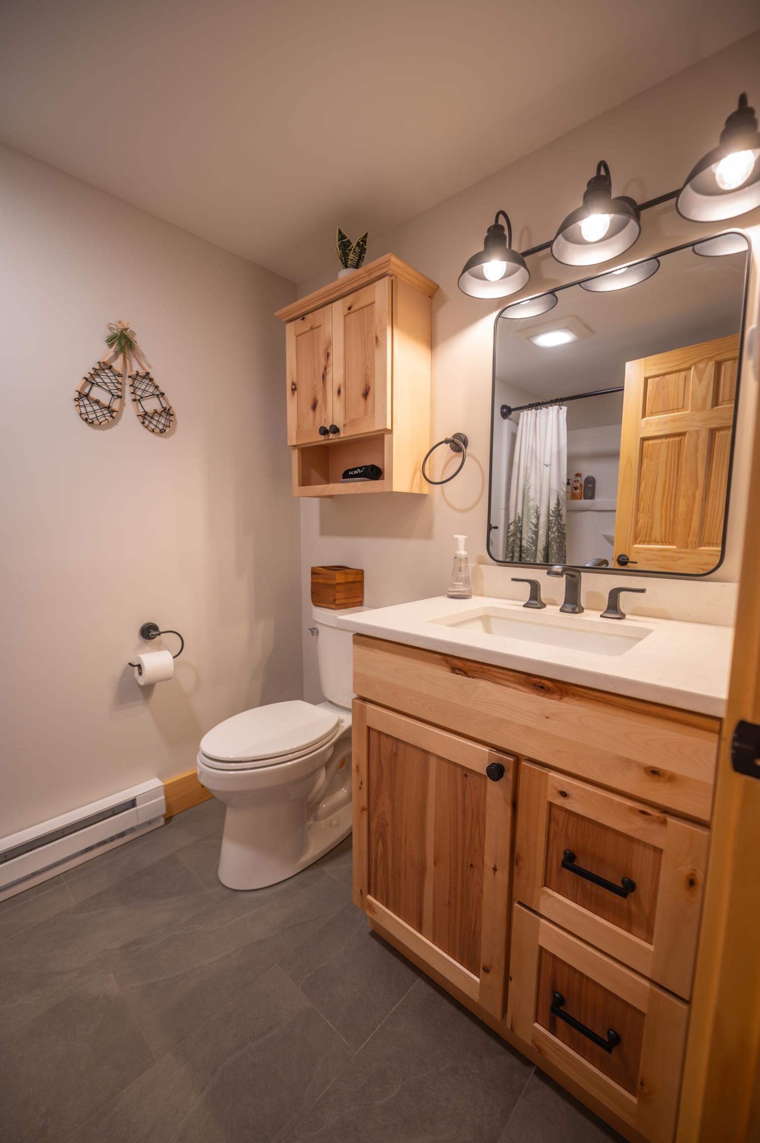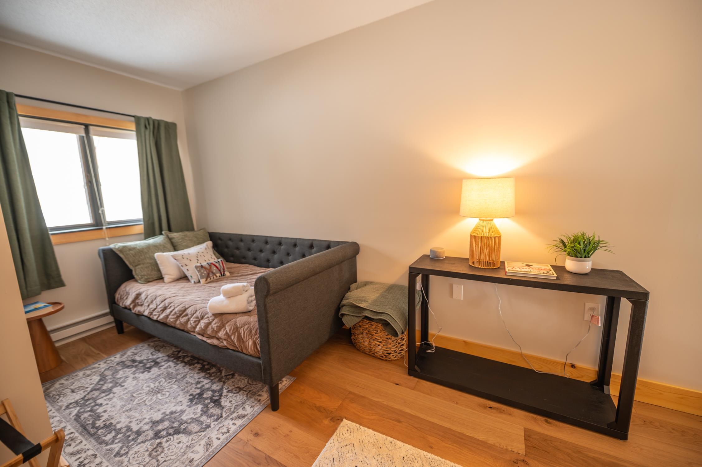 Stunning views and access to Mount Snow! This meticulously renovated and maintained Snowtree condo is located at the base of the Mount Snow ski resort and looks directly out at the slopes of the mountain, so that you can check the conditions from your window in the morning, and watch the fireworks from your living room at night. This open concept unit features tremendous natural light throughout thanks to Southern and Western exposures, a large vaulted living space with wood burning fireplace and brick hearth, kitchen with breakfast bar, new quartz counters, stainless appliances and wood cabinets, large dining area, new wood floors and stunning furnishings, a main floor full bath and laundry, primary suite upstairs with additional day bed and second full bath, tiled mudroom entry, great closet space throughout, and spacious rear deck overlooking the view. The unit also offers a club house with outdoor pool and indoor hot tub, building maintenance, snow removal, shuttle to and from the base area, and more. The gorgeous views can be enjoyed year round and the condo convenience affords plenty of downtime, not upkeep. Special assessment runs to 2036 reserve replenishment.