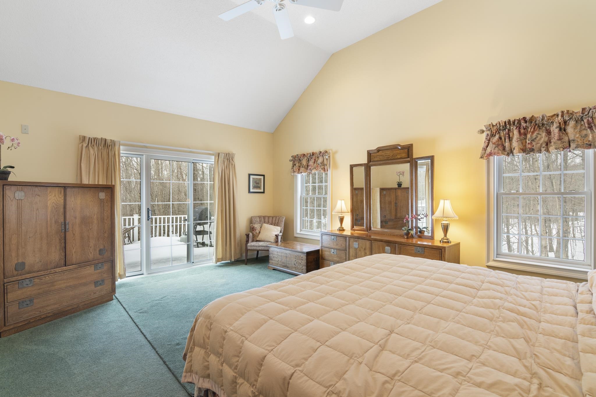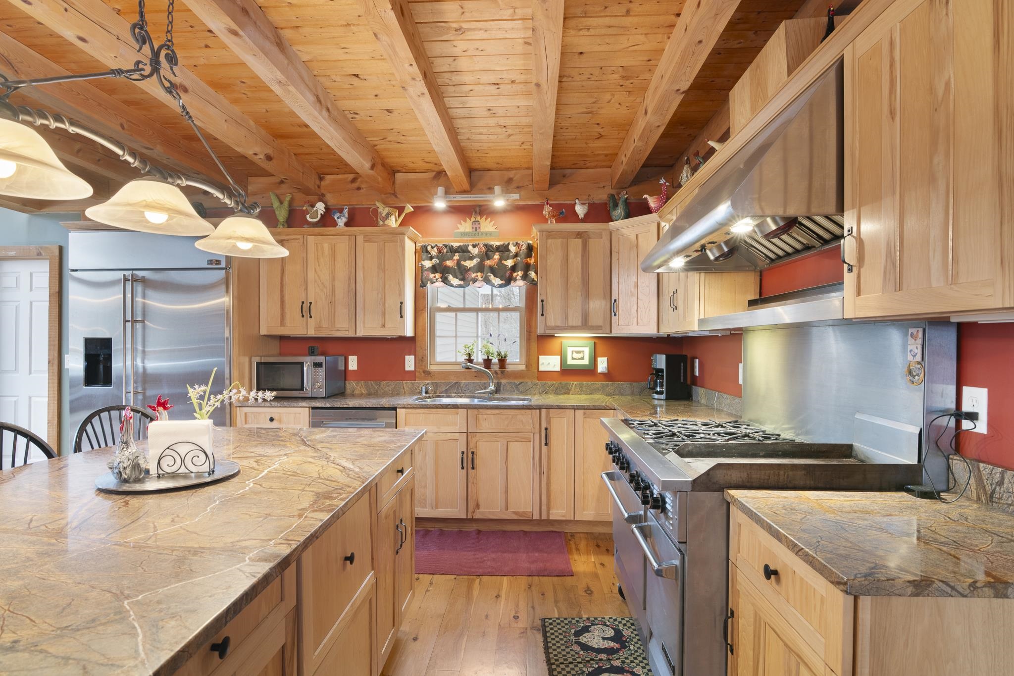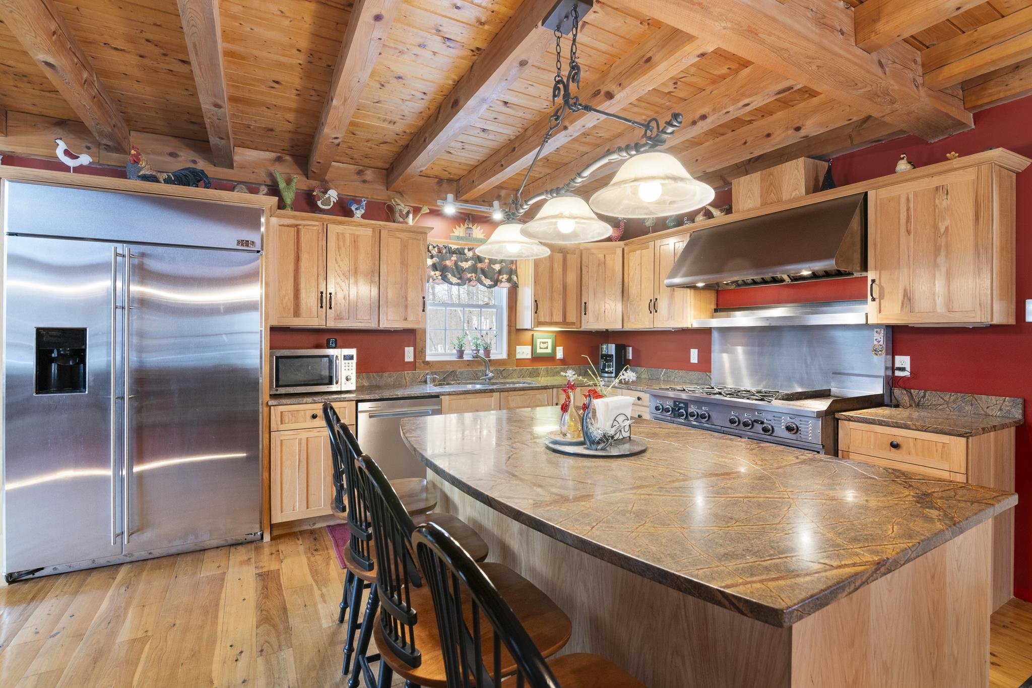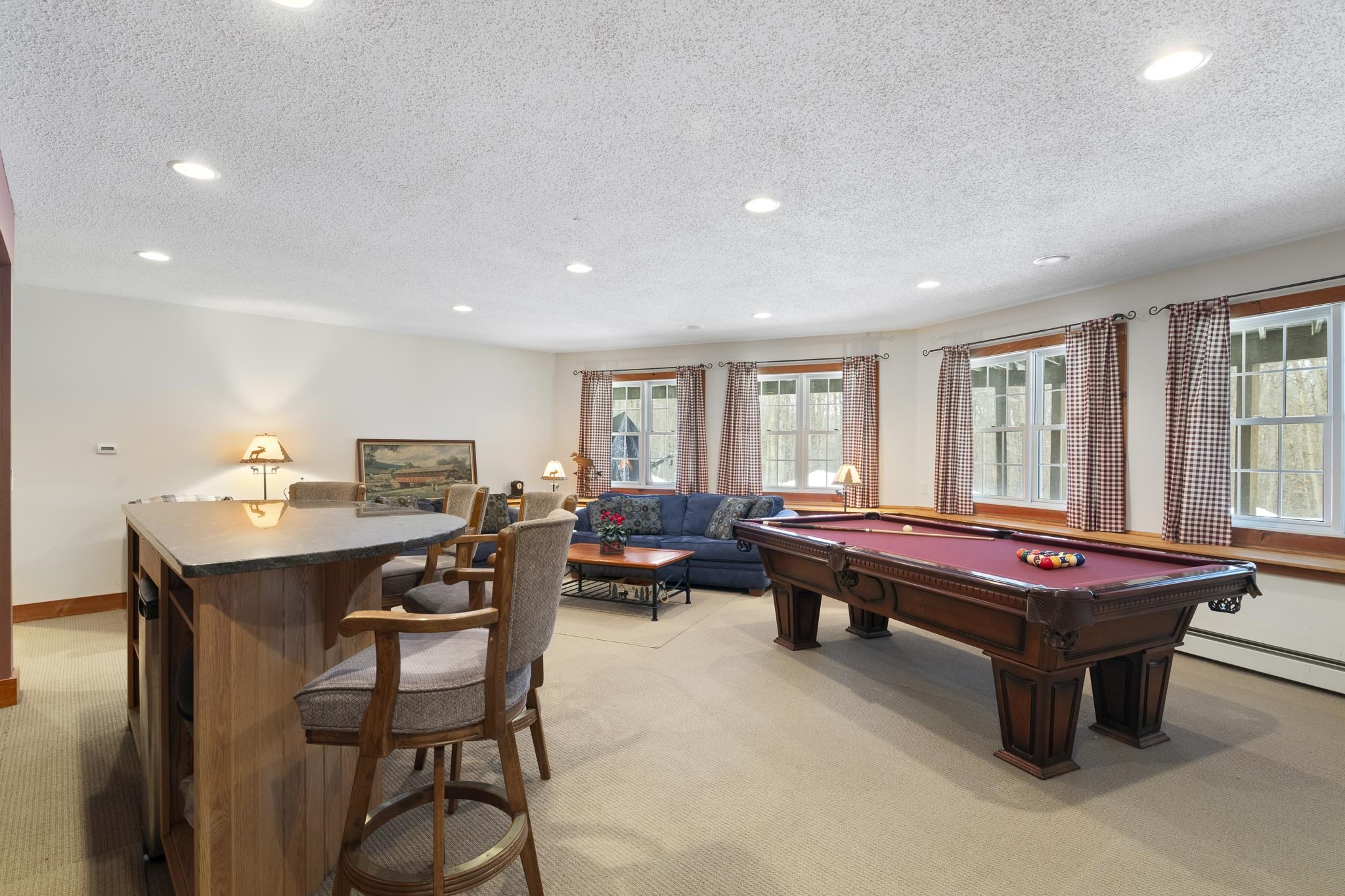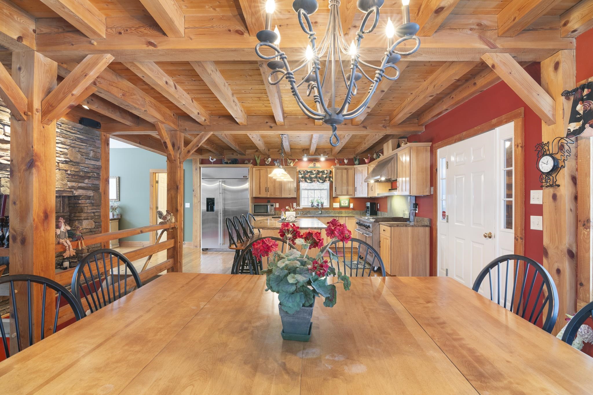 Tucked away on 6 private acres in Dover, Vermont, this beautifully crafted 4-bedroom, 4-bath home offers the perfect blend of rustic charm, comfort, and space for year-round enjoyment. A dramatic great room with soaring ceilings, exposed timber framing, a stone fireplace, and a wall of windows creates a warm and inviting gathering space filled with natural light and woodland views. The open-concept layout flows seamlessly into a well-appointed kitchen and dining area, ideal for entertaining family and friends after a day on the slopes or trails. Multiple levels of living space provide both privacy and flexibility, including a spacious lower-level game and media room complete with a bar area and pool table perfect for hosting or relaxing. Step outside to expansive decks overlooking the peaceful, wooded setting, offering plenty of room for outdoor dining, soaking in the hot tub, or simply enjoying the quiet Vermont landscape. A detached two-car garage provides great storage for vehicles and recreational gear. Ideally located just minutes to Mount Snow, snowmobile trails, hiking, and all the attractions of the Deerfield Valley, this property is a perfect Vermont retreat whether for a full-time residence, second home, or investment property.
