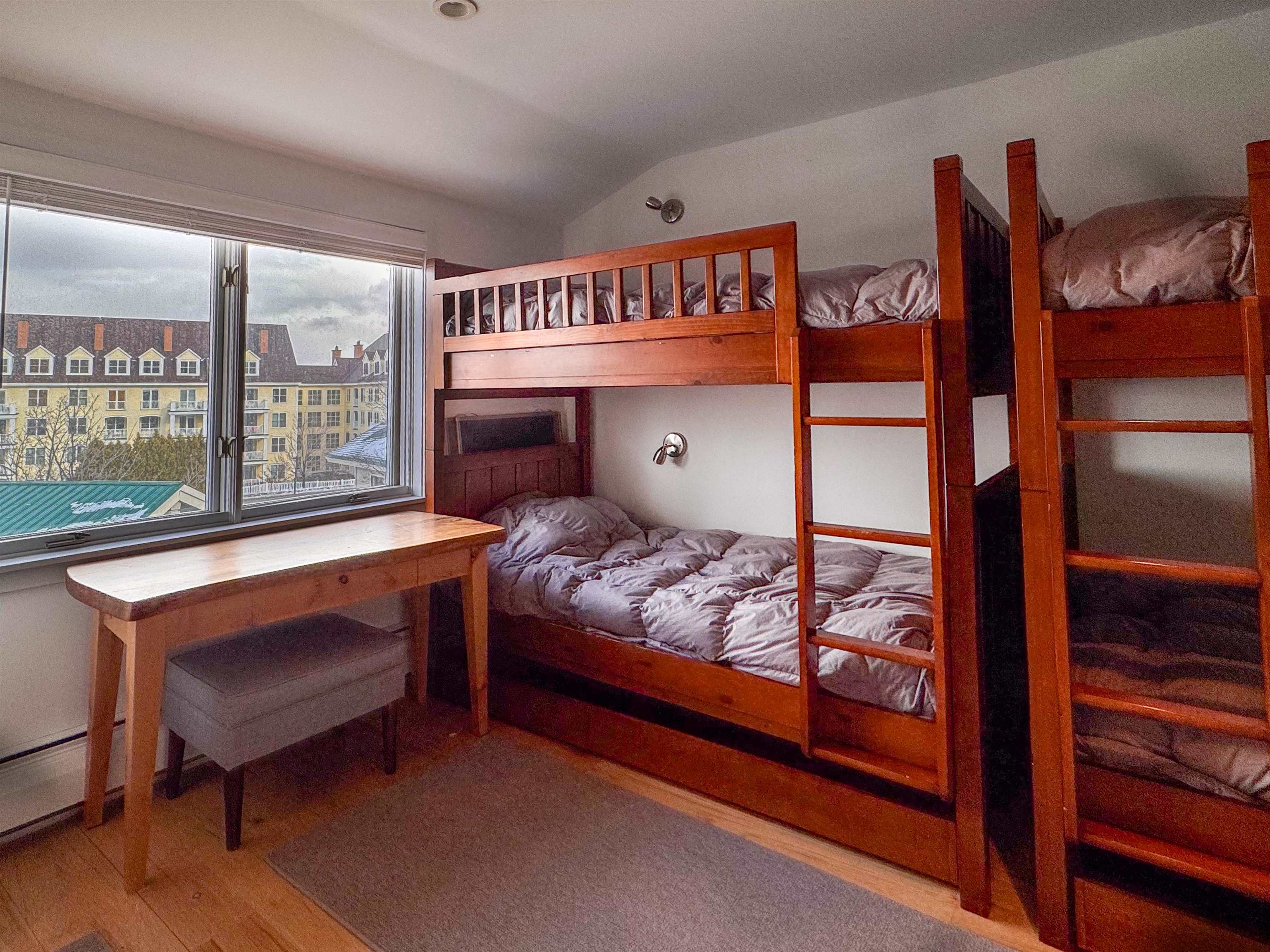 Enjoy true walk-to-slopes living in Stratton Village with this highly desirable 4-bedroom, 3-bath Village Square townhouse offering mountain views. Located just steps from the ski lifts, restaurants, shops, and year-round amenities, this home delivers the ultimate Stratton Mountain lifestyle where you can leave the car parked in your private parking garage and walk everywhere.The interior features a renovated kitchen with all new appliances, ideal for entertaining after a day on the slopes. Relax by the wood-burning fireplace in the great room or step out onto the deck to watch village life unfold below. The updated primary suite includes a private bath and its own balcony overlooking Stratton Village and the surrounding mountains, creating a peaceful retreat in every season. Designed for comfort and flexibility, the spacious layout easily accommodates family and guests. Owners enjoy optional access to the Stratton Sports Center, enhancing four-season recreation. Whether you are skiing, hiking, biking, dining, or enjoying apres-ski, this walk-to-lifts Stratton Village condo offers unmatched convenience, views, and mountain charm. A rare opportunity to own a premier Stratton Mountain Resort village property.