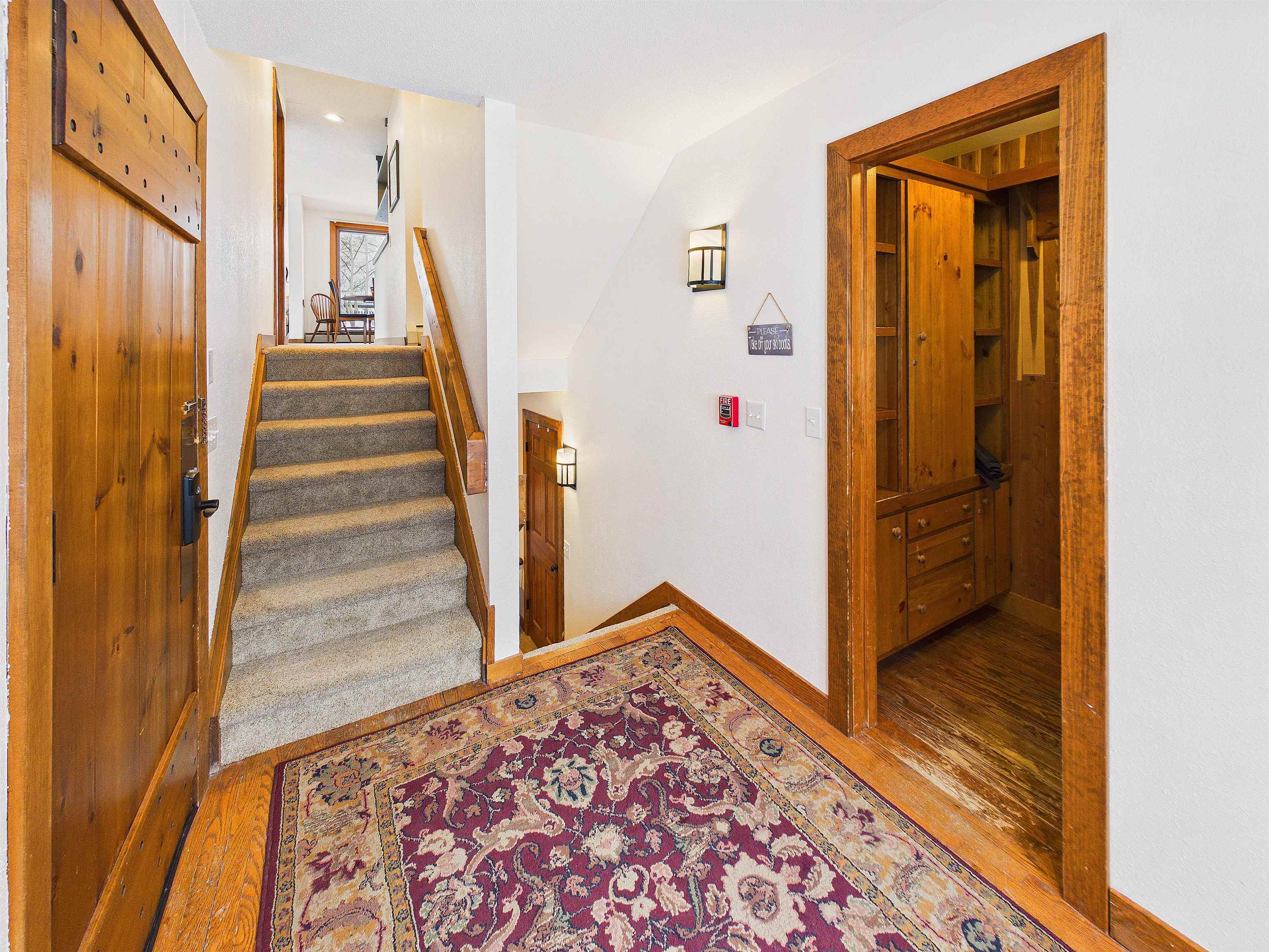 Welcome to this stunning ski-in/ski-out 4-bedroom, 3-bath condo offering sweeping views of Bear Mountain, Devil’s Fiddle, and Outer Limits — a perfect blend of mountain charm and modern comfort. Enter through an open mudroom with a large built-in closet for all your outdoor gear. Step up to the main level where a grand wood-burning fireplace anchors the living area, ideal for hangouts and warming up after a great day on the hill. The refreshed kitchen flows to a dining space and a private balcony. This level also includes a bedroom with an expansive built-in desk looking straight at the mountain, and a convenient 3/4 bath. The third level is a private primary suite with a cozy sitting area and a spacious 3/4 bathroom with double vanity, while the lower level features two additional bedrooms, a full bath with a sauna, stackable washer/dryer, and built-in cabinets for streamlined storage. With abundant natural light, thoughtful built-ins, move-in-ready finishes, and a strong rental history, this condo is an ideal opportunity for families, vacationers, or investors seeking a turnkey mountain retreat.