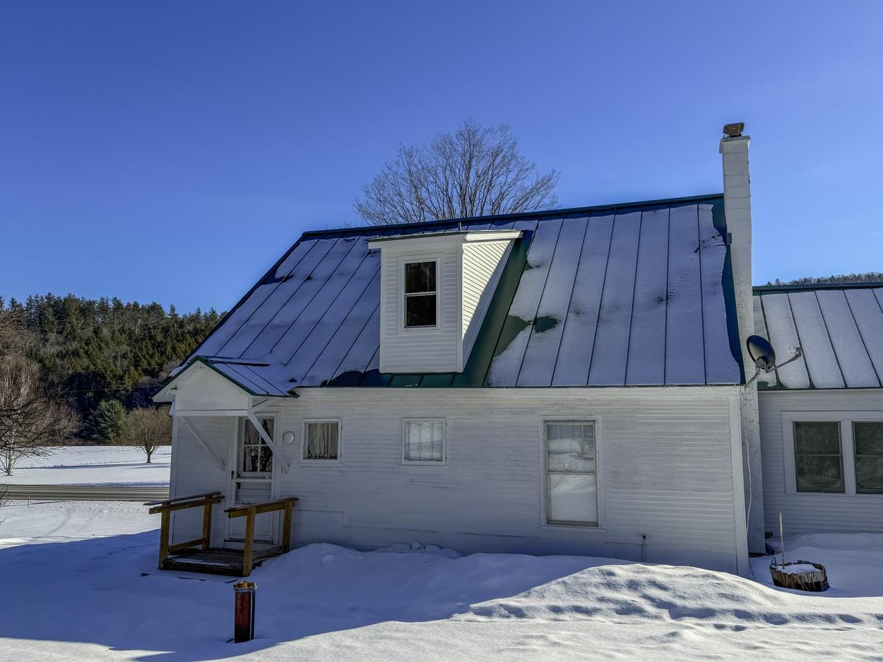 Stunning Hunger Mountain views out your kitchen window and from the 2nd floor primary bedroom, this circa 1850 cape is a romanitic dream. Attached small barn and former single bay garage to restore or use as a wonderful work shop. Above the flood plain yet close to the Mad River across 100B and just north of Moretown Village with over two and a half acres, a great location it is. Dramatic ledge outcroppings hidden in the upper woods could be a killer place to build a cabin or accessory dwelling. Fertile gardening soil and a 10 x 10 or so windowed shed for the hobby farmer. Jumbo laundry/mudroom, attractive 2015 Vermont green standing seam metal roof, 2022 furnace+water heater, 2024 sump pump and, get this, a brand new 3BR $31k in ground septic system in 2025. Yes! The heavy lifting done, just the fun stuff for your design; take this old Vermont farmhouse to the next level with your special sauce. Exterior scraped and largely primed before winter dropped. Surrounded on three sides by 125+ acres. Hop, skip and a jump to Sugarbush, Stowe, Montpelier and well under 50 minutes to the Queen City. Moretown, one of the Mad River Valley's best kept secrets can be yours. More is right... Please note the tax map northern boundary should be farther north of the driveway.