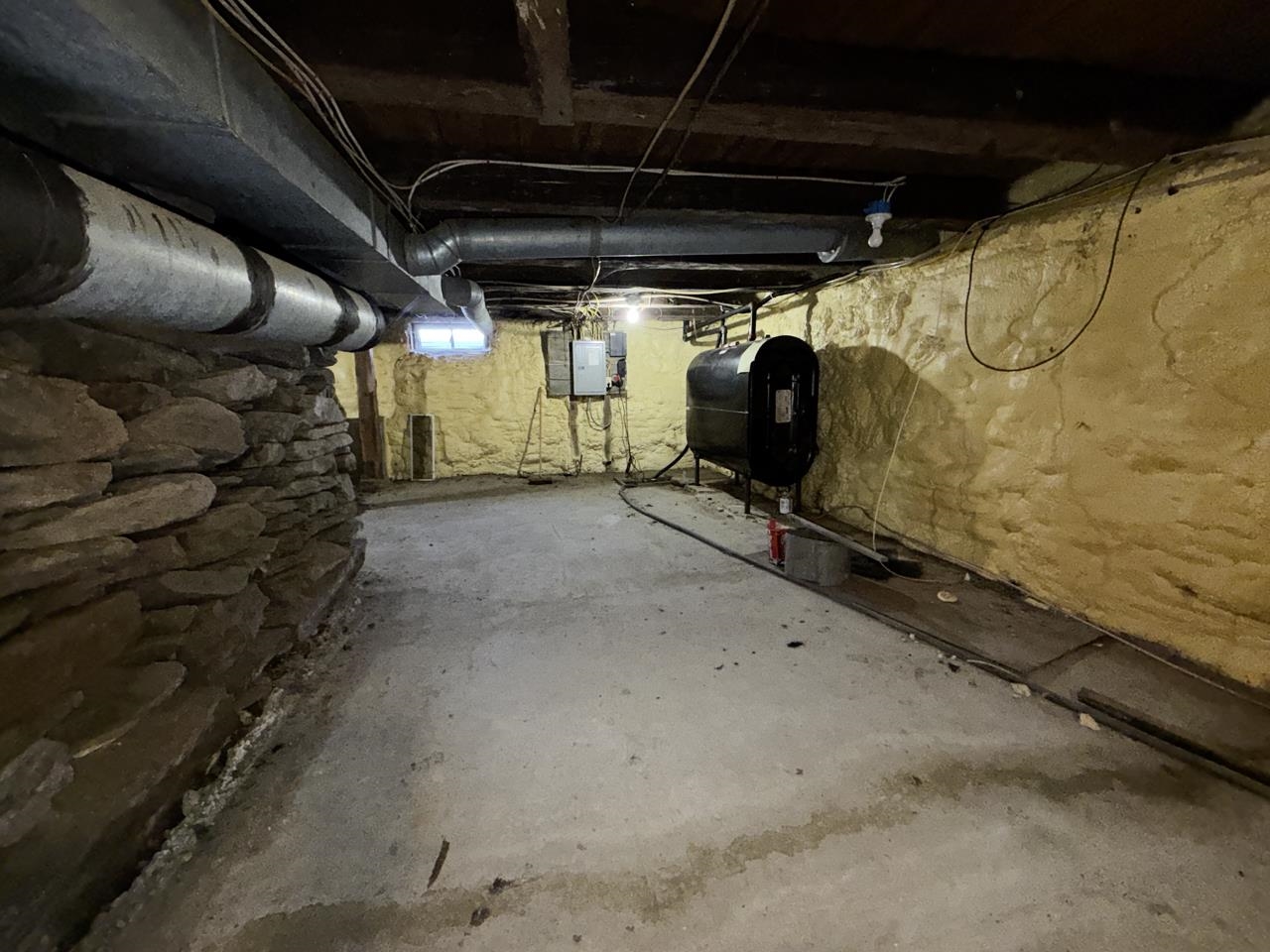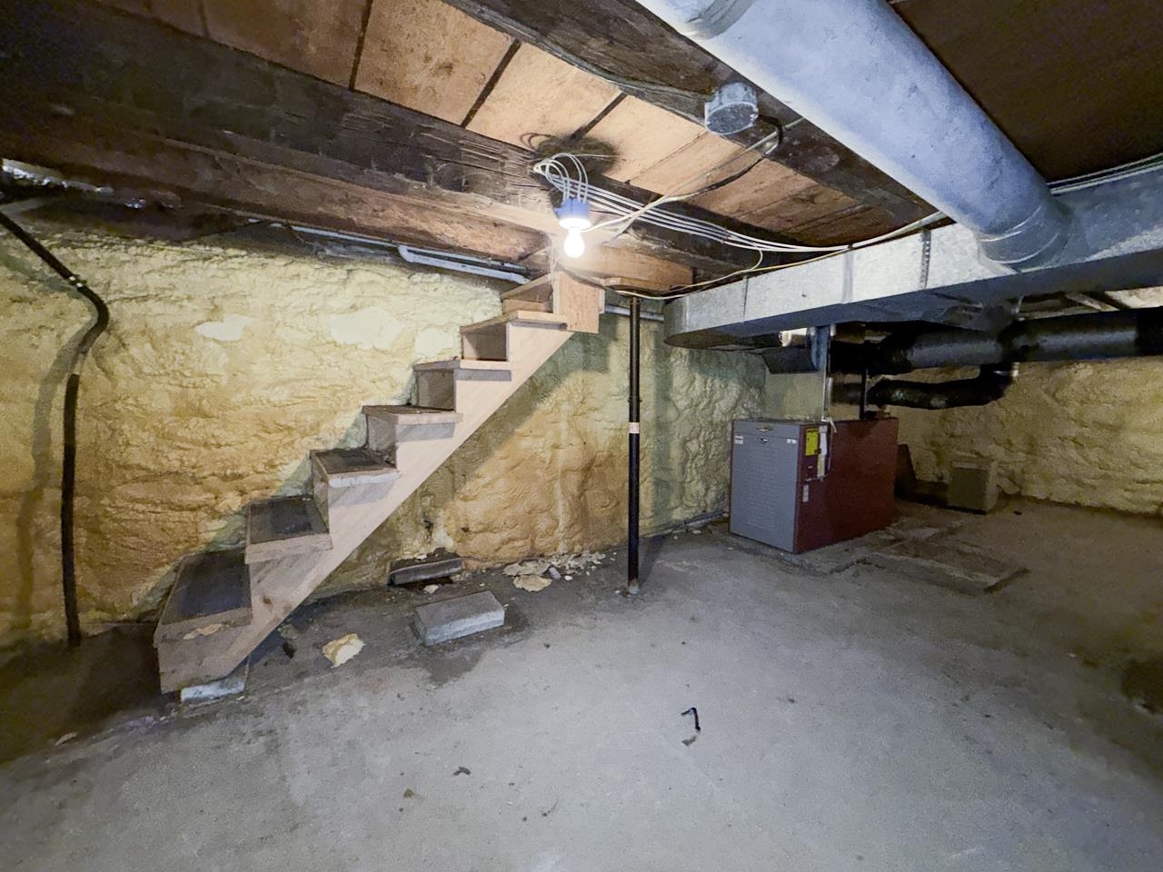 - Concrete, Full, Insulated, Storage Space, Sump Pump, Unfinished, Basement Stairs