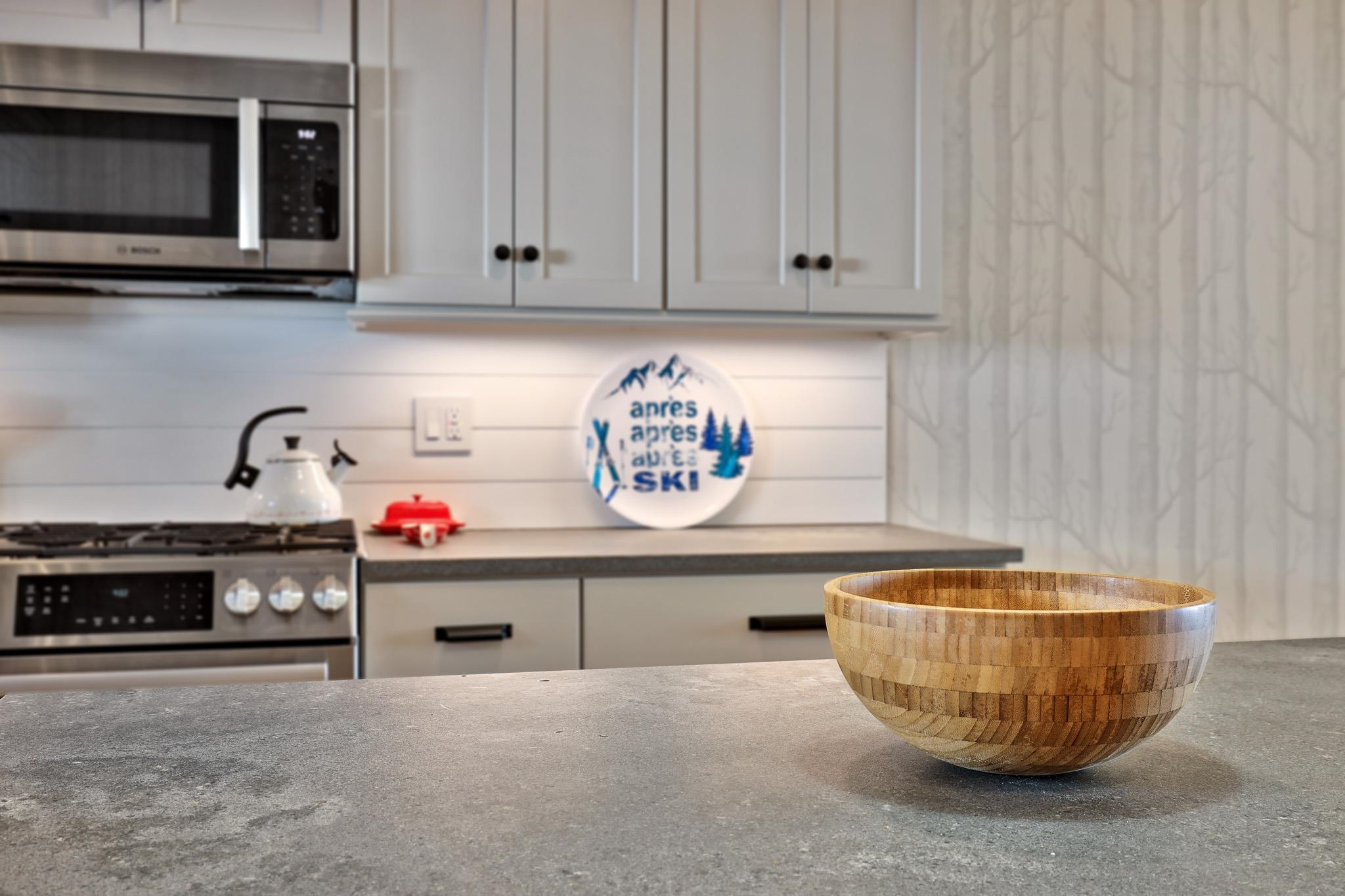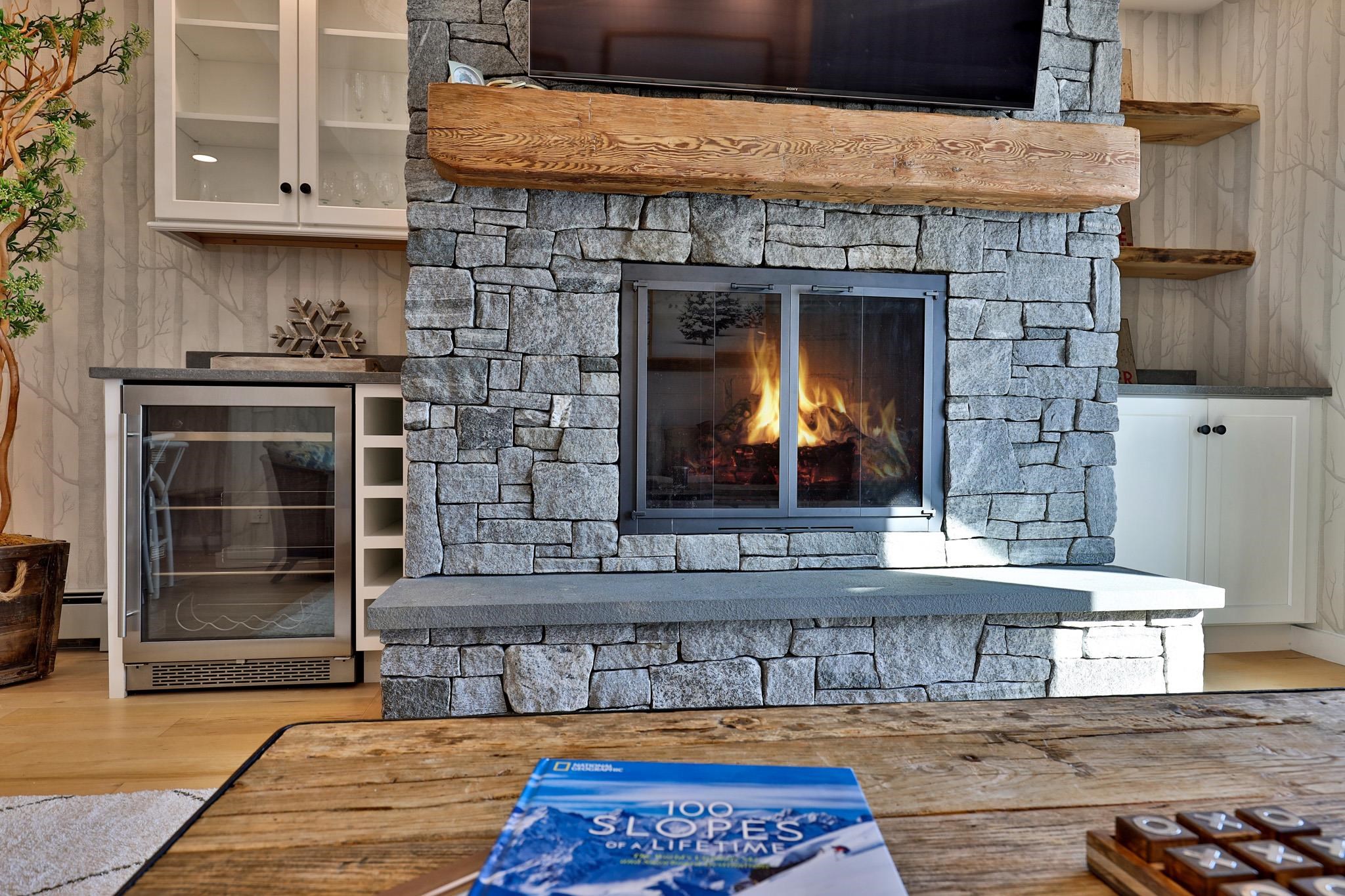 - Cathedral Ceiling, Ceiling Fan, Dining Area, Gas Fireplace, Fireplace Screens/Equip, Wood Fireplace, 2 Fireplaces, Furnished, Hot Tub, Kitchen Island, Kitchen/Dining, Primary BR w/ BA, Natural Light, Walk-in Closet, Basement Laundry