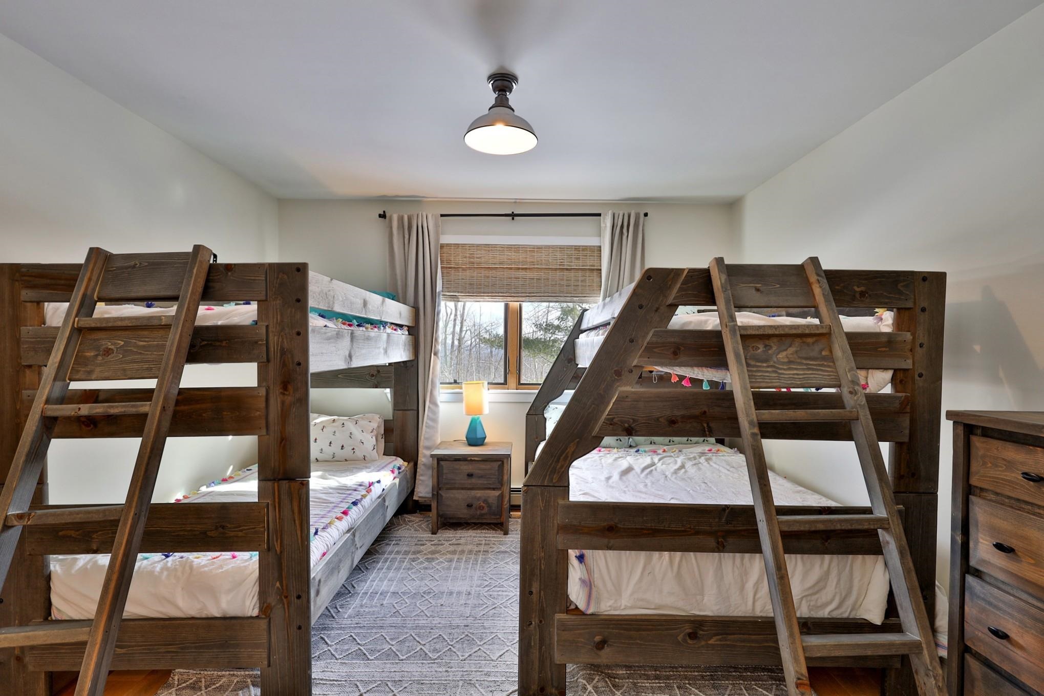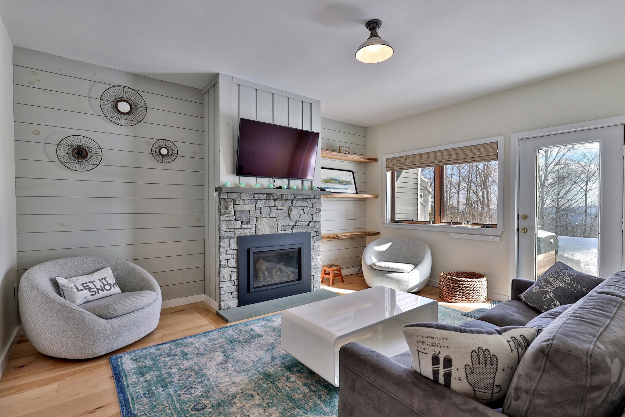 This Okemo Trailside condominium offers a very spacious, newly renovated four-bedroom three bath townhouse with ample room for family and guests. Recent exterior improvements, including new siding and decks, provide years of low-maintenance living. Spanning three levels, the layout includes three ensuite bedrooms plus an additional bedroom, offering comfort and privacy for everyone. The main living level features a welcoming living room with a stone floor to ceiling fireplace, while the lower-level den adds extra gathering space with a cozy gas fireplace. After a day on the slopes, relax in the hot tub under the stars. Enjoy easy access to the Sachem Trail and plenty of guest parking. Offered fully furnished, this turn-key property allows you to simply bring your clothes and skis and start enjoying the Okemo lifestyle. More pictures and video coming soon.