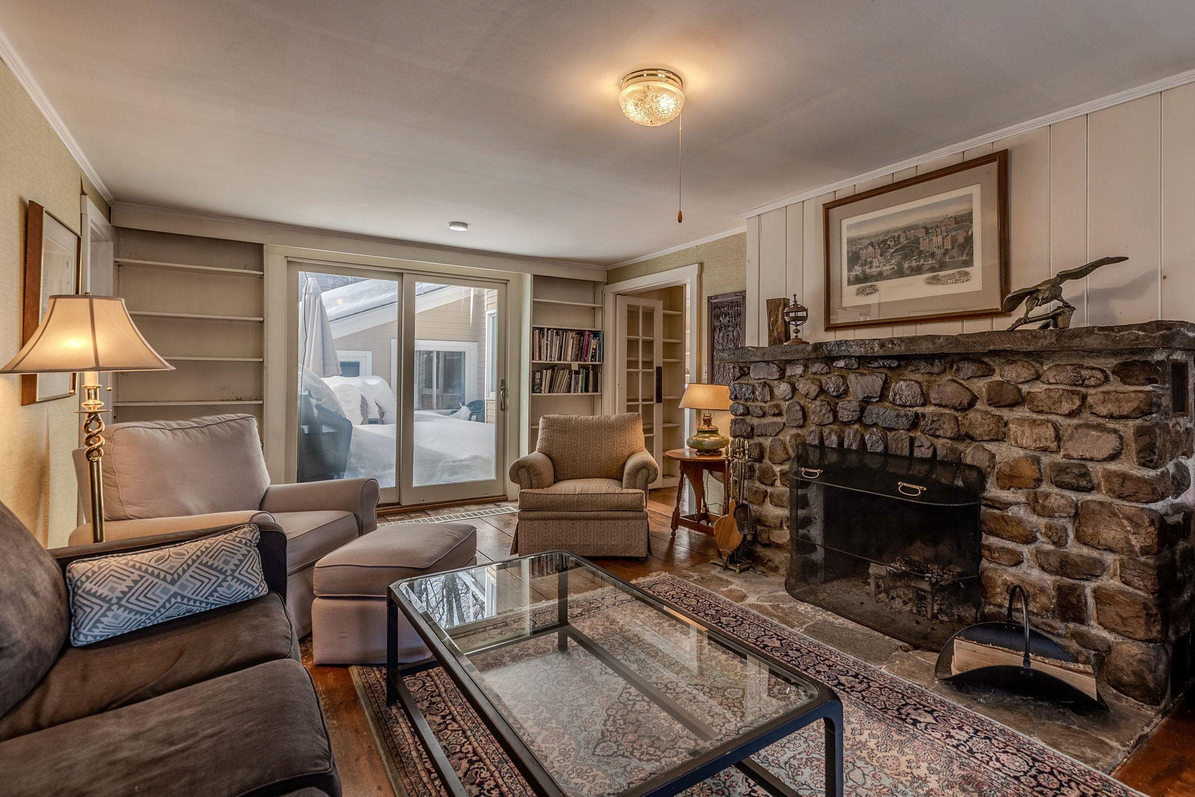 Classic Vermont farmhouse set on over 18 private acres with Bromley Mountain views, offering timeless character, privacy, and mountain views. This four-bedroom, two-bath home features a striking stone fireplace anchoring the main living space, along with a dedicated library and office—ideal for reading, work, or creative pursuits. Outdoor living shines with a spacious patio and stone firepit, perfect for s’mores, gatherings, and crisp Vermont evenings. The property includes a two-car attached garage and two detached barns, offering flexibility for storage, hobbies, or agricultural use. Rolling open land and wooded acreage create a peaceful, pastoral setting with room to explore. Ideally located just 3 miles from Bromley Mountain and 5 miles to the Stratton Access Road, this farmhouse delivers convenient access to skiing, hiking, and four-season recreation while maintaining the charm and serenity of a true Vermont retreat. The home also features a hot tub, generator, and is being sold furnished for a turnkey experience.