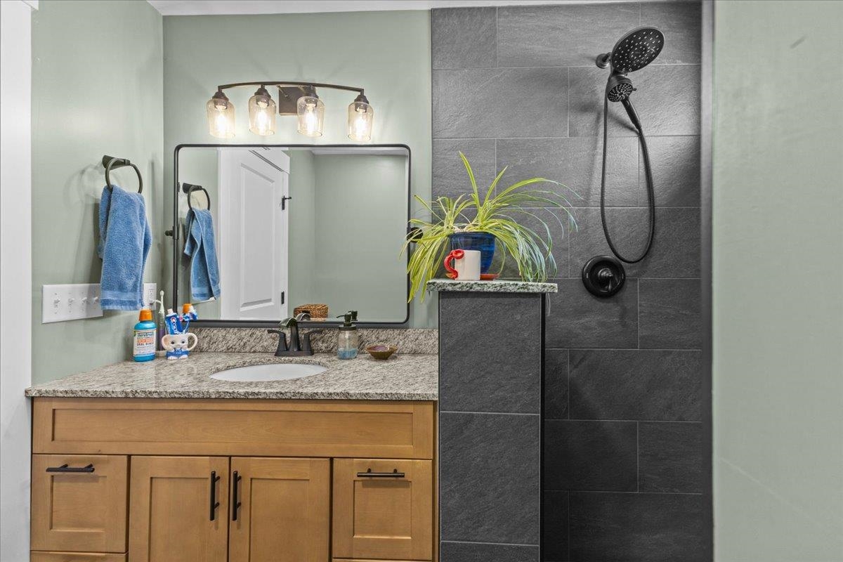 Charming cape style home with distinctive stone accents and a welcoming front porch, ideally located in Colchester. This 3 bedroom, 2 bath home offers thoughtful updates and a comfortable, functional layout. The main level features a primary suite with a spa-like bathroom, complete with a large walk-in tiled shower. Pergo-style laminate flooring runs throughout the first floor, enhancing the bright living area with a sunny bay window and cozy gas stove. The dining area opens to a newly renovated kitchen, perfect for entertaining, with quartz countertops, tile backsplash, and updated lighting. Upstairs, you’ll find two spacious bedrooms and a full bathroom. The partially finished basement provides fantastic bonus space for a home office, gym, or recreation room, along with unfinished storage space. Outside, enjoy a partially fenced, flat backyard and a detached oversized garage ideal for tools, toys, hobbies, and extra storage. Located just minutes from Airport Park, the Island Line Trail, Thayer Beach, and the Colchester Causeway, this home offers easy access to some of the area’s best outdoor recreation.