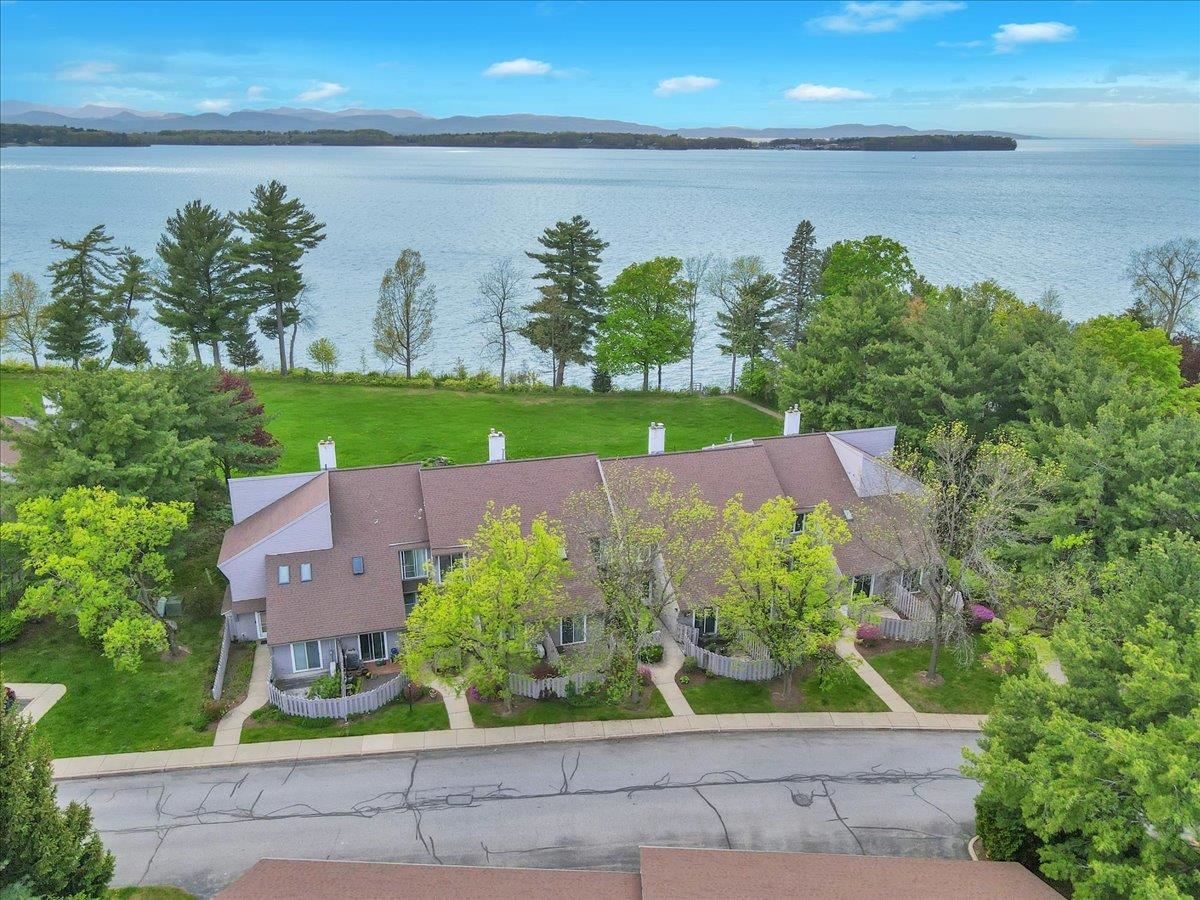 Perched above Shelburne Bay with west-facing views of Lake Champlain, this refined lakeside residence offers an elevated Vermont lifestyle where sunsets become part of the daily rhythm. Located in South Burlington, the home benefits from a well-established community known for its thoughtful planning, strong local institutions, and enduring appeal—just minutes from Burlington International Airport, downtown Burlington, University of Vermont Medical Center, and area colleges including the University of Vermont. This is a strategic “sweet spot” for skiers, water sports, golf, and day trips, and benefits from being one of the region’s few direct lakefront settings supporting long-term investment value. The Landings is a 17-acre condominium estate featuring over 1, 000 feet of shoreline, walking paths, a pool, tennis courts, EV charging stations, a community garden, and a 60-foot dock. The association is professionally managed with a seasoned board, and both pets and annual rentals are permitted. The property includes a two-car garage, an additional exterior parking space, and a private mooring location (buyer may install). This well-positioned unit enjoys privacy and sound separation, while being centered on the lake with sweeping water views that pour through living room and extend gracefully into the dining area and kitchen. The modern kitchen offers granite countertops, streamlined cabinetry, and all-new appliances (2023). A first-floor office opens to a private patio, while upstairs the primary suite captures lake views, an updated en-suite bath, and a private lakeside balcony. A rare opportunity to enjoy refined lakeside living in one of Vermont’s most enduring waterfront settings.