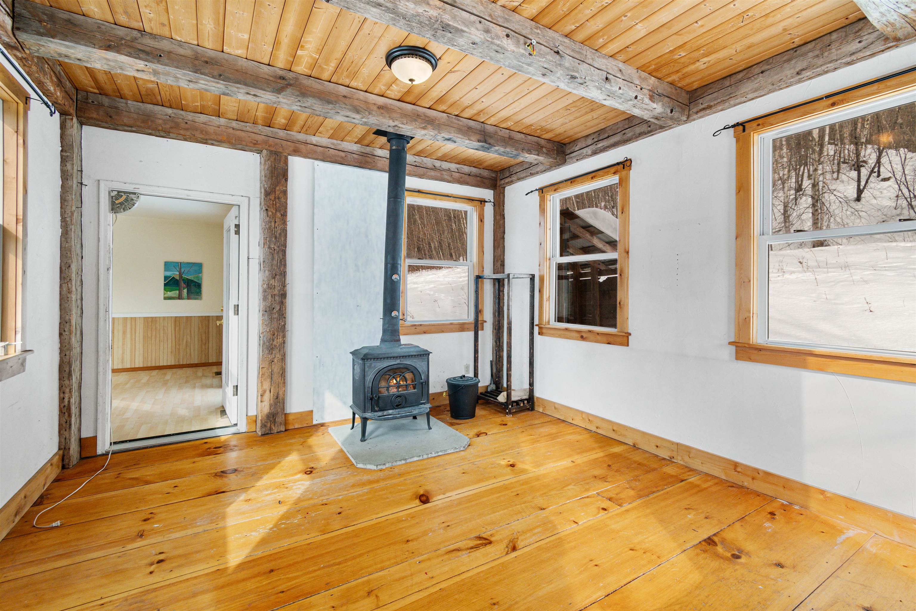 Tucked into a peaceful pocket of Johnson, this home invites you to slow down and settle into a setting shaped by trees, fresh air, and a quiet sense of privacy. Arrive to a wooded backdrop and step inside to a bright interior that feels welcoming and calm, even on overcast days. The heart of the home centers on an open living area that connects naturally with the dining and kitchen spaces. The layout feels comfortable and intuitive, creating a place that works just as well for everyday living as it does for relaxed gatherings. Natural light carries through the main level, reinforcing a warm and easygoing atmosphere. A four-season room anchored by a woodstove offers a cozy retreat that can be enjoyed year-round. This space invites slow mornings, quiet evenings, and time spent taking in the surrounding landscape as the seasons change. Electric hookups in place for a hot tub offer another way to enjoy the setting in every season. The home is arranged to provide flexibility, including a lower-level bedroom that can easily serve as additional living space, a home office, workout area, or creative studio depending on individual needs. This adaptability allows the home to grow and change with its next owner. Outside, the acreage offers room to explore and unwind, with wooded surroundings seasonal mountain views that bring a sense of connection to nature. Underground utilities help maintain a clean, uncluttered feel, allowing the landscape to remain the focal point. The location is convenient to nearby village and downtown centers including Cambridge, Jeffersonville, and Hyde Park, along with close access to four-season recreation such as Smugglers' Notch and the Long Trail trailhead. Thoughtful care and ongoing maintenance throughout the home create a sense of confidence and comfort, allowing the next owner to focus on enjoying the lifestyle and setting that make Johnson such a special place to call home. Schedule a showing to experience it in person.