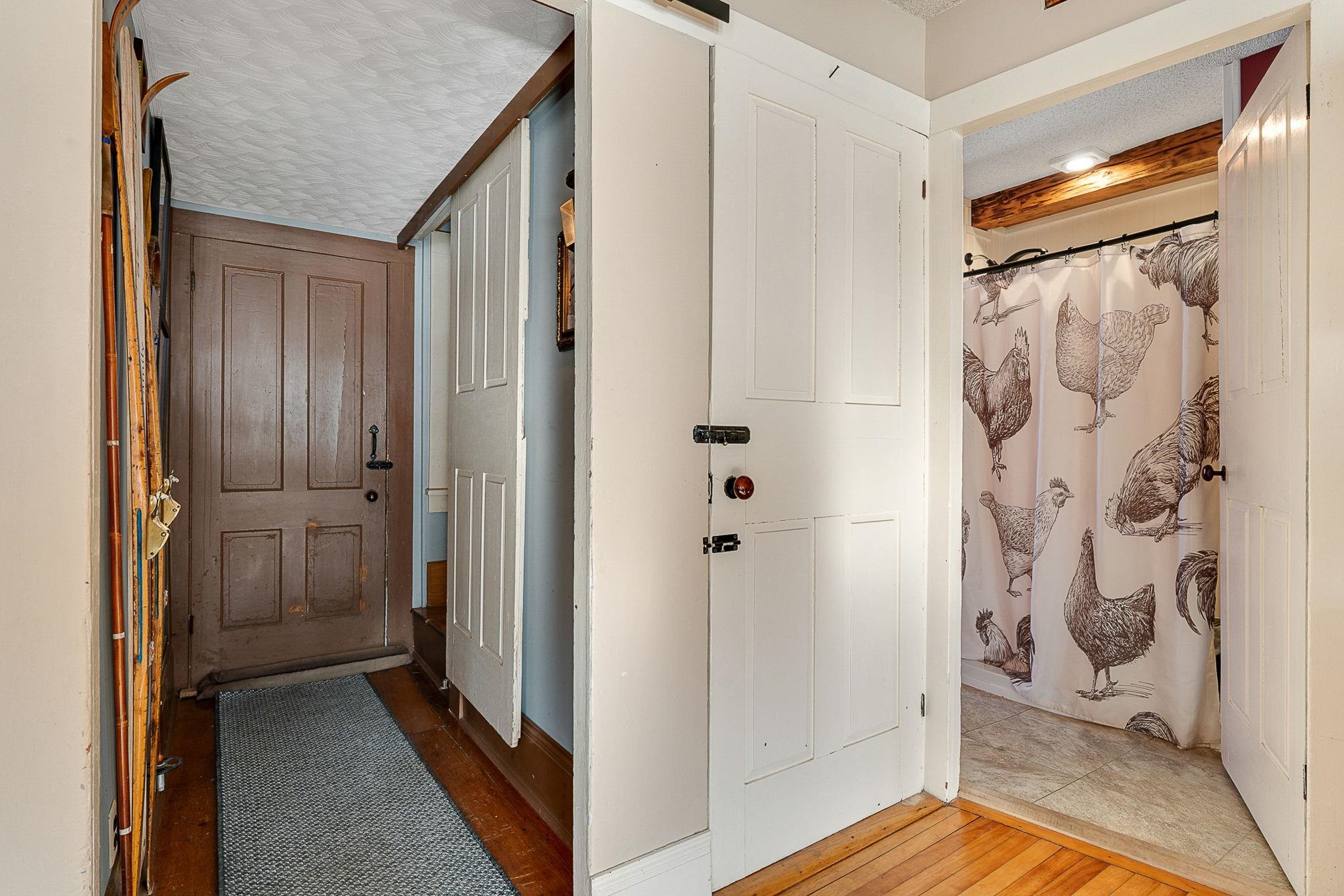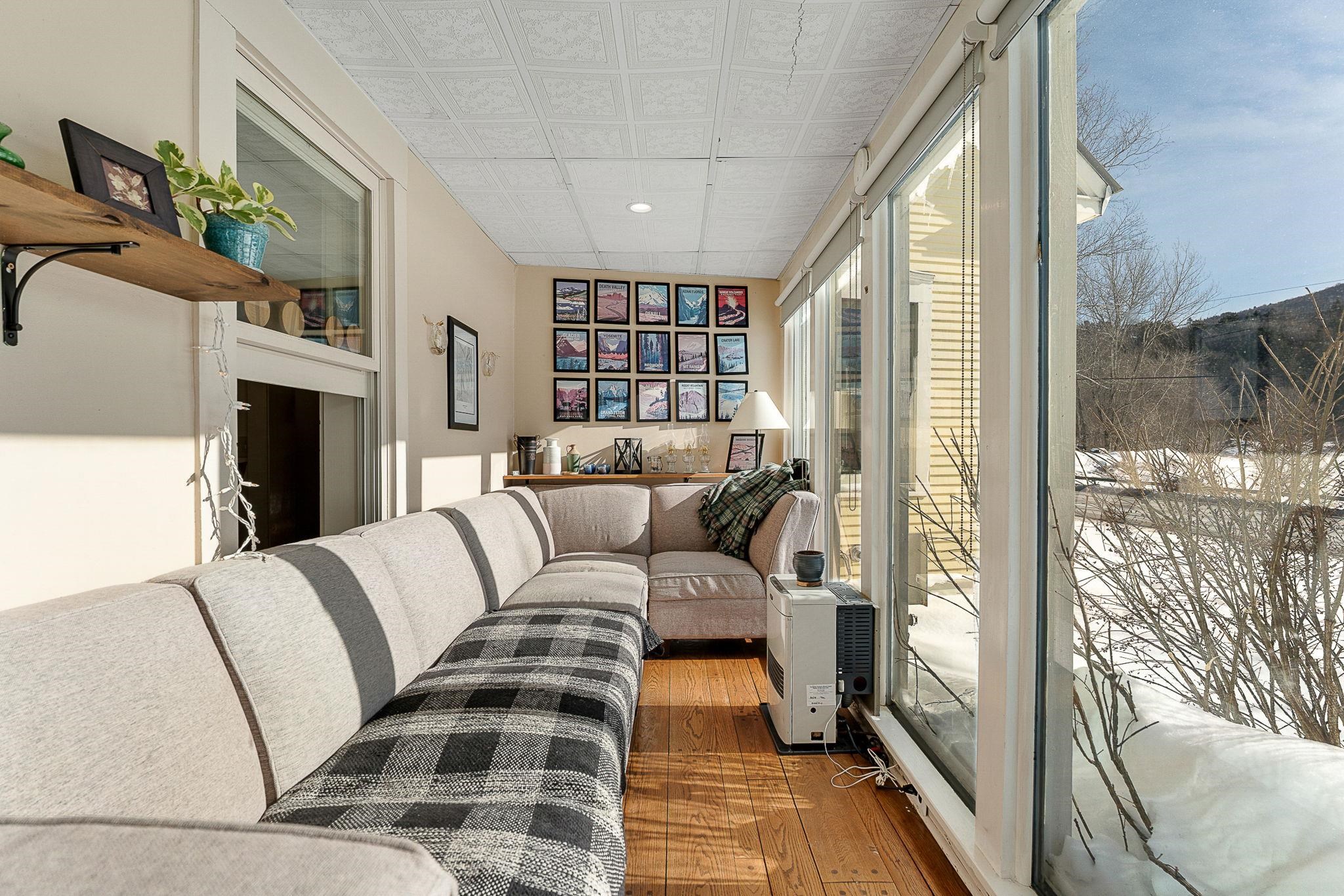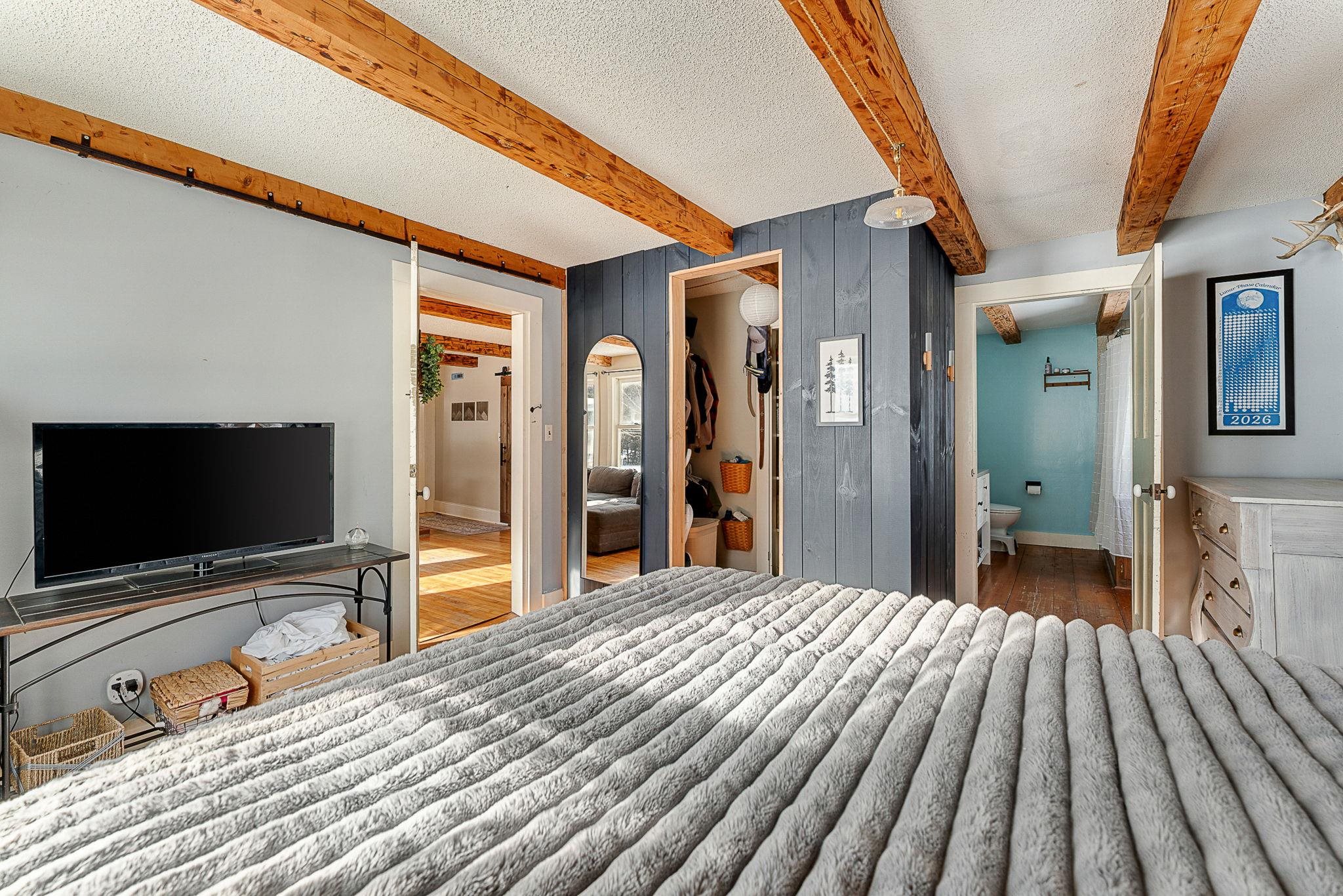 Timeless charm meets country comfort in this classic Cape-style farmhouse set on just under 4.5 acres with southern exposure and sweeping mountain views. This home features wide-plank wood floors, exposed beams, and sun-filled living spaces throughout. The main level offers exceptional flexibility with a first-floor primary bedroom, home office, dining room, sunroom, and a cozy living room anchored by a wood stove. The updated kitchen includes open shelving and generous workspace, while the attached garage leads to a convenient mudroom with laundry and ¾ bath. Owners have done a lot of work to the electrical and plumbing since they have owned it, making it truly move it ready. Upstairs are three additional rooms, a half bath, and bonus space for storage or future expansion. Outside, enjoy a true Vermont retreat with mature trees surrounding the property, established gardens, a chicken coop, fire pit, and a new swim-up pool with deck. Located near the Lamoille River and Rail Trail, with easy access to skiing, hiking, and the villages of Jeffersonville and Johnson—plus a reasonable commute to Burlington. Sellers are motivated—don’t miss this special property.