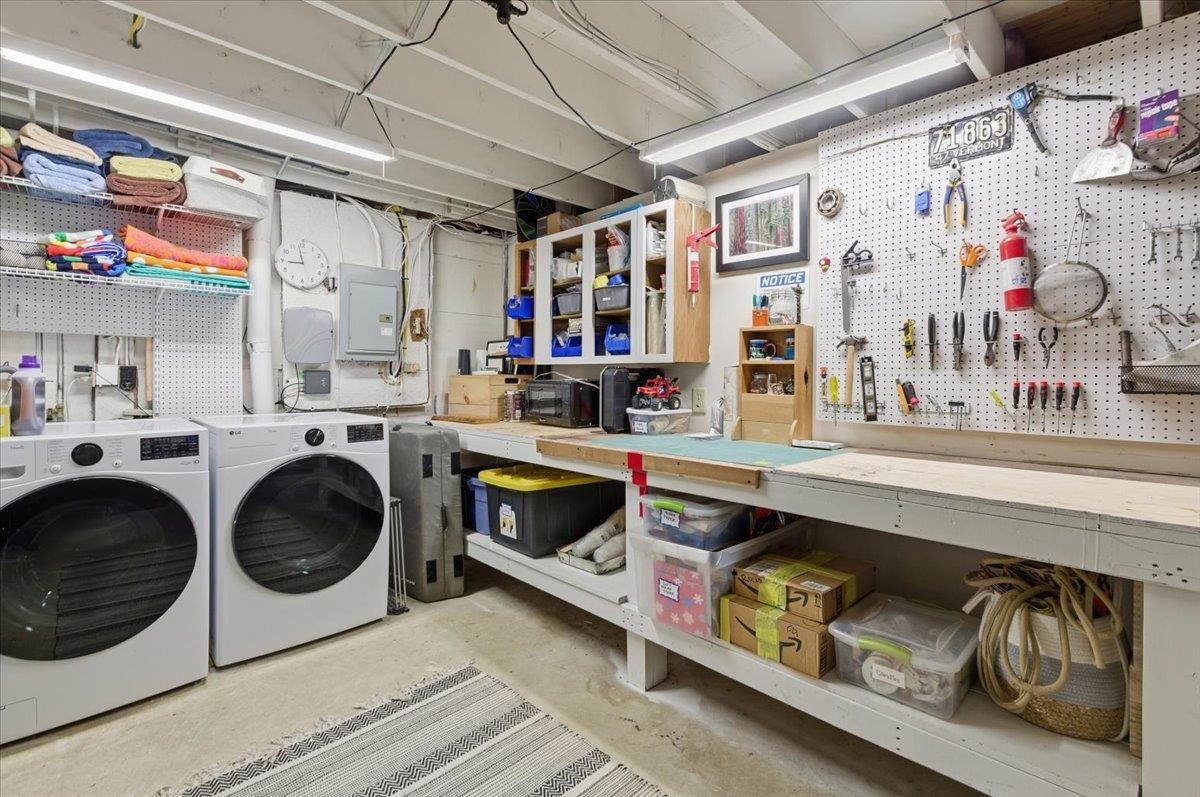 - Blinds, Dining Area, Natural Light, Indoor Storage, Wet Bar, Basement Laundry, Smart Thermostat