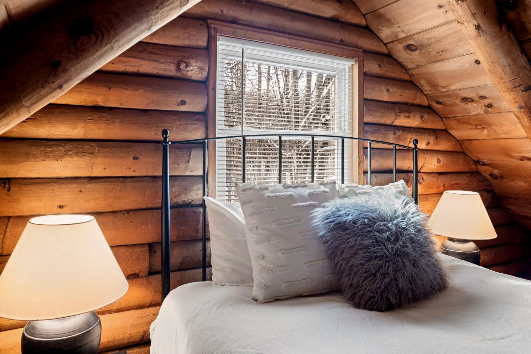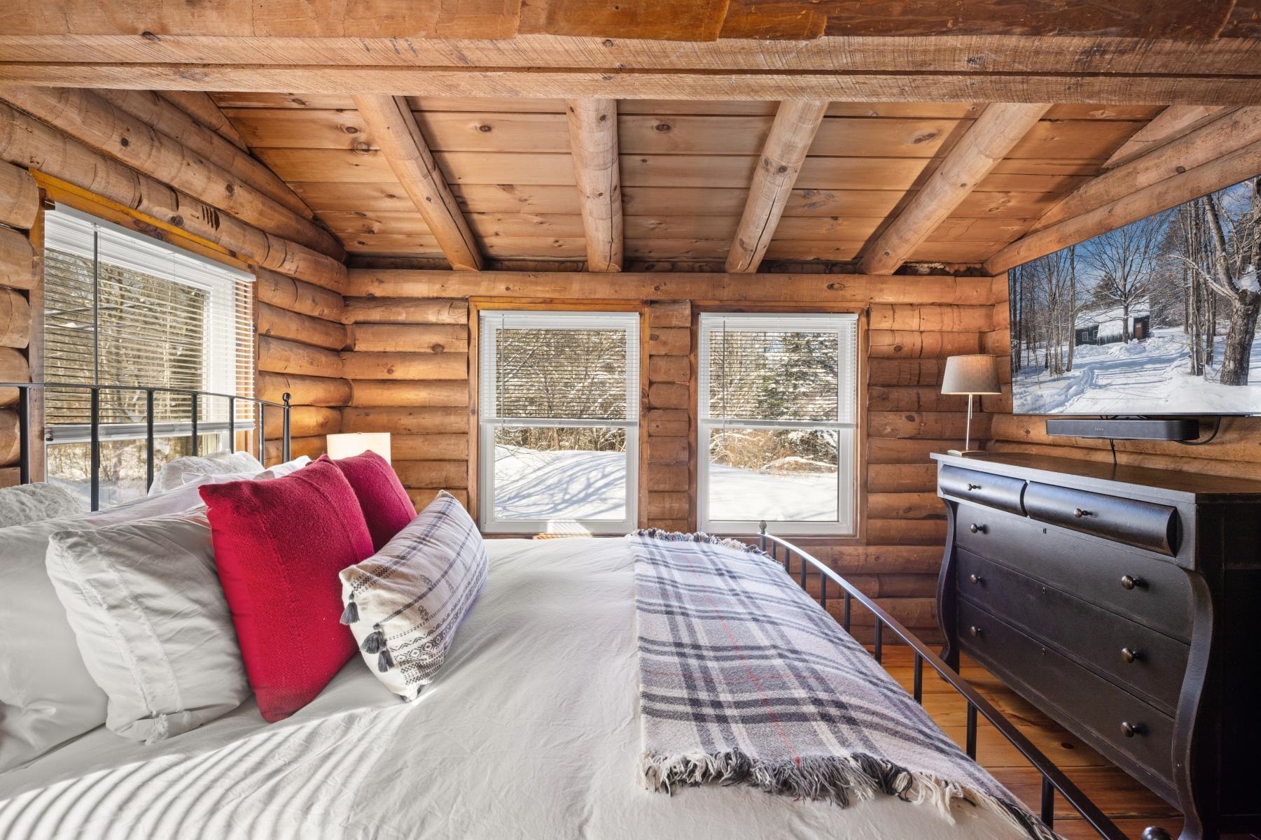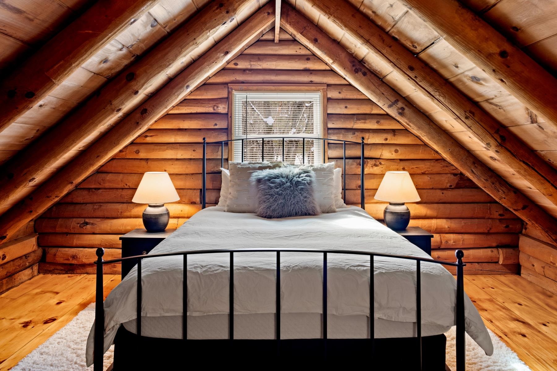 Recently renovated furnished log cabin set on 1.5 private acres along scenic Elmore Mountain Road, just 7 miles from the world-renowned village of Stowe and beautiful Lake Elmore. This charming two-bedroom retreat features wide pine floors throughout, stainless cabinetry, and a stylish Smeg refrigerator and gas range. Thoughtfully updated while maintaining its rustic character, the home offers a perfect blend of warmth and modern comfort. Relax on the rear covered porch and take in the bucolic setting, wildlife, and peaceful mountain surroundings. Conveniently located to boundless recreational opportunities including hiking, skiing, boating, and year-round outdoor adventure while still close to life’s everyday conveniences such as restaurants, shopping, medical facilities, and more. Whether you're seeking a private getaway or a property with excellent short-term rental potential, this inviting cabin presents a wonderful opportunity in a highly desirable location.
