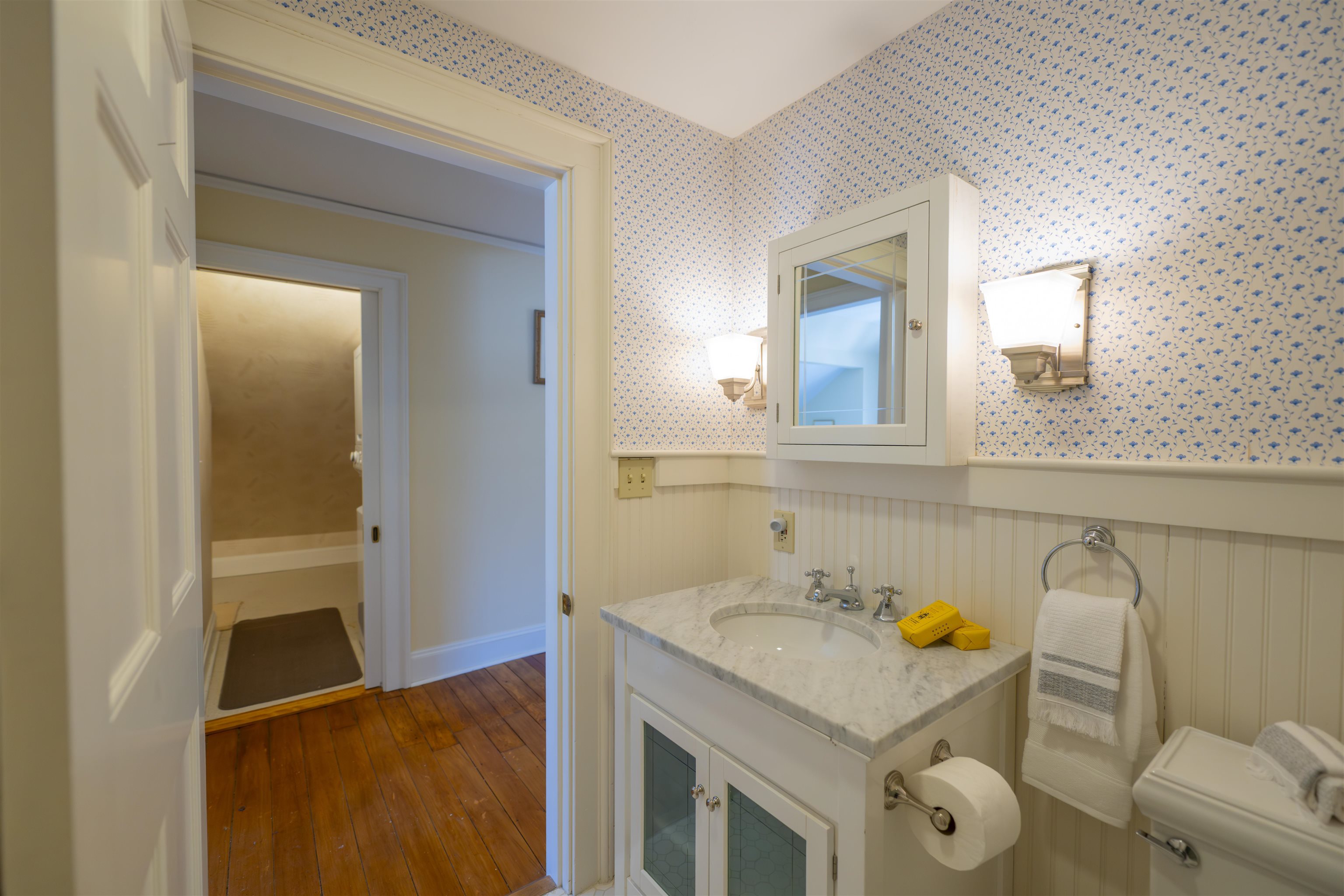 The Richmond House – Unit B | Woodstock Village. An enduring Woodstock landmark, the iconic Richmond House (c.1826) is a proud brick Federal distinguished by its softly weathered rose-hued patina and refined architectural detail. Set on more than an acre behind a classic white picket fence and thoughtfully reimagined under the direction of Laurence Rockefeller, the property comprises three luxurious residences in the heart of the Village. Unit B occupies the top two floors and offers over 3, 200 square feet of beautifully appointed living space with the feel of a private home. The main level features gracious living and dining rooms with a wood-burning fireplace, a spacious family room, and an en-suite study or guest bedroom with its own fireplace. The kitchen opens to the family room and is filled with southern light. A built-in bar near the dining area leads to a private balcony overlooking the Village and landscaped grounds—perfect for morning coffee or evening entertaining. The upper level opens to a charming landing with built-in bookcases, a serene primary suite, and an ensuite guest bedroom. A rear Carriage House provides covered garage and storage. With timeless character, refined interiors, and walk-to-everything convenience, this is a rare opportunity to own one of Woodstock’s most photographed and cherished historic homes.