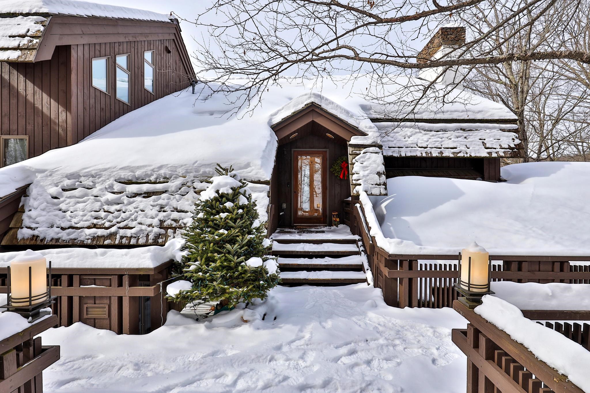 Nestled on a 3-acre private lot at Hawk Resort in Vermont’s Lakes Region, this expansive custom residence offers an exceptional mountain retreat. Thoughtfully designed across four levels--each accessible by elevator--the home provides outstanding separation of space, perfect for hosting family and guests. Designed by architect Robert Carl Williams, the home showcases signature craftsmanship, including soaring windows that frame mountain views, a striking stone fireplace, custom built-ins, cedar closets, and classic pine floors. The residence features six generously sized bedrooms, each with its own sitting area. Five bedrooms offer private en-suite baths, while the sixth—designed as a bunk room—has convenient access to a full bath just across the hall. Ideal for entertaining, the home includes a spacious dining room with scenic views, a large living room, game room, and a lower-level family room--providing inviting spaces for relaxation and recreation. Perfect for gatherings and well-suited for rental opportunities, this remarkable property combines privacy, comfort, and timeless Vermont charm in an unbeatable mountain setting. Located halfway between Okemo and Killington in the lakes region. Roof is at end of life and will need replacement. Driveway in need of repair. Sold as is.