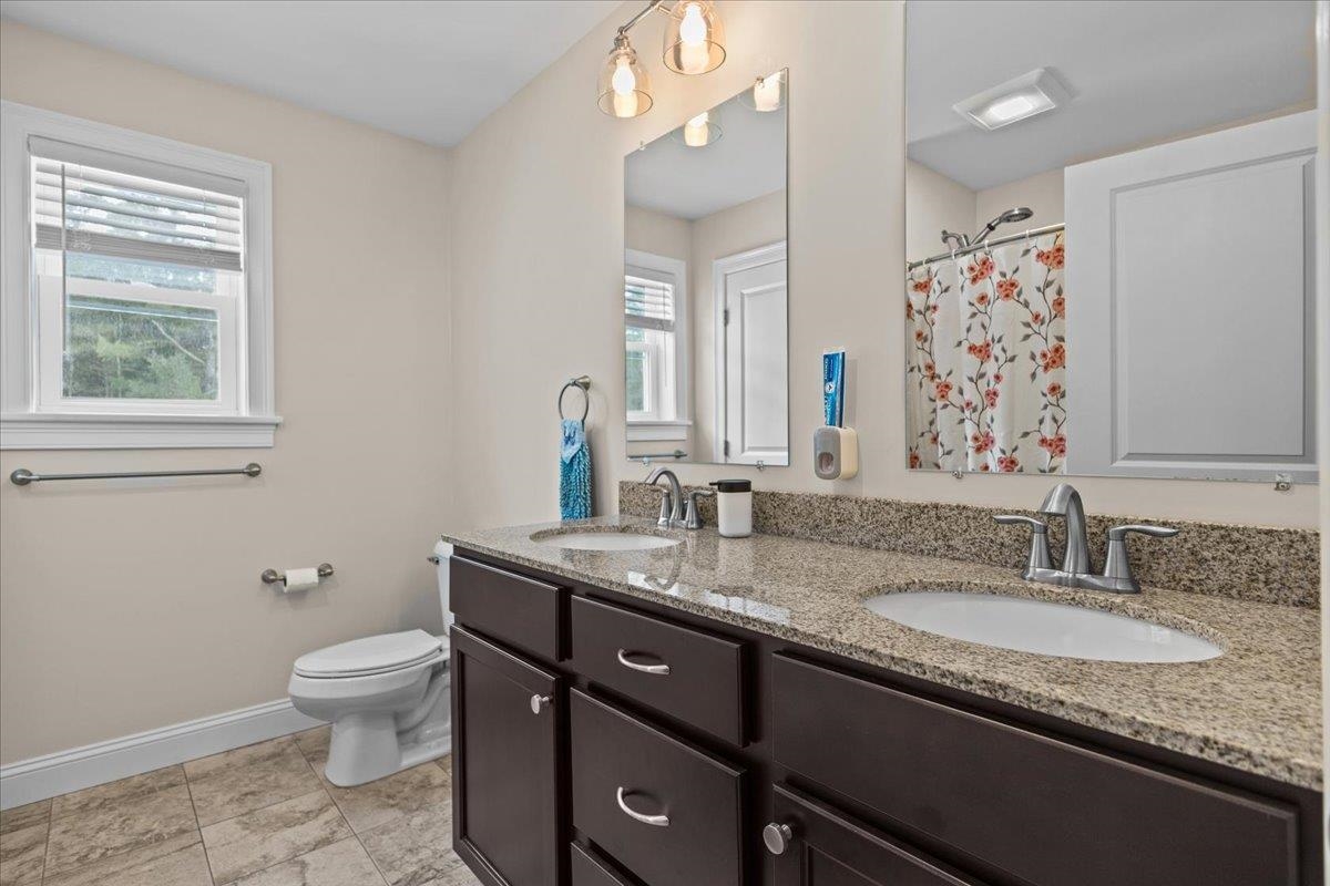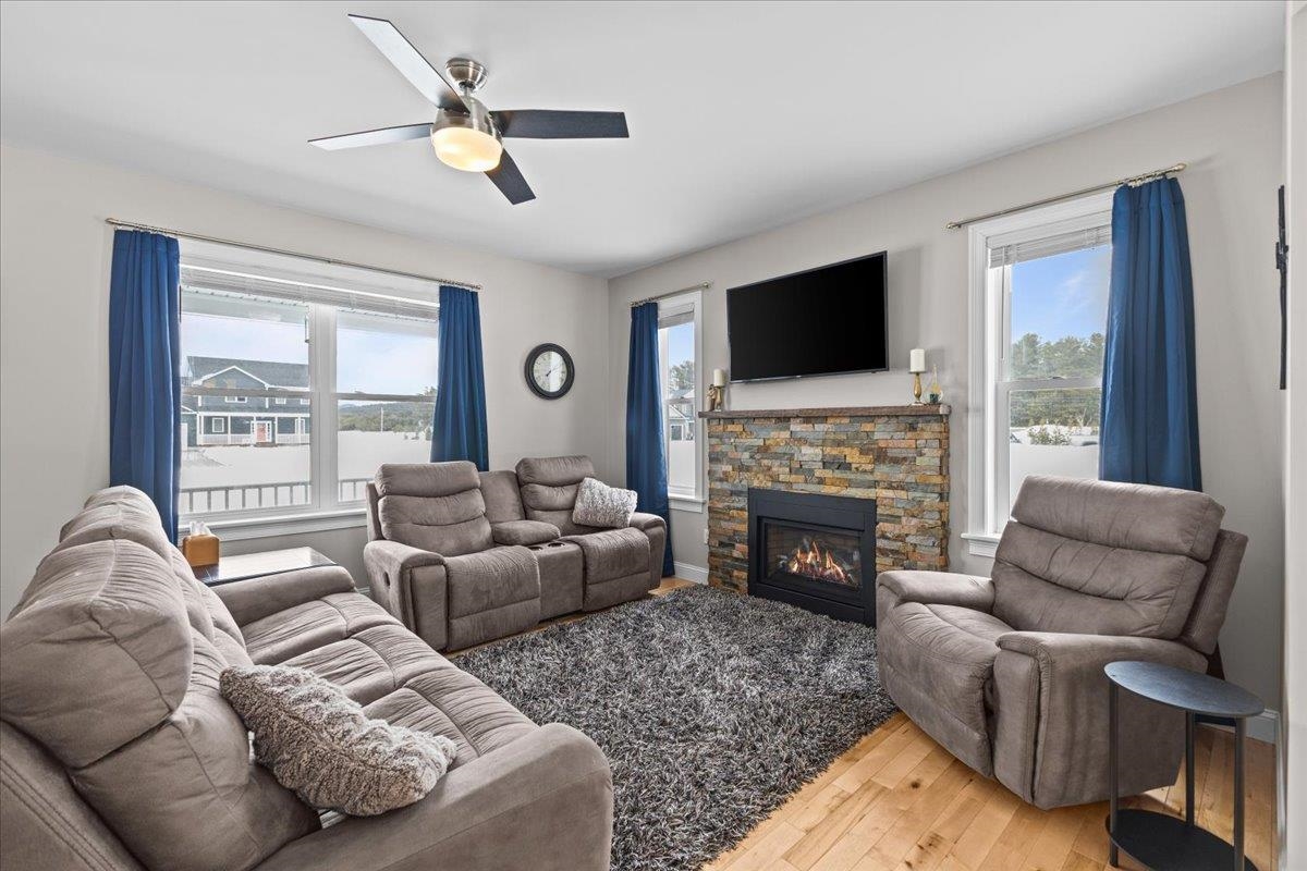 Welcome home! Built in 2020, this beautifully crafted Colonial offers over 3, 100 sq ft of thoughtfully designed living space in a small PUD just steps into Fairfax from the Westford line. Set on nearly an acre with wood-lined open land and scenic views, Sunset View Road has no plans for further development, offering peace and privacy. Inside, you’ll immediately appreciate the quality craftsmanship and welcoming open floor plan designed for both everyday living and entertaining. The kitchen features modern finishes, abundant cabinetry, stainless appliances, and a center island that flows seamlessly into the dining and living areas. The inviting living room centers around a stunning stone fireplace, while sliding doors lead to a large private deck overlooking the spacious backyard. Upstairs offers comfortable private living with two generous bedrooms, a large bonus room, and a spacious primary suite complete with a walk-in closet and private bath with double vanity. The mostly finished lower level provides flexible recreation and entertainment space with natural light from multiple egress windows, plus additional storage and direct access to the garage. The two-car garage features 9-foot doors and a 30-amp outlet ready for EV charging. With space, style, and modern amenities throughout, this home is ready for its next chapter.