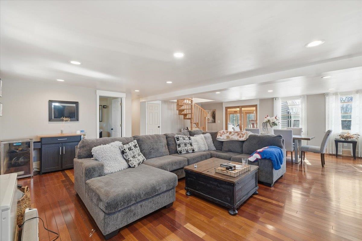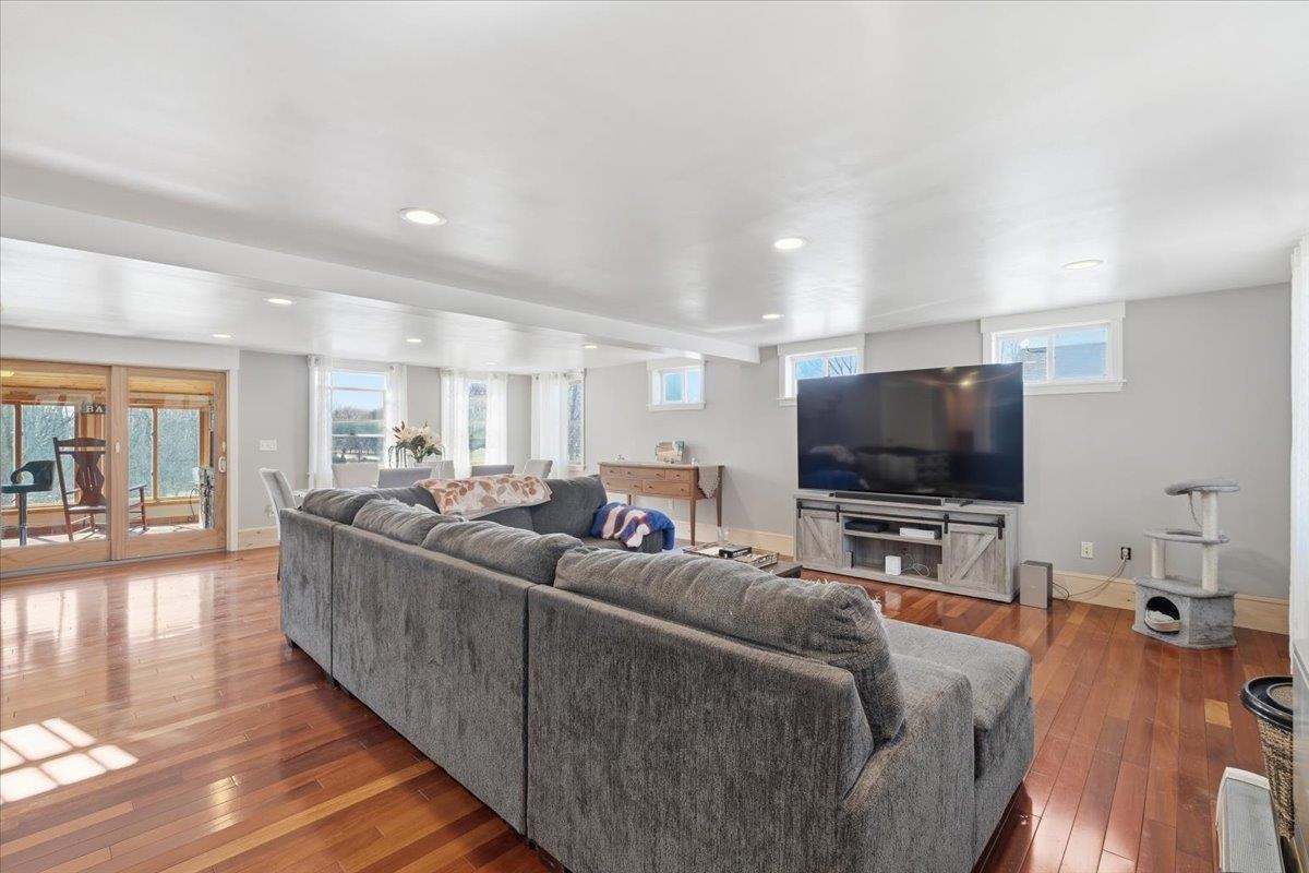 Located at the end of a quiet dead-end road, this year-round 4-bedroom, 3-bath Cape-style home in Alburgh sits on 0.93 acres and offers over 3, 000 sq ft of finished living space. Built in 2005 with a large garage addition completed in 2010, the home features Brazilian cherry floors, tile, pine accents, and abundant natural light throughout. The kitchen includes quartz countertops, tile backsplash, double wall ovens, an electric range with pot filler, pantry storage, and ample workspace. Multiple living areas provide plenty of room to entertain, including a spacious living room, front sitting room with coffee/wet bar, bright three-season porch, and covered back deck. The primary bedroom offers oak floors, cathedral ceilings, a walk-in closet, and large storage space, along with access to a bathroom featuring a jetted tub. The finished walk-out basement expands the living space with a ¾ bathroom, three bonus rooms, and utility area. Additional features include central vacuum, solar panels, and an attached 2-car garage with front and rear doors. Conveniently located near Lake Champlain and Alburgh Village, the property is just 30 minutes to St. Albans or Plattsburgh and about one hour to Burlington, Montreal, and major ski resorts including Jay Peak and Smugglers’ Notch.