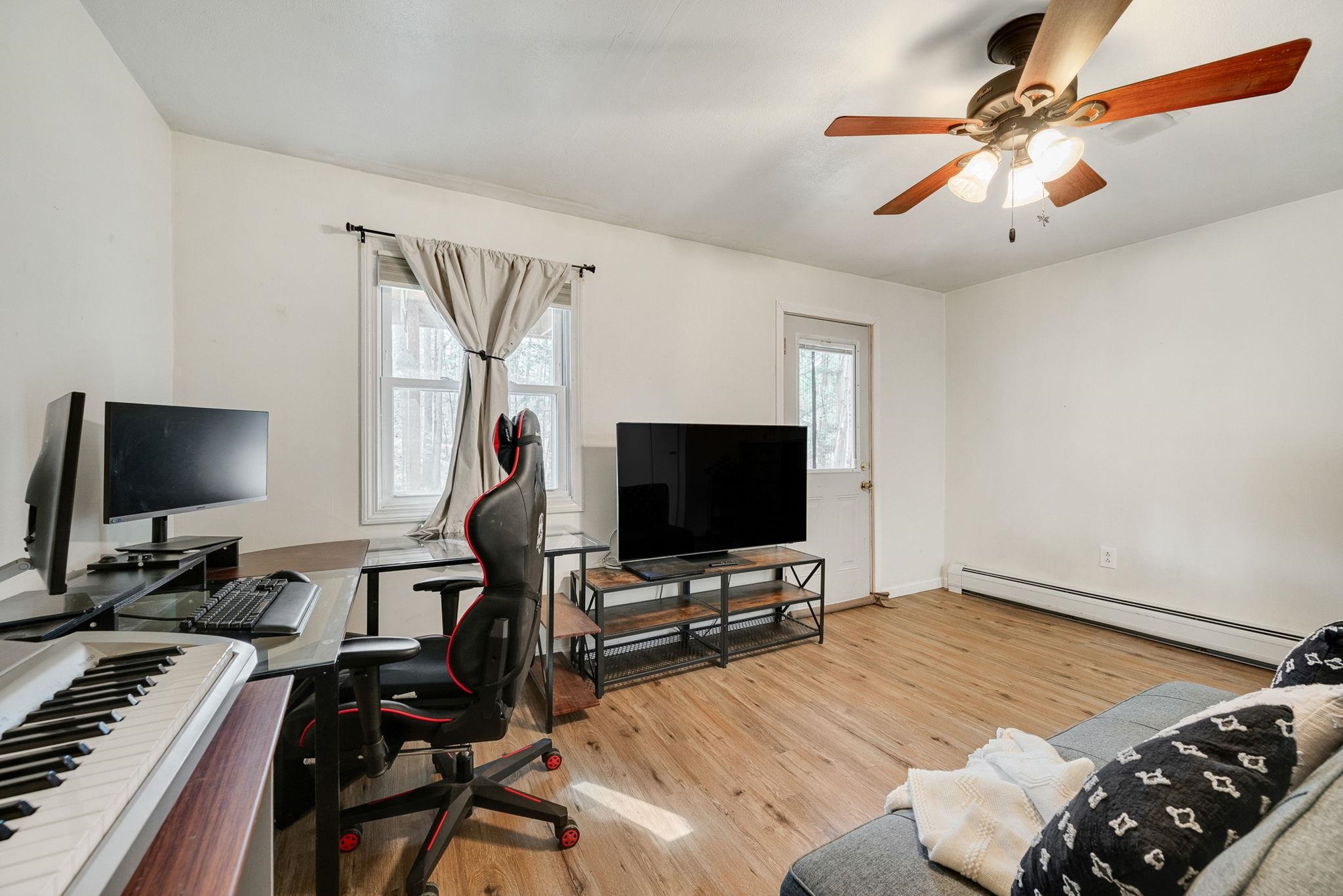 This bright and inviting 2-bedroom, 3-bath condo is set against a peaceful wooded backdrop. The living room features a cozy wood-burning fireplace and a large sliding door that opens to a private back deck, offering a seamless indoor-outdoor connection and quiet views of the woods. A spacious, sun-filled dining room enhances the home’s warm and welcoming feel. The finished walkout basement provides excellent additional living space, including built-in storage, a laundry room, and a bonus room with a 3/4 bath, plus direct access to a paver patio. Recent updates include newer windows, washer and dryer, roof, deck improvements, and electrical panel. The association offers access to Essex Green Space with a pool, swings, and open green areas. Located in desirable Essex, this home combines convenience with Vermont charm. Enjoy nearby parks, trails, recreation, shopping, dining, and community events, all just a short drive from Burlington, Lake Champlain, and the Green Mountains.