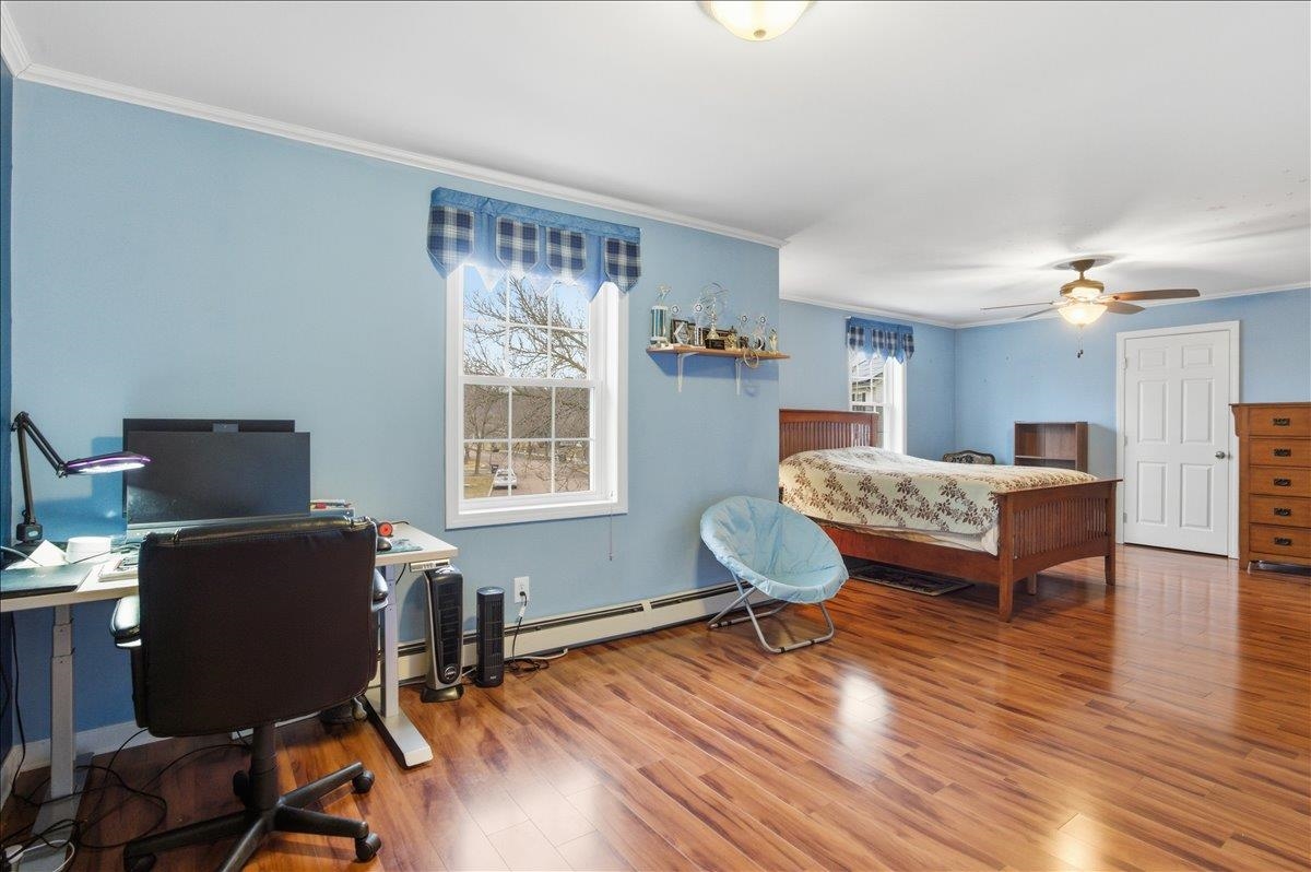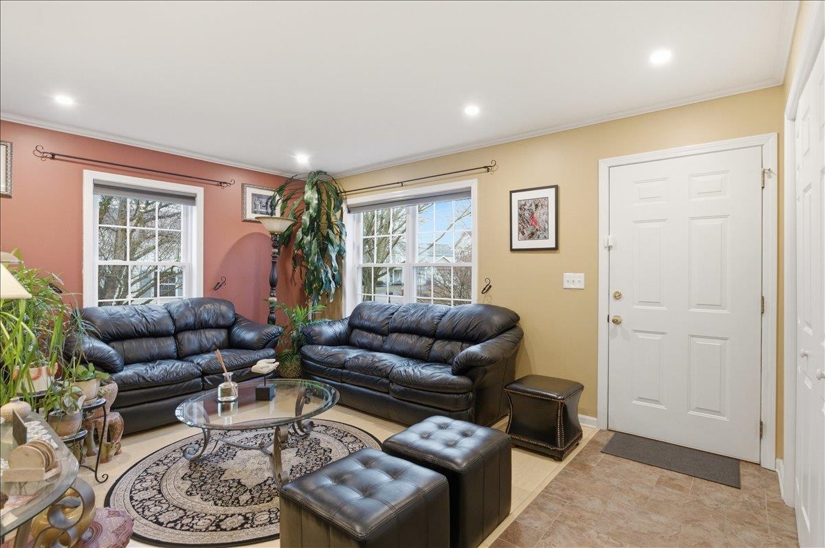 This meticulously maintained 4 bedroom home, built in 1998, offers plenty of living space on a generous 0.46-acre lot. The layout features a spacious primary suite with his and her closets and a private full bath, along with 2.5 bathrooms, including a convenient first floor half bath. The renovated kitchen is a true centerpiece, showcasing stainless steel appliances, a large extended island, and a generous pantry perfect for both everyday living and entertaining. Hardwood floors run throughout the home, complemented by upgraded recessed lighting and a cozy gas fireplace with a custom built-in TV feature in the living room. A standout feature is the all-season heated, east facing sunroom, offering year round enjoyment and natural light. The finished basement adds flexible bonus space, while a large fourth bedroom and additional enhancements like bedroom ceiling fans, new windows throughout most of the home, and a mini-split AC/heat system add comfort and efficiency. Exterior highlights include a front porch with Trex decking, a widened and freshly paved driveway in 2024, a backyard shed, and an attached 2-car insulated garage with a new insulated door. A new roof installed in 2024 provides added peace of mind. This home blends thoughtful upgrades, space, and functionality in a beautifully cared-for setting.