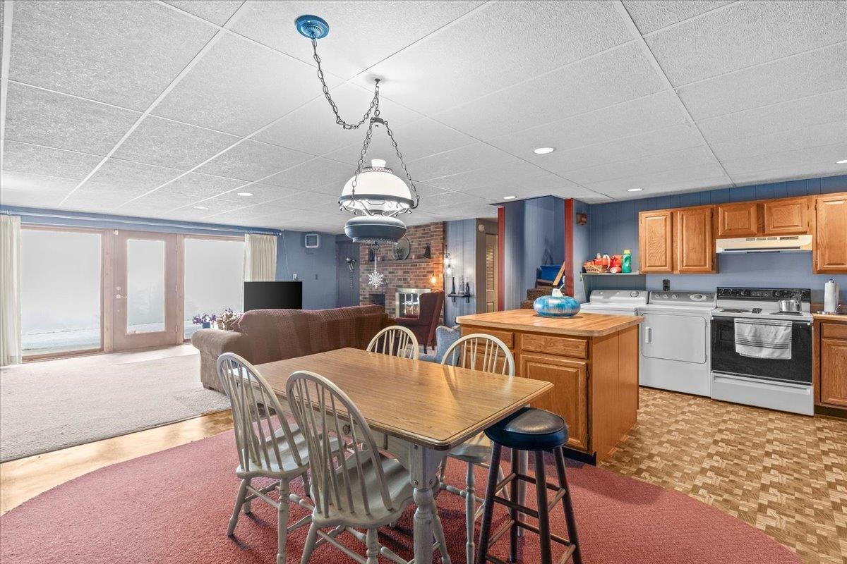 - Ceiling Fan, Dining Area, 2 Fireplaces, Hearth, Kitchen/Dining, Primary BR w/ BA, Natural Light, Vaulted Ceiling, Walk-in Closet, 1st Floor Laundry, Basement Laundry