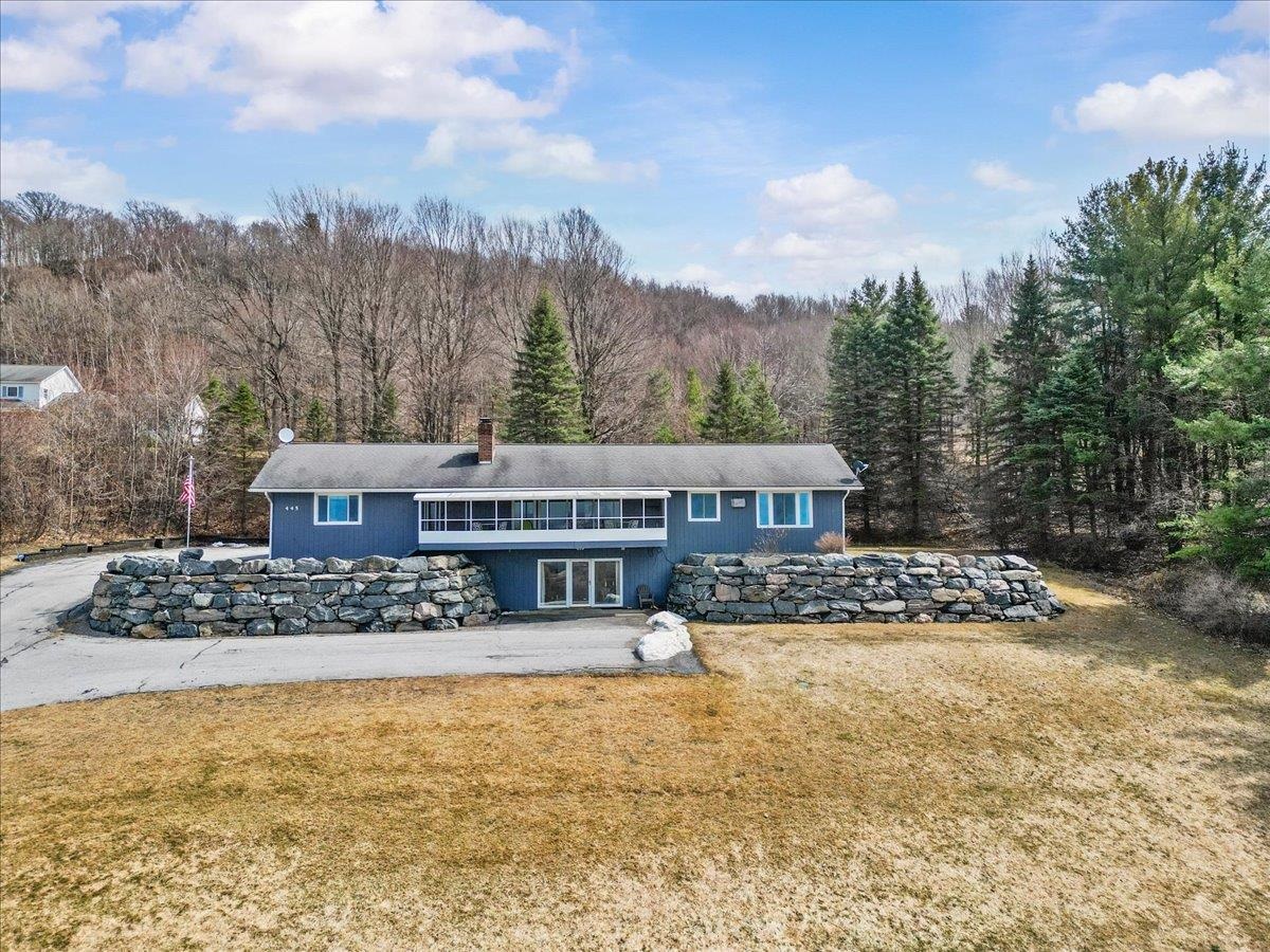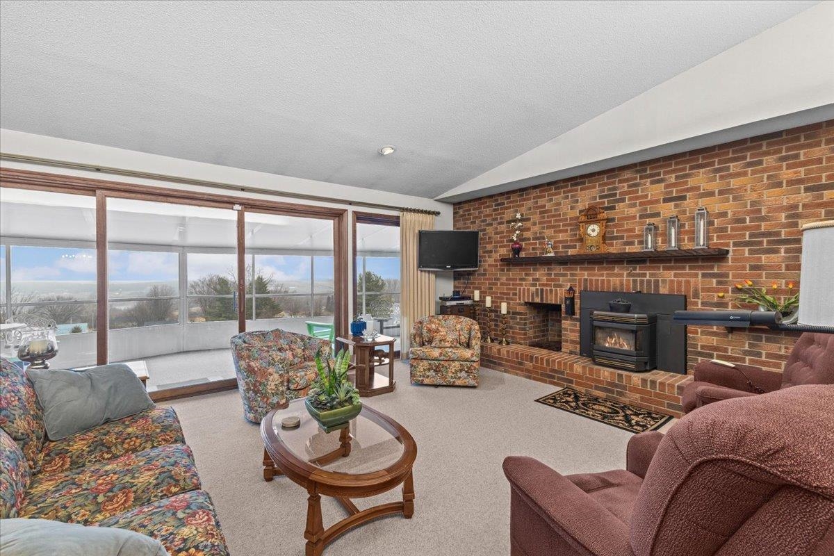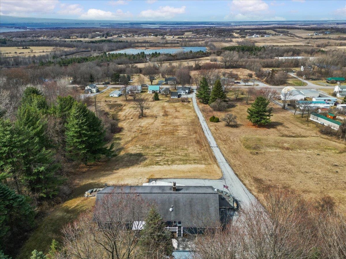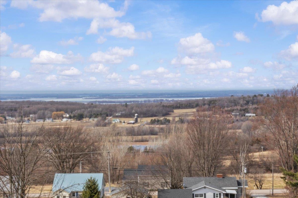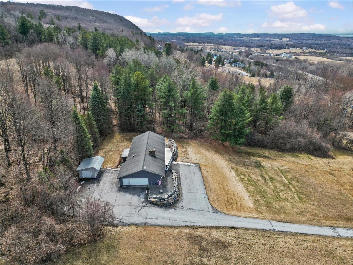 Perched atop a scenic hill in St. Albans this inviting 3 bedroom, 3 bath home offers the perfect blend of privacy, comfort, and breathtaking hillside views with spectacular sunsets overlooking lake Champlain all on 2.52 acres. Step inside to a spacious living room filled with natural light from dramatic floor-to-ceiling windows that perfectly frame the stunning landscape beyond. A sliding glass door leads to a screened-in porch, your ideal spot for morning coffee or evening relaxation while taking in the peaceful vista. The brick fireplace serves as a charming focal point, complemented by a pellet stove that adds both warmth and efficiency. The main living area features durable laminate flooring and flows seamlessly into a welcoming dining space and functional kitchen, creating an easy layout for everyday living and entertaining. All three bedrooms are conveniently located on the first floor, including a primary suite with its own en suite bath and a generous walk-in closet. A standout feature of the home is the dedicated sewing and laundry room - perfect for crafting, hobbies, or additional workspace. The lower level expands your living options with a full walkout and a second kitchen, making it ideal for hosting guests, extended family, or entertaining. Outside, you'll find a large shed/mini garage, offering excellent storage for tools and equipment. With complete privacy and sweeping views and just minutes to I-89 and a short drive to Burlington.