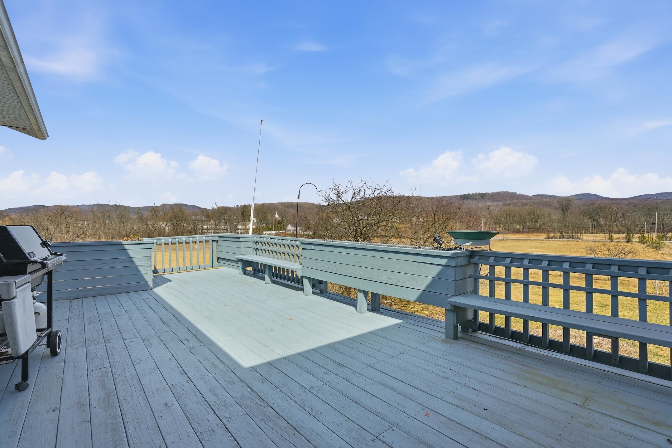 Set on 28 acres in a picturesque Hinesburg setting, this wonderful country property offers sweeping mountain and pastoral views, privacy, & timeless Vermont charm. Perennial gardens and a generous yard surround the 3-bedroom, 2-bath home, creating a serene retreat close to village amenities. Open land, trails and wooded acreage make it ideal for horses. The inviting country kitchen with center island flows into the open family and dining areas, perfect for everyday living & entertaining. The true showpiece of the home is the stunning sunroom, wrapped in walls of windows that capture breathtaking mountain views in every season & fill the space with natural light. This exceptional room opens to a spacious deck, creating a seamless indoor-outdoor connection for al fresco dining, entertaining, and quiet moments overlooking the landscape. The expansive walkout lower level includes two bedrooms, a comfortable family room, and a wood stove that adds warmth and ambiance. The second floor offers a dedicated laundry room and office or study, providing flexibility for remote work or creative pursuits. Custom built-ins throughout the home add character and thoughtful storage. A third-level basement provides excellent dry storage and a large workshop. The detached two-car garage includes a workbench and an upper loft, ideal for additional storage, hobbies, or creative use with endless possibilities. Enjoy endless outdoor recreation nearby, including hiking, biking, and trails, with Lake Iroquois & Lake Champlain close by. Conveniently located near schools, services, and amenities, and just minutes to Downtown Burlington, the airport, UVM Medical Center, and area colleges. A rare opportunity for Vermont country living with exceptional convenience.