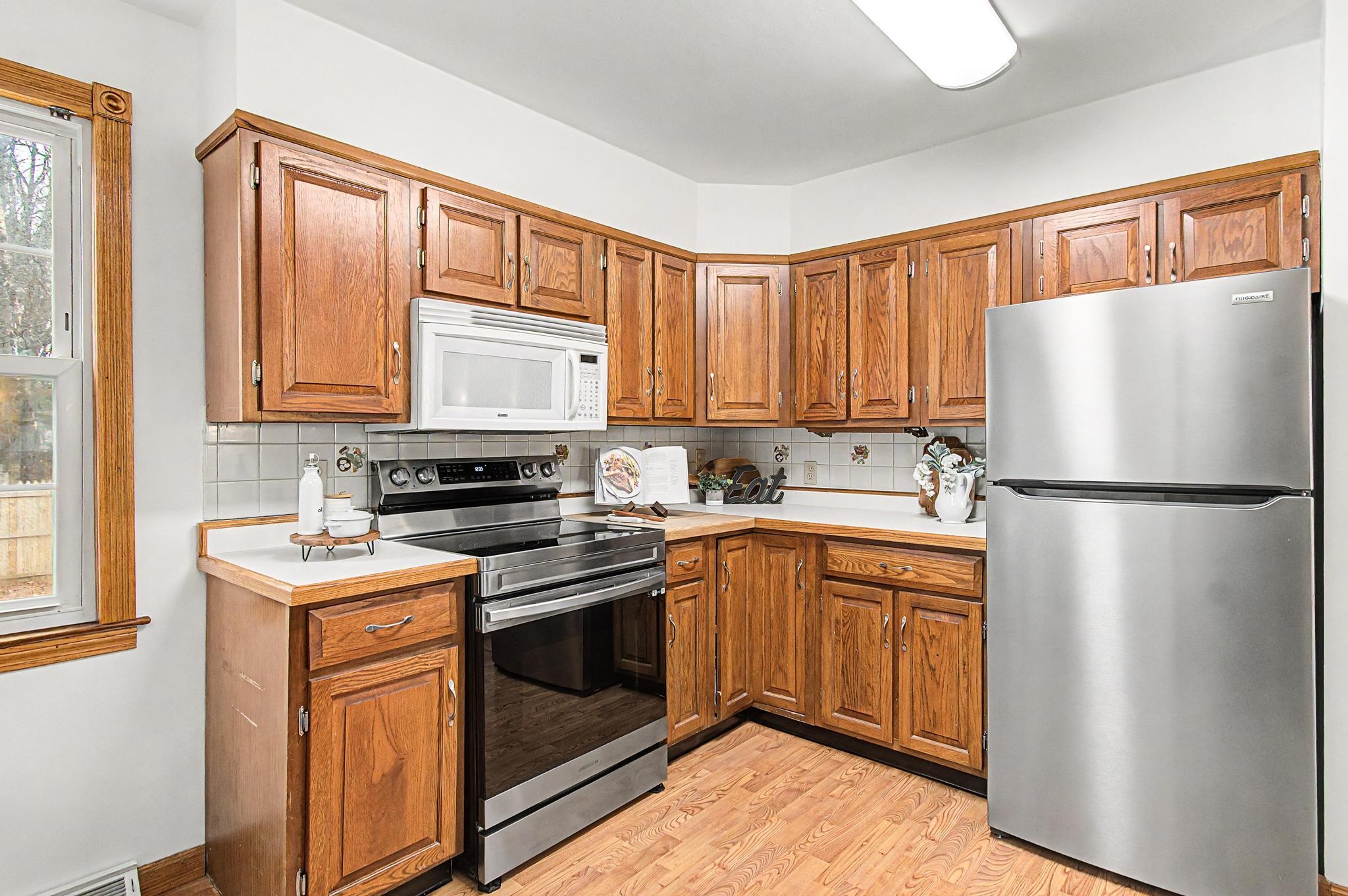 Thoughtfully upgraded and move-in ready, this charming 3 bed, 1 bath Cape-style home in Essex offers the perfect blend of comfort, convenience, and Vermont lifestyle in the heart of Chittenden County! Located in one of the region’s most desirable communities, this property provides easy access to local shops, dining, parks, and commuter routes while being part of the Essex-Westford School District. Step inside and discover a warm and inviting interior featuring fresh paint throughout, updated lighting, and modern cosmetic upgrades that make this home truly turnkey. The kitchen includes young appliances, a new sink, and thoughtful touches that create a functional and welcoming space for cooking and gathering. The bathroom has been enhanced with stylish new tile, while additional improvements, including new living room and hallway lighting, add modern appeal. A new water heater installed in 2025 ensures efficiency and peace of mind for years to come. One of the home’s standout features is central air conditioning - an uncommon yet highly desirable amenity! - keeping you cool during the warm summer months. The classic layout offers flexible living options, with 2 large bedrooms upstairs and a first floor primary and office space. The full basement provides excellent potential for additional finished living space. Outside, enjoy the benefits of a large fenced backyard with mature trees on a corner lot, perfect for entertaining, pets, gardening, or simply relaxing in your private space. A shed offers convenient storage for outdoor equipment. The thoughtfully designed septic installed in 2017 maximizes usable yard space, a valuable feature for outdoor living. You'll appreciate the new vinyl siding and sheathing completed in 2025 and the refinished attached garage with plywood interior, complete with an electric vehicle charger. Don't miss your opportunity to call this Essex Vermont house, home. *Room measurements on floor plan are approximate*
