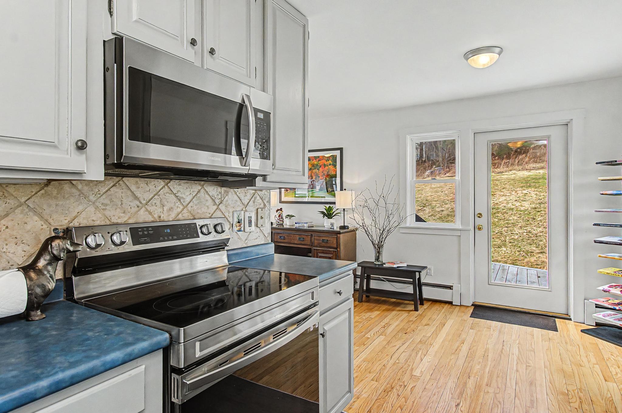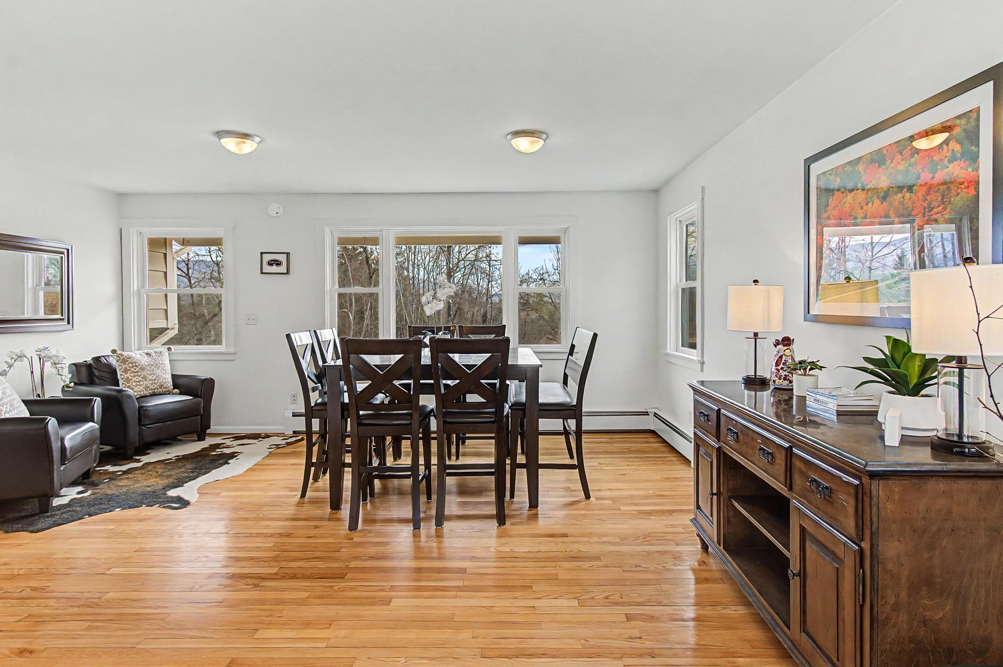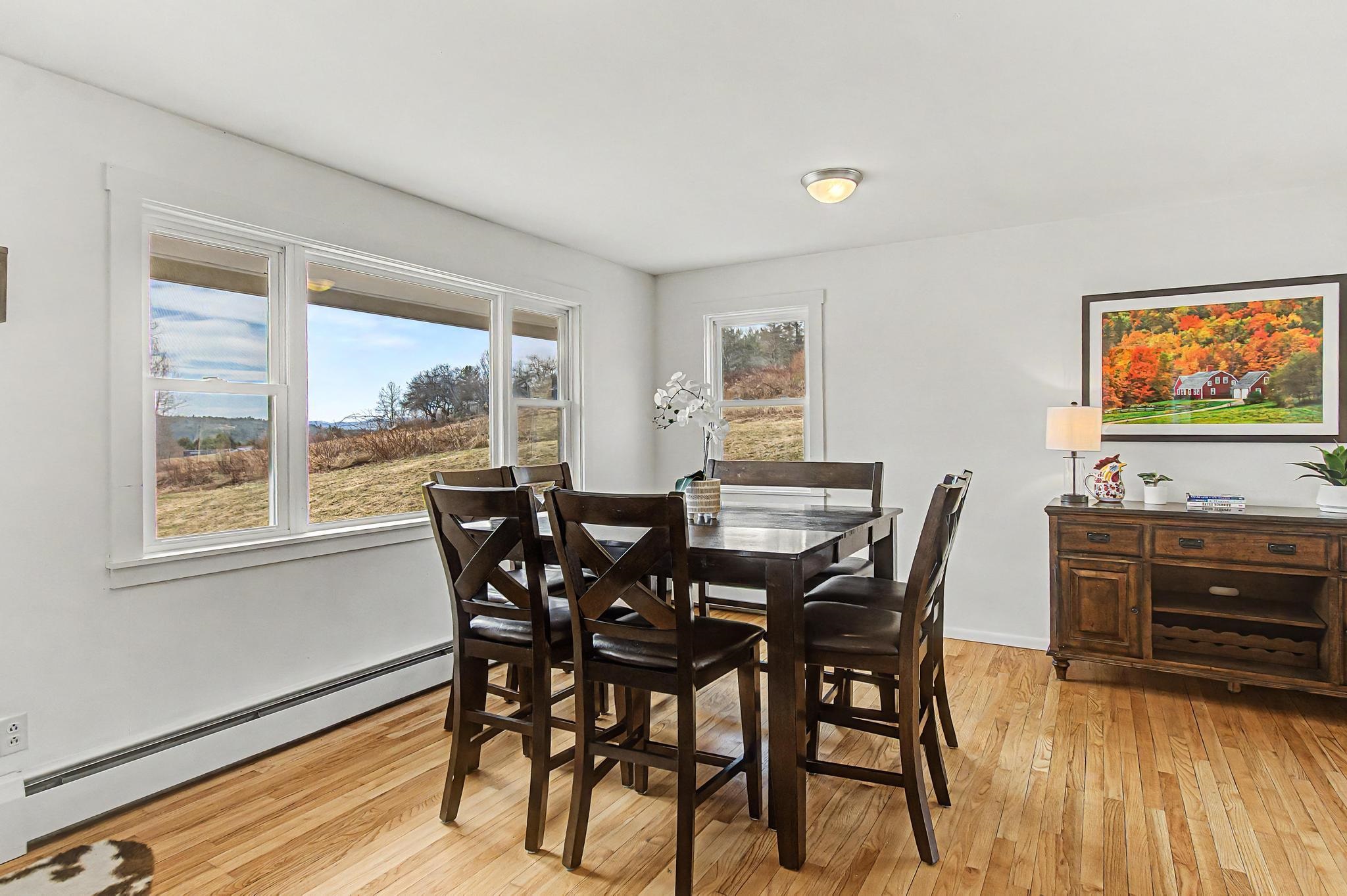 Set along one of Stowe’s most desirable corridors, this Weeks Hill Road property offers a combination of elevated positioning, pastoral views and everyday functionality. Situated on a 1.18-acre lot with southwest-facing exposure, the home looks out across rolling hills and the surrounding valley, with an open lawn framed by a natural landscape backdrop that enhances both privacy and setting. Inside, the home features a functional and efficient layout with clearly defined living and dining areas. A subtle change in elevation between spaces creates a sense of separation while maintaining an easy, natural flow. The living area is filled with natural light and offers flexibility for a variety of furniture arrangements, while the adjacent dining area connects seamlessly to the kitchen and a spacious rear deck—ideal for indoor-outdoor living. Hardwood flooring runs throughout the main living spaces and bedrooms, complemented by clean, neutral finishes that make the home move-in ready while offering a blank canvas for personalization. Multiple bedrooms provide flexible options for guests, rental use, or a home office, with practical layouts and ample closet storage. Two full bathrooms support comfortable daily living. The rear deck extends the living space outdoors, offering room for seating and grilling, with direct access to the yard below. The home’s elevated position not only enhances the views but also adds to the sense of privacy, creating an inviting environment for relaxing or entertaining. Conveniently located with easy access to Stowe Village, recreation trails, and ski areas, this property presents an excellent opportunity to enjoy all that Stowe has to offer from a peaceful, scenic setting.