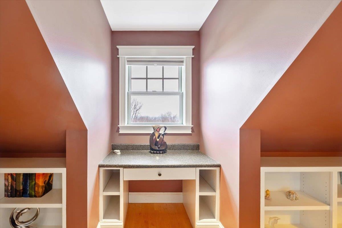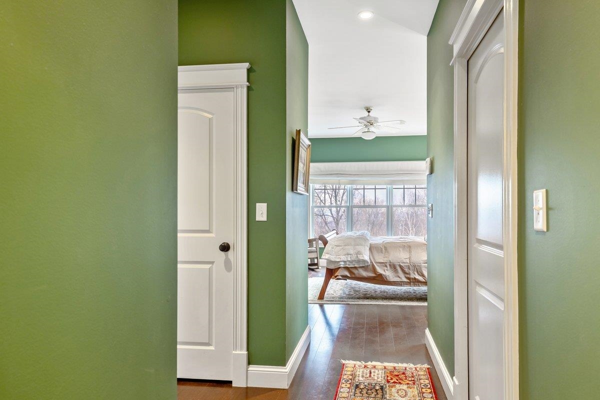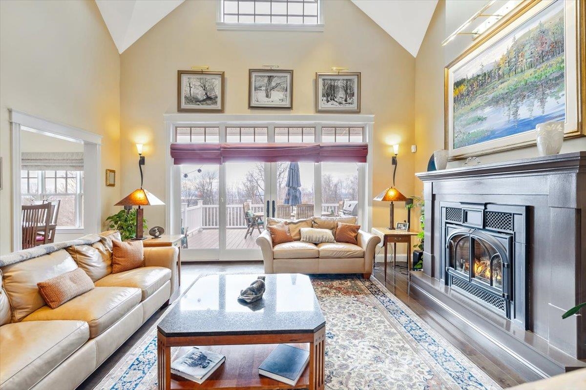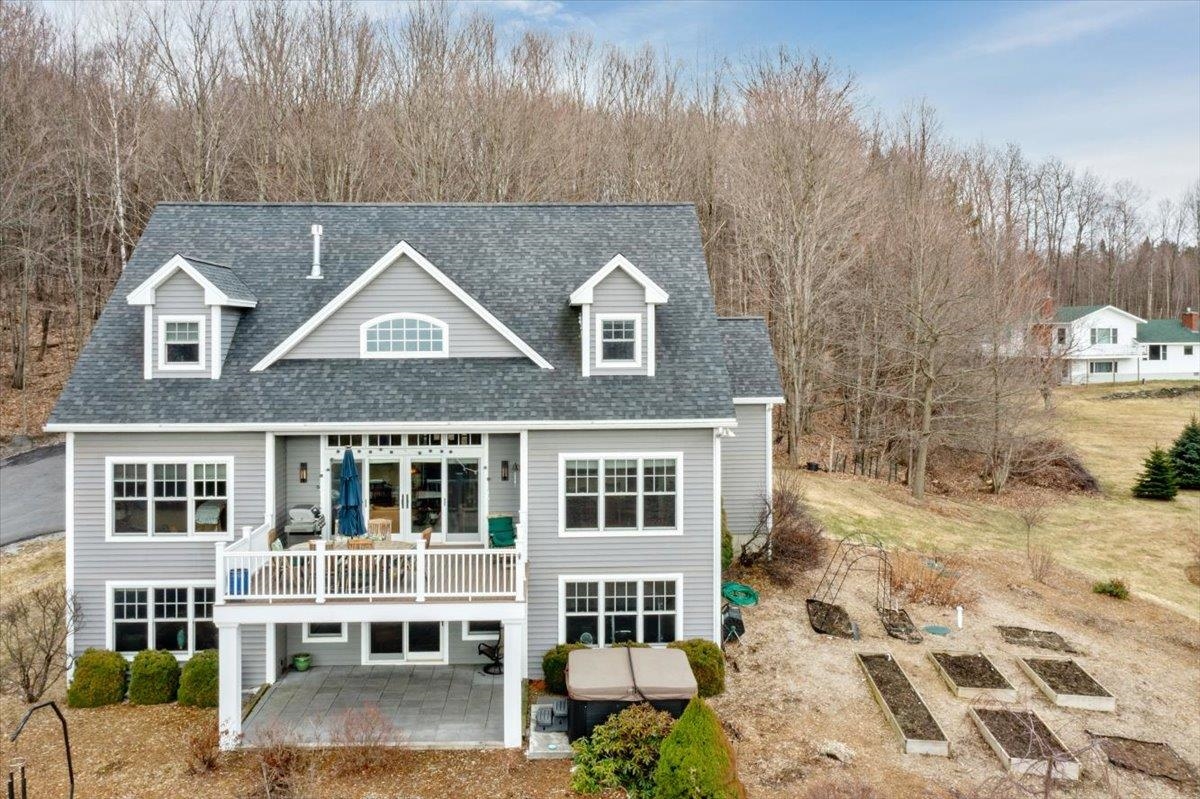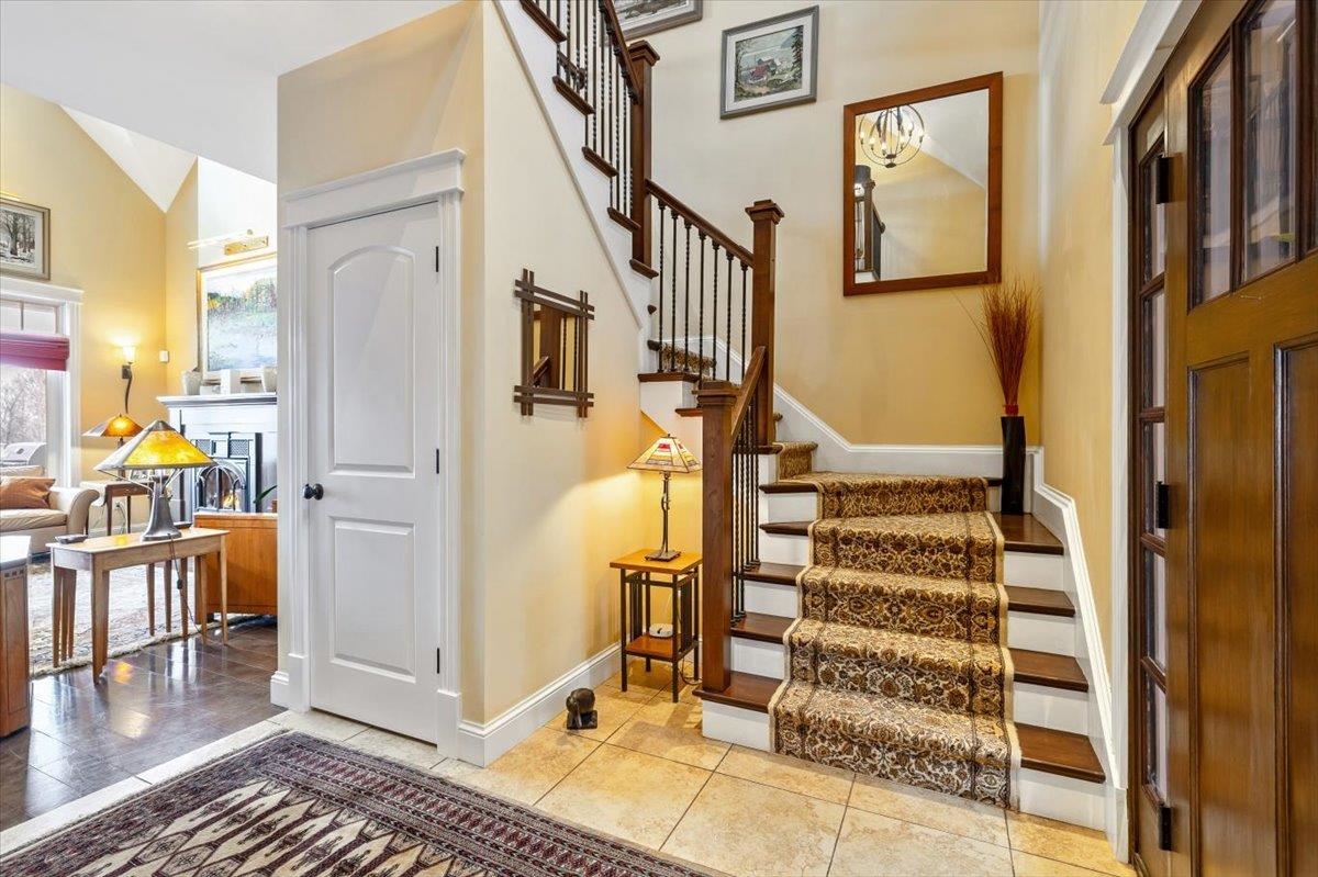 Tucked privately at the end of the road, this picture-perfect home offers a rare blend of tranquility and convenience, with seasonal views of Lake Champlain and the sparkling lights of St. Albans City. From the moment you enter, you’re welcomed by a bright and expansive living room featuring vaulted ceilings, a cozy fireplace, and glass doors that open to a spacious deck—perfect for soaking in the stunning surroundings. At the heart of the home, the gourmet kitchen is designed to impress, showcasing a commercial-grade range, elegant stone countertops, custom cabinetry, and generous workspace for both everyday living and entertaining. A large Walk in pantry just off the kitchen provides exceptional storage and organization. The primary suite is a peaceful retreat, complete with a spa-like bath featuring a soaking tub, separate shower, double vanity, and walk-in closet. Two additional upstairs bedrooms each offer their own private en-suite baths, providing comfort and privacy for family or guests. The finished walk-out lower level expands your living space with a large recreation room, wet bar with refrigerator, full bath, laundry room, and dedicated exercise room, and patio with hot-tub; ideal for entertaining or relaxing. Thoughtfully designed throughout, the home features 9’ ceilings, radiant heat on the main and lower levels, custom woodwork, hardwood and tile flooring, central vacuum, security system, and Marvin windows. Designer lighting by Hubbardton Forge adds a distinctive Vermont-crafted touch of elegance to every space. Outside, enjoy a 2-car garage with storage above, beautifully established perennial gardens, and a spacious yard for outdoor enjoyment. Ideally located just minutes from I-89, downtown St. Albans, Hard’ack Recreation Area, Collins Perley Sports Complex, Northwestern Medical Center, and local schools, this exceptional property offers the perfect balance of luxury, comfort, and location. Don’t miss your chance to experience this stunning home.