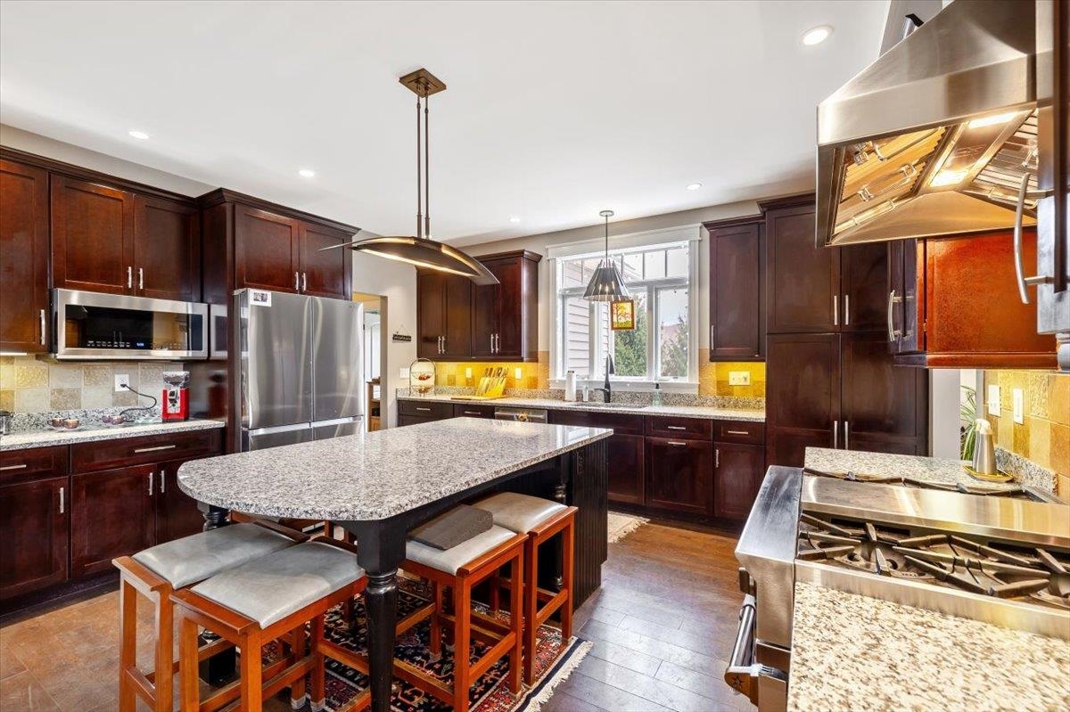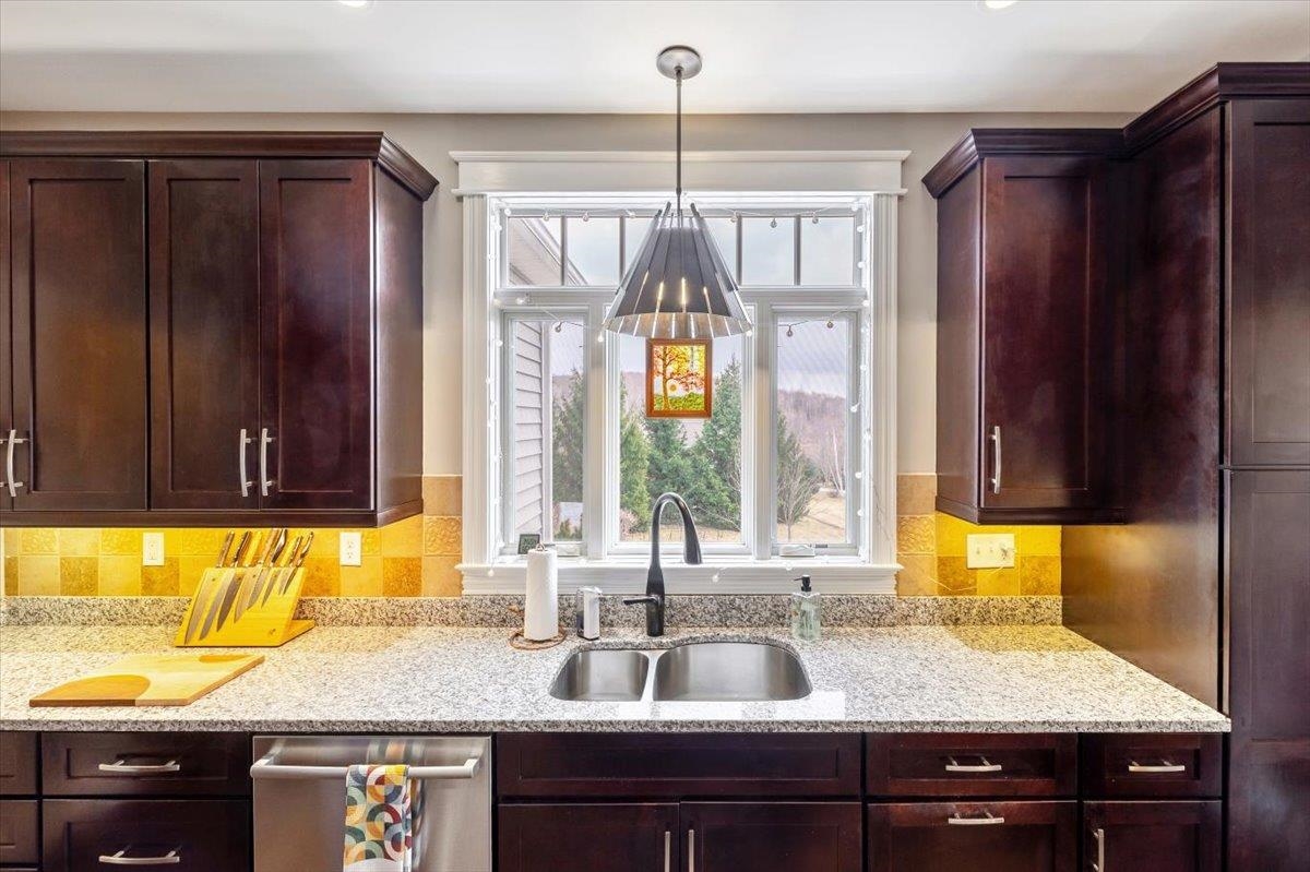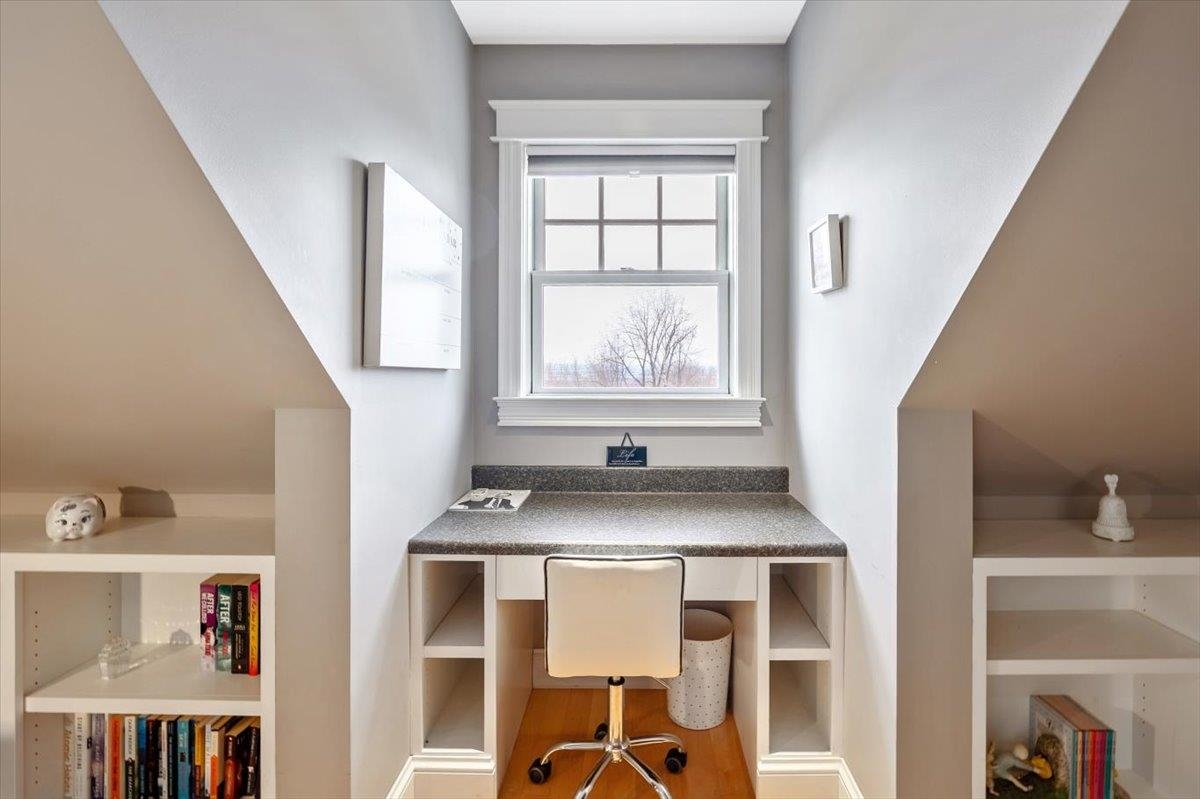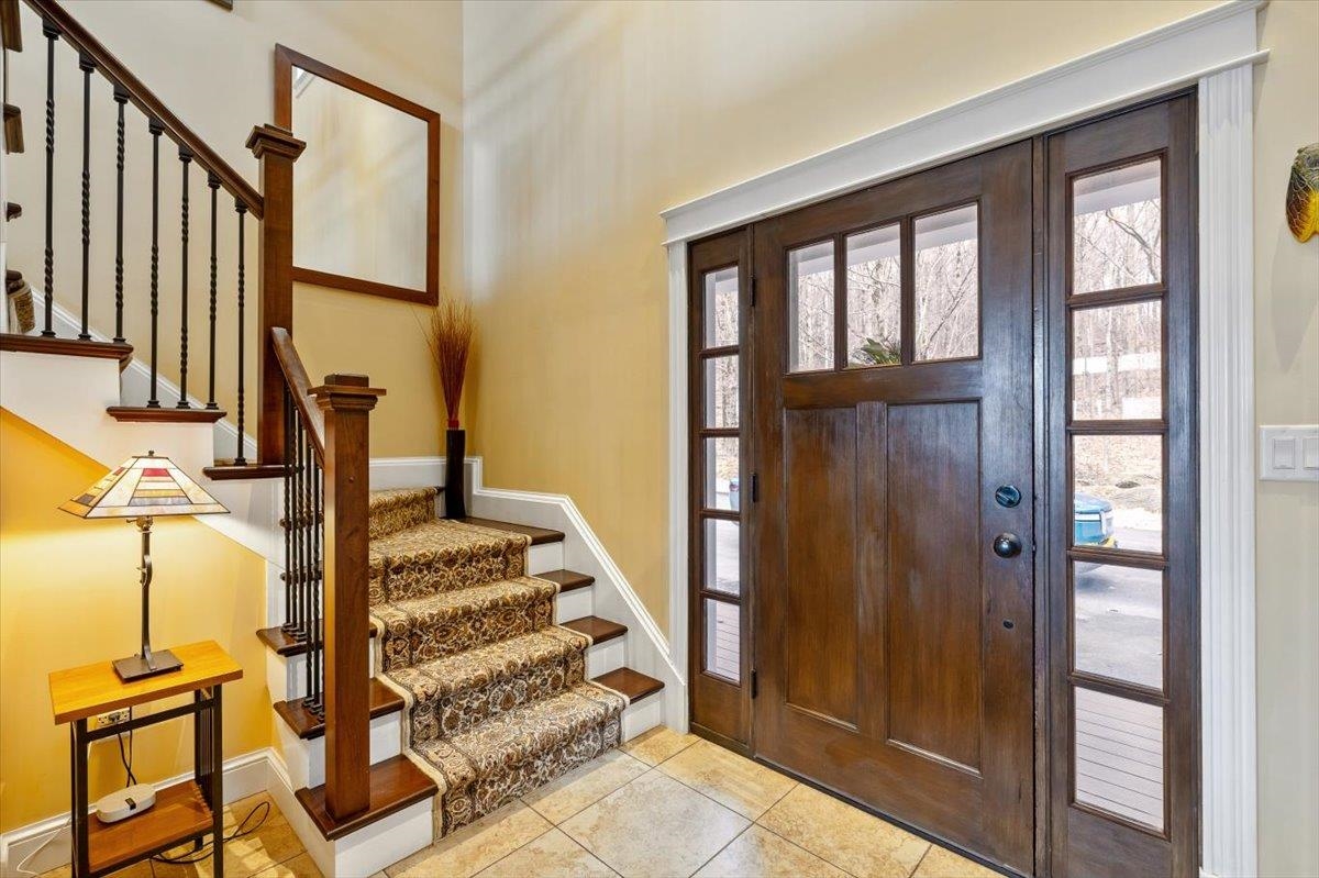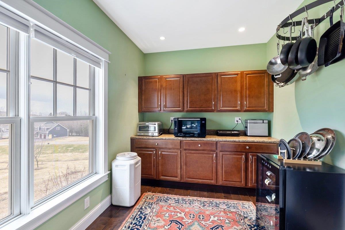 Tucked privately at the end of the road, this picture-perfect home offers a rare blend of tranquility and convenience, with seasonal views of Lake Champlain and the sparkling lights of St. Albans City. From the moment you enter, you’re welcomed by a bright and expansive living room featuring vaulted ceilings, a cozy fireplace, and glass doors that open to a spacious deck—perfect for soaking in the stunning surroundings. At the heart of the home, the gourmet kitchen is designed to impress, showcasing a commercial-grade range, elegant stone countertops, custom cabinetry, and generous workspace for both everyday living and entertaining. A large Walk in pantry just off the kitchen provides exceptional storage and organization. The primary suite is a peaceful retreat, complete with a spa-like bath featuring a soaking tub, separate shower, double vanity, and walk-in closet. Two additional upstairs bedrooms each offer their own private en-suite baths, providing comfort and privacy for family or guests. The finished walk-out lower level expands your living space with a large recreation room, wet bar with refrigerator, full bath, laundry room, and dedicated exercise room, and patio with hot-tub; ideal for entertaining or relaxing. Thoughtfully designed throughout, the home features 9’ ceilings, radiant heat on the main and lower levels, custom woodwork, hardwood and tile flooring, central vacuum, security system, and Marvin windows. Designer lighting by Hubbardton Forge adds a distinctive Vermont-crafted touch of elegance to every space. Outside, enjoy a 2-car garage with storage above, beautifully established perennial gardens, and a spacious yard for outdoor enjoyment. Ideally located just minutes from I-89, downtown St. Albans, Hard’ack Recreation Area, Collins Perley Sports Complex, Northwestern Medical Center, and local schools, this exceptional property offers the perfect balance of luxury, comfort, and location. Don’t miss your chance to experience this stunning home.