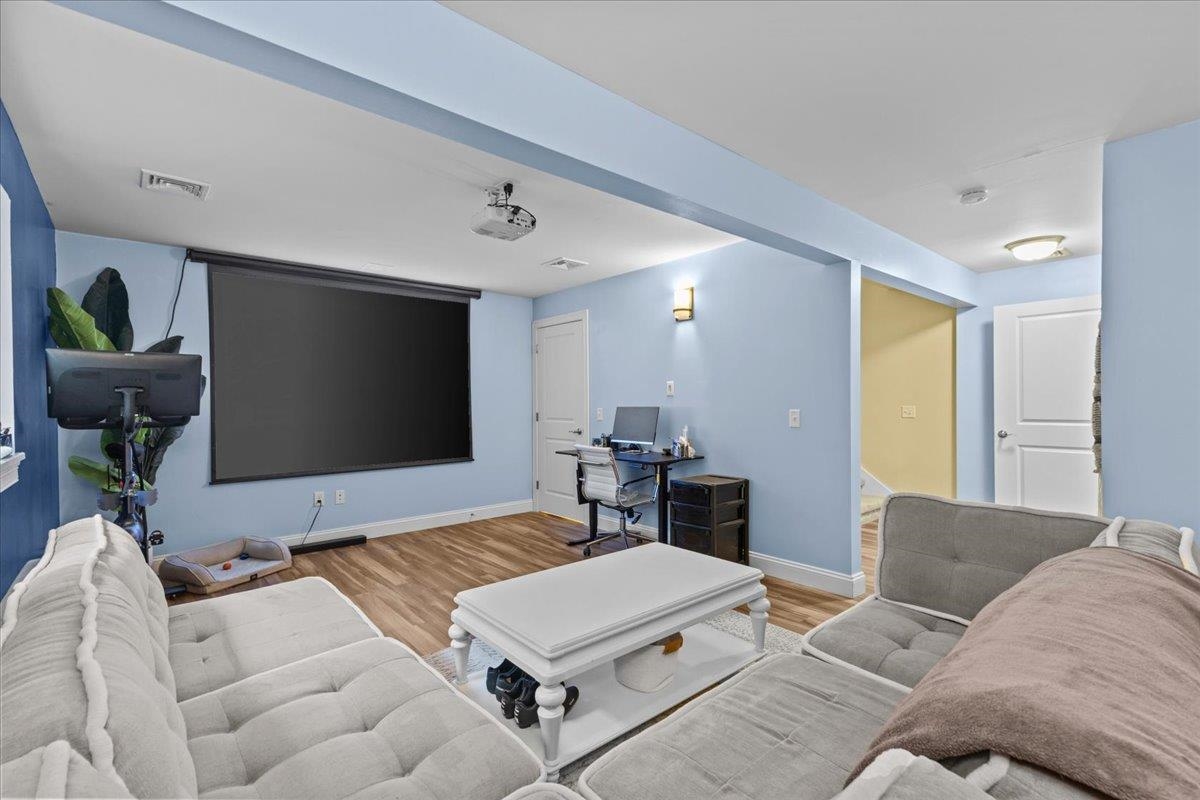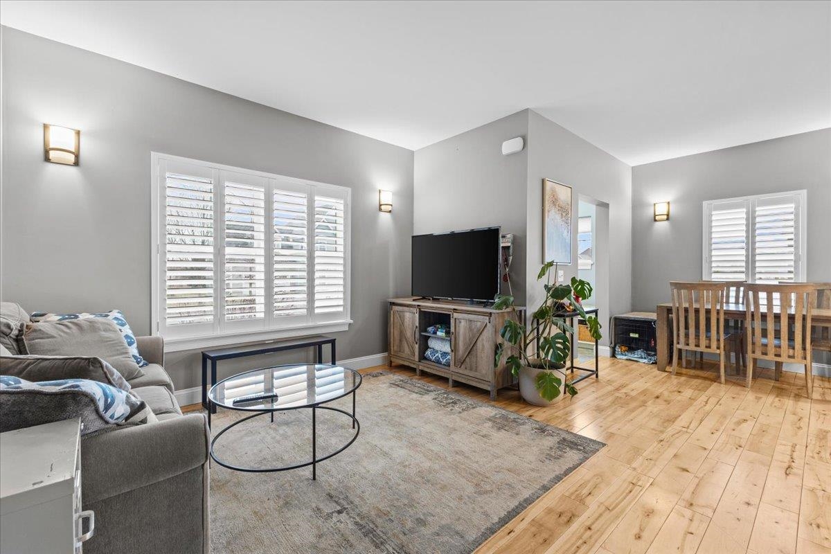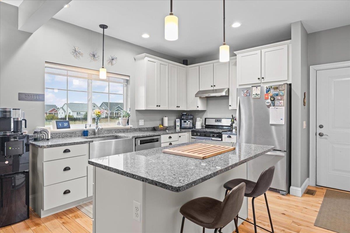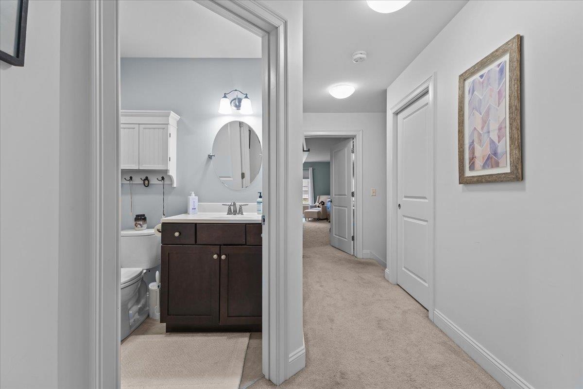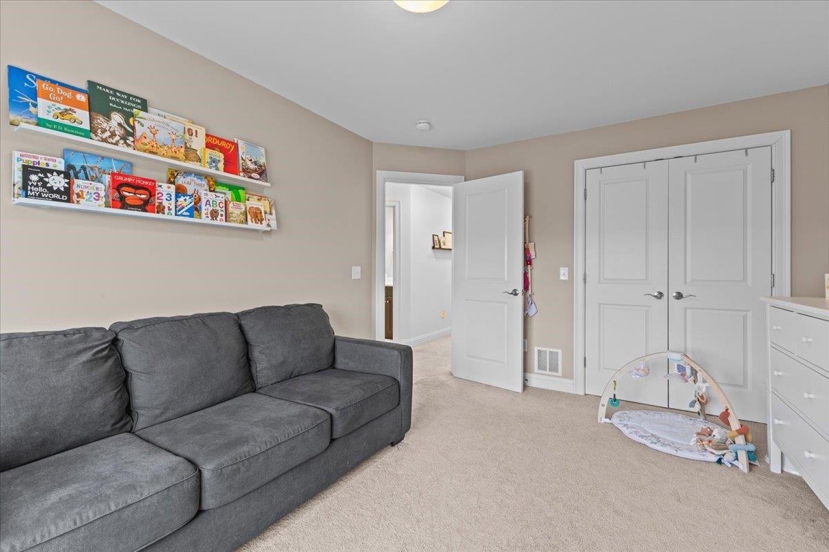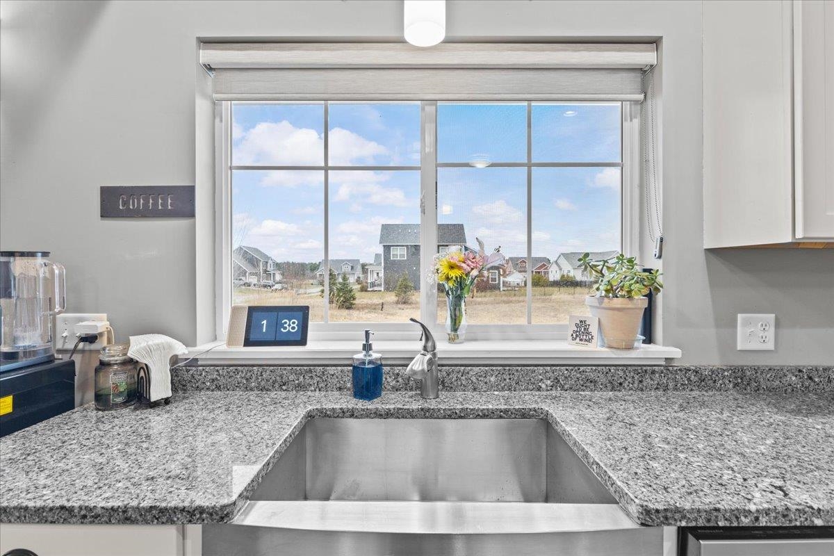 This inviting and well maintained end-unit home offers comfort, privacy, and thoughtful upgrades throughout. The main level features a bright, open concept layout with a spacious kitchen, hardwood floors, living, and dining area, perfect for everyday living and entertaining. The kitchen is beautifully appointed with upgraded cabinetry, granite countertops, a vented hood, pot drawers, a spice cabinet, and breakfast island. All 3 bedrooms are tucked away on the second floor for added privacy. The finished basement expands your living space with a cozy living room, workout area, laundry room, and abundant storage, complete with durable waterproof luxury vinyl plank flooring. Enjoy peaceful views from the kitchen overlooking the neighborhood walking path and playground. Located in the desirable Rye Meadow community, this end unit home sits in a quiet setting of single-family homes and townhomes, offering exceptional privacy. Outdoor enthusiasts will love easy access to hiking and biking paths. Close to Burlington, schools, shopping and restaurants this location cannot be beat!