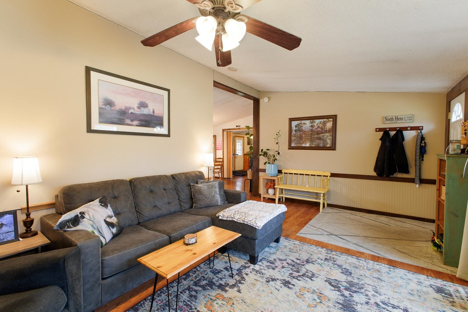 Located in the heart of the Lake Champlain Islands, this North Hero property offers a unique opportunity to enjoy Island living near the water. Set on 0.98 acres on a private dead-end road, the property includes 188 feet of canal frontage with access to the lake, plus shared community lake access at the end of the street. The 3-bedroom, 2-bath double-wide home offers 1, 682 square feet of living space, including two flexible living areas (one with a pellet stove) and an eat-in kitchen. The primary bedroom includes a private bath, with two additional bedrooms and a second full bathroom on the opposite end of the home. A screened porch overlooks the backyard and canal, providing a quiet place to relax. Additional features include a one-car garage and a storage shed. With canal frontage, lake access, and a desirable Island location, this property offers strong potential for those looking to invest in the Lake Champlain lifestyle. Schedule your showing today.