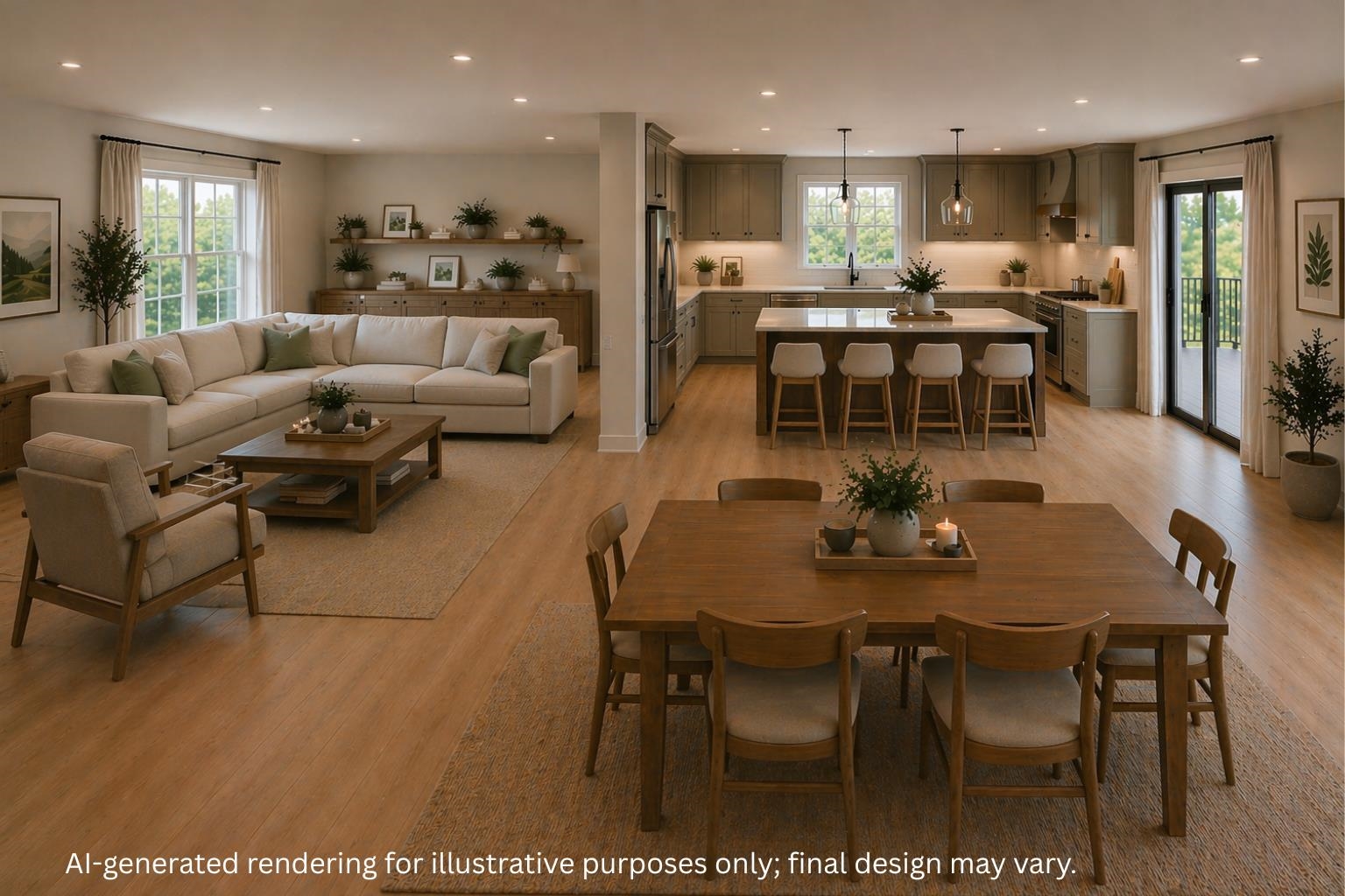 - Dining Area, Kitchen/Dining, Kitchen/Living, Living/Dining, Primary BR w/ BA, Walk-in Closet