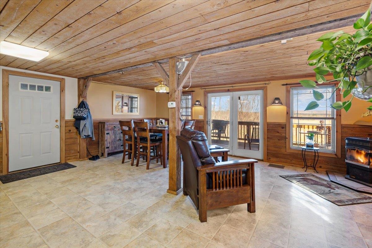 Set against a backdrop of open farmland and beautiful Vermont sunrises, this 3-bedroom, 2-bath farmhouse offers a blend of character, functionality, and flexibility. Enter through a classic mudroom with integrated laundry—an ideal everyday entry connecting the attached 2-car garage to the home. Inside, the first floor features a comfortable, open flow between the kitchen, dining, and main living areas, creating a natural space for gathering and day-to-day living. A separate front living room provides a quieter spot to unwind or could serve as a home office or den. The layout offers versatility, with the option to easily reverse the current dining and living room setup—allowing the main living space to be centered around the patio doors, scenic views, and pellet stove for a warm and inviting focal point. The kitchen includes a distinctive pantry crafted from the home’s original staircase, adding a thoughtful touch of history and charm. Just beyond, a large back deck overlooks peaceful fields, offering the perfect setting for outdoor dining or relaxing evenings. Upstairs, the primary bedroom is generously sized and filled with natural light, complete with a ¾ bath featuring a jetted tub and a walk-in closet with built-in shelving and additional under-eave storage. Two additional bedrooms offer ample space, with one providing a bonus area well-suited for a playroom, office, or flex space. Custom built-ins throughout the home enhance both storage and character. This property maintains the feel of a traditional Vermont farmhouse while supporting the needs of modern living. Located just minutes from the interstate and nearby shopping, this home offers the convenience of accessibility without sacrificing its peaceful country setting.